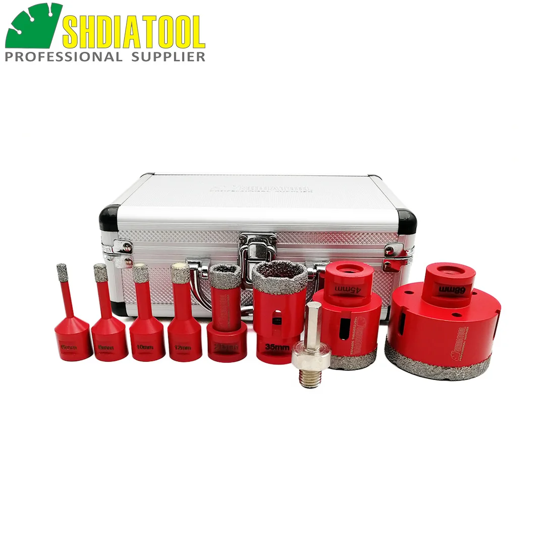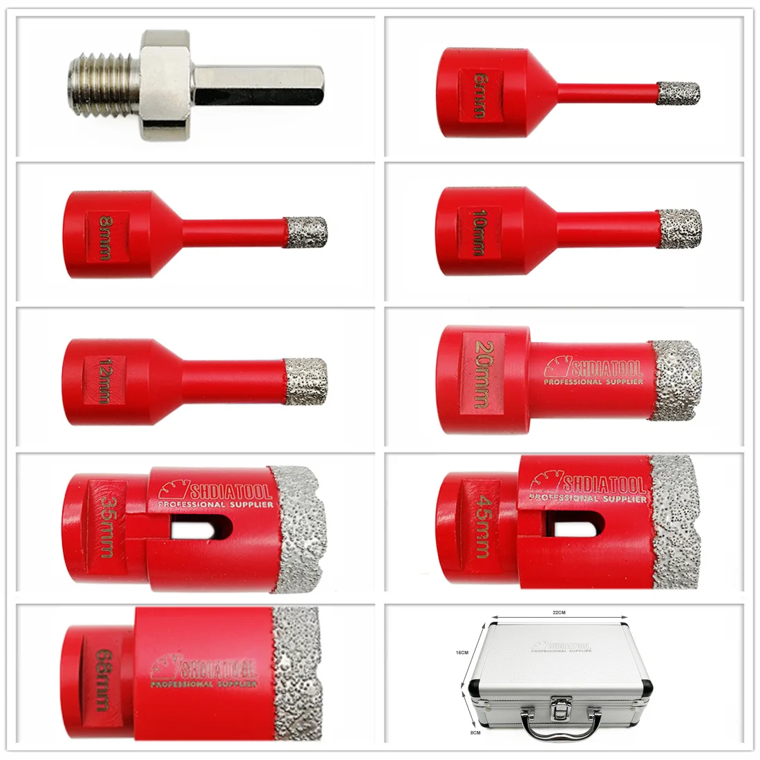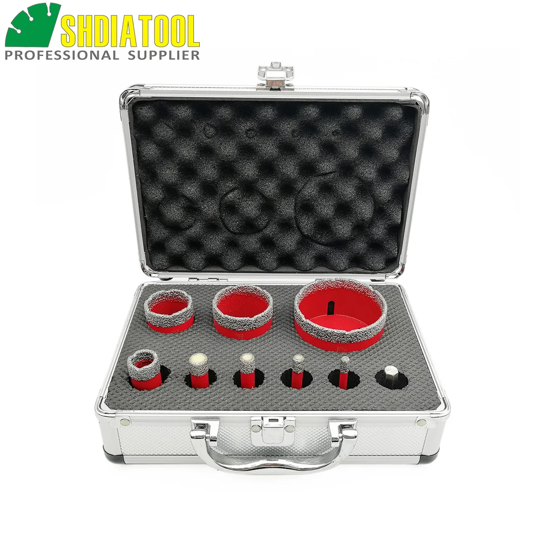 Коронка керамическая SHDIATOOL, вакуумная насадка с алмазным напылением для сверления отверстий, из гранита, мрамора, с коробкой, с шестигранным адаптером, 1 комплект9 шт.