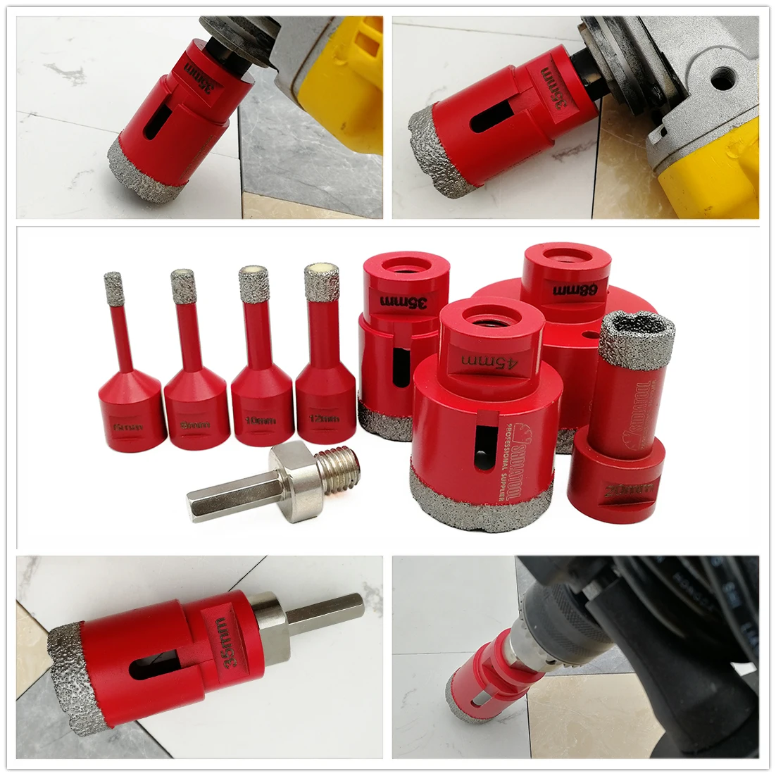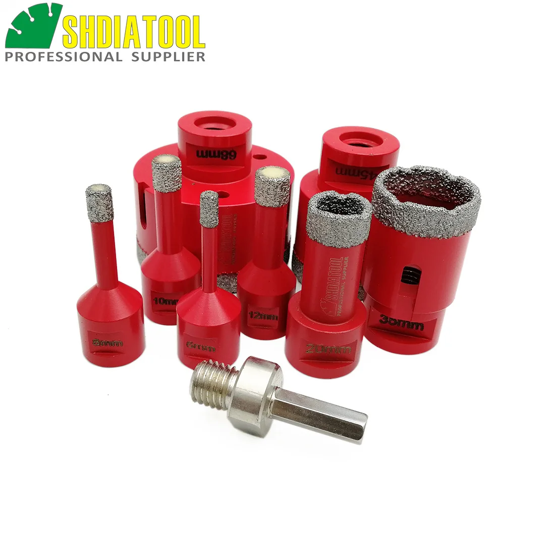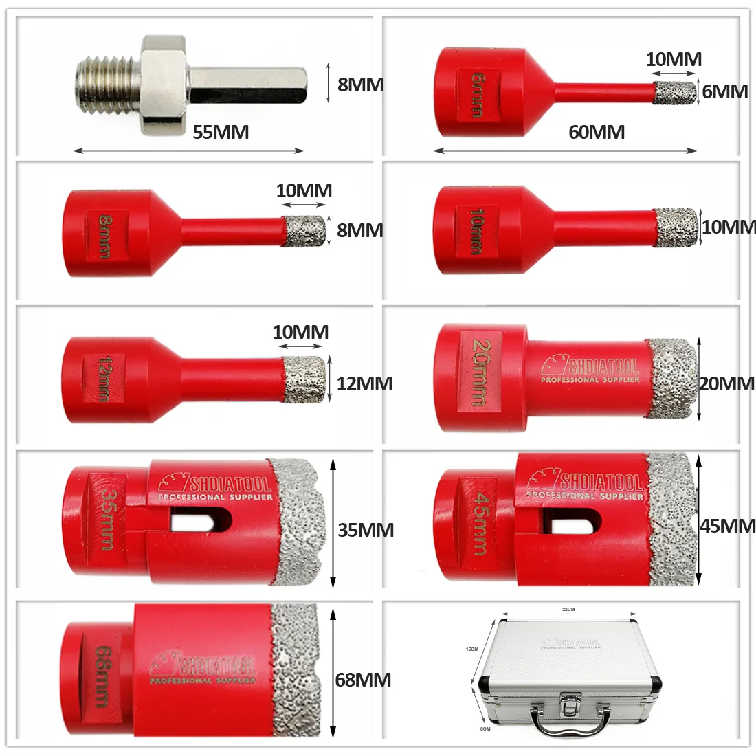 Коронка керамическая SHDIATOOL, вакуумная насадка с алмазным напылением для сверления отверстий, из гранита, мрамора, с коробкой, с шестигранным адаптером, 1 комплект9 шт.