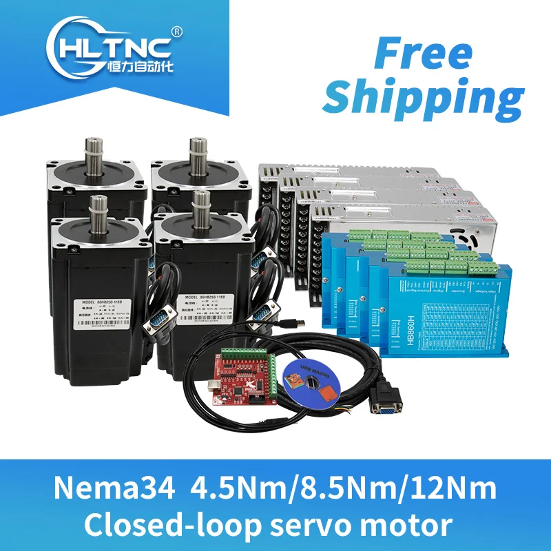 Шаговый электродвигатель Nema34 с замкнутым контуром, 6 А, 4,5 Н, М5,5 нм12 нм, двухфазный гибридный драйвер HBS860H, питание 400 Вт, 60 в, для ЧПУ, 4 комплекта