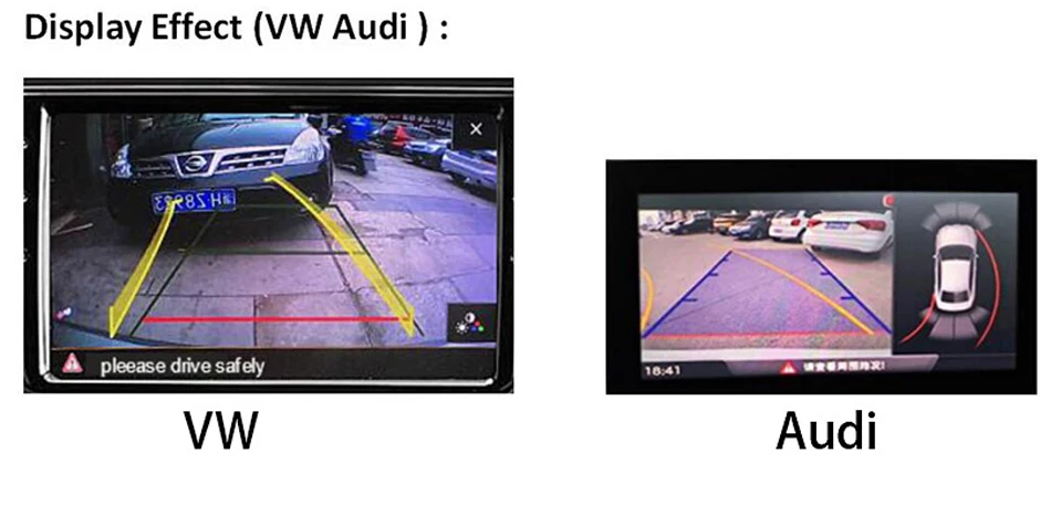 1. Датчик изображения: Sony CCD 4089V. Поддержка оригинальной траектории парковки.2. ТВ-система: опция NTSC / PAL3. ТВ-линия: 600 ТВ-линия4. Эффективные пиксели: 720*480 пикселей.5. Ночное видение: 5 м.6. Баланс белого: Авто7. Мощность: 12 В постоянного тока8. Длина видеокабеля: 6 м9. Подходит для стереомонитора Audi VW MQB PQ MIB.