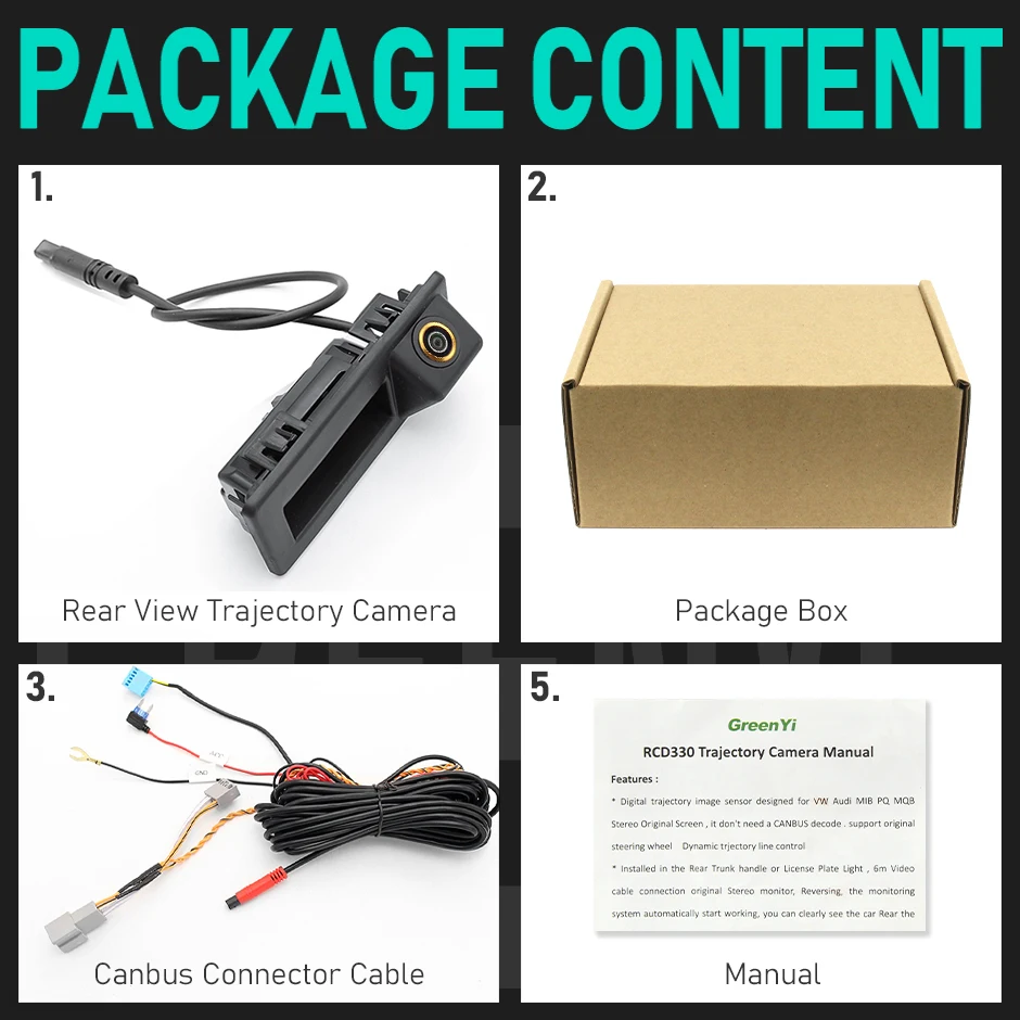 * Цифровой Датчик траектории изображения предназначен для VW Audi MIB PQ MQB стерео оригинальный экран, ему не нужен декодер CANBUS. Поддержка оригинального рулевого колеса динамического trjectory line control.* Установлен в задней рукоятке багажника или светильник номерного знака, 6 м видео кабель подключения оригинальный стерео монитор, Реверсивный, система мониторинга автоматически начинает работать, вы можете четко видеть заднюю ситуацию автомобиля.* Автоматически распознавать данные CANBUS от Volkswagen и Audi. Отображение оригинальной траектории.* Подходит для VW MIB PQ MQB Audi A2 A3 A4 A6 Q2 Q3 Q5 (209-2021) стерео оригинальный экран.