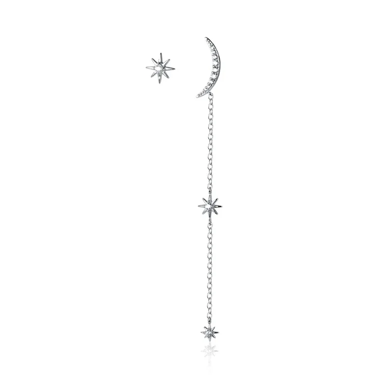 TrustDavis 100% Серебро 925 пробы Асимметричная Луна Звезда сверкаю...