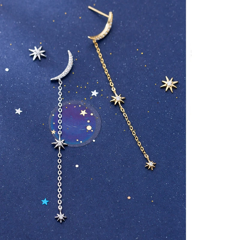 Серьги-кисточки в виде звезд в виде Луны женские, асимметричные юве...