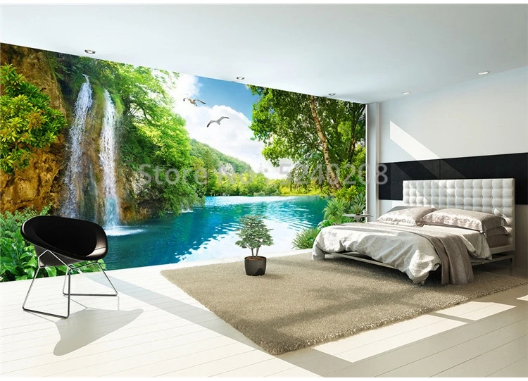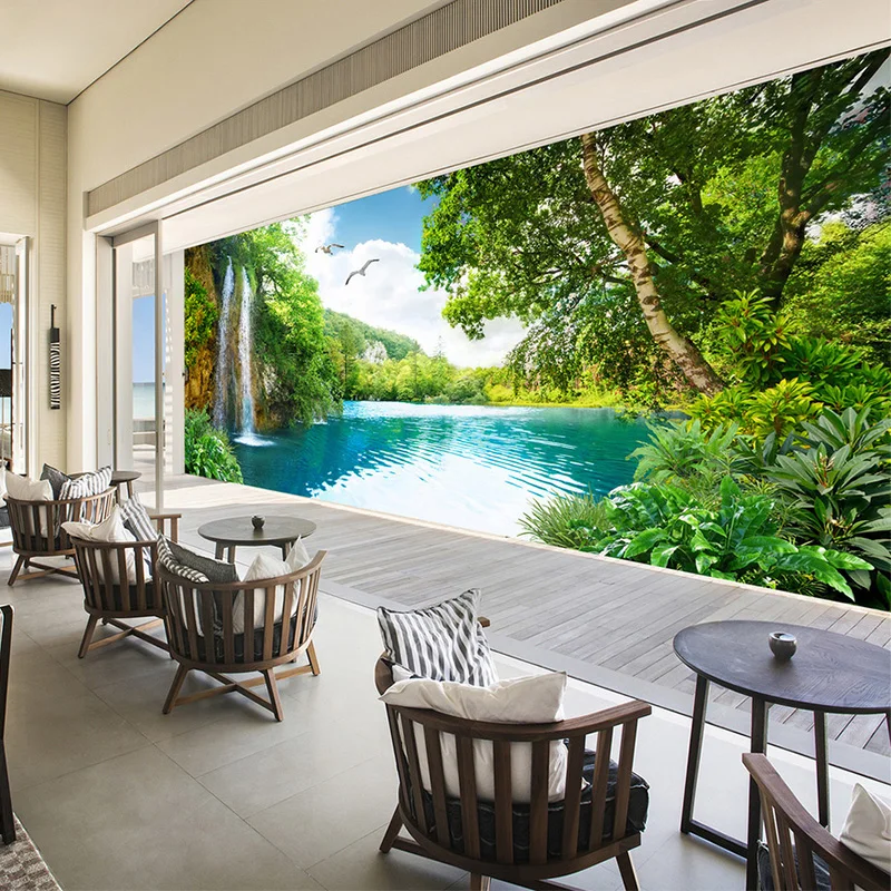 Самоклеящиеся обои на заказ, настенные водонепроницаемые 3D-обои с изображением гор и рек, пейзажа, гостиной, ванной комнаты