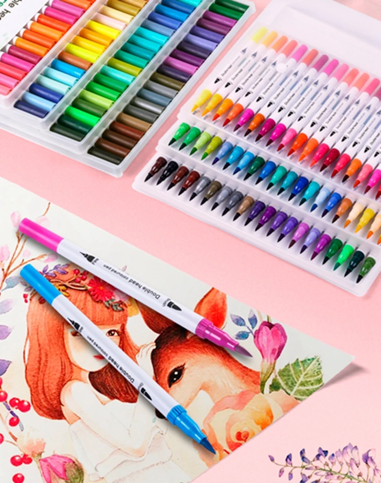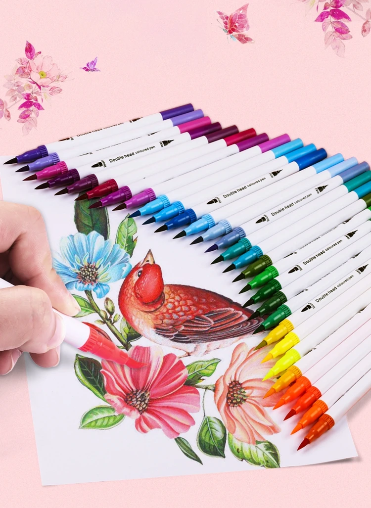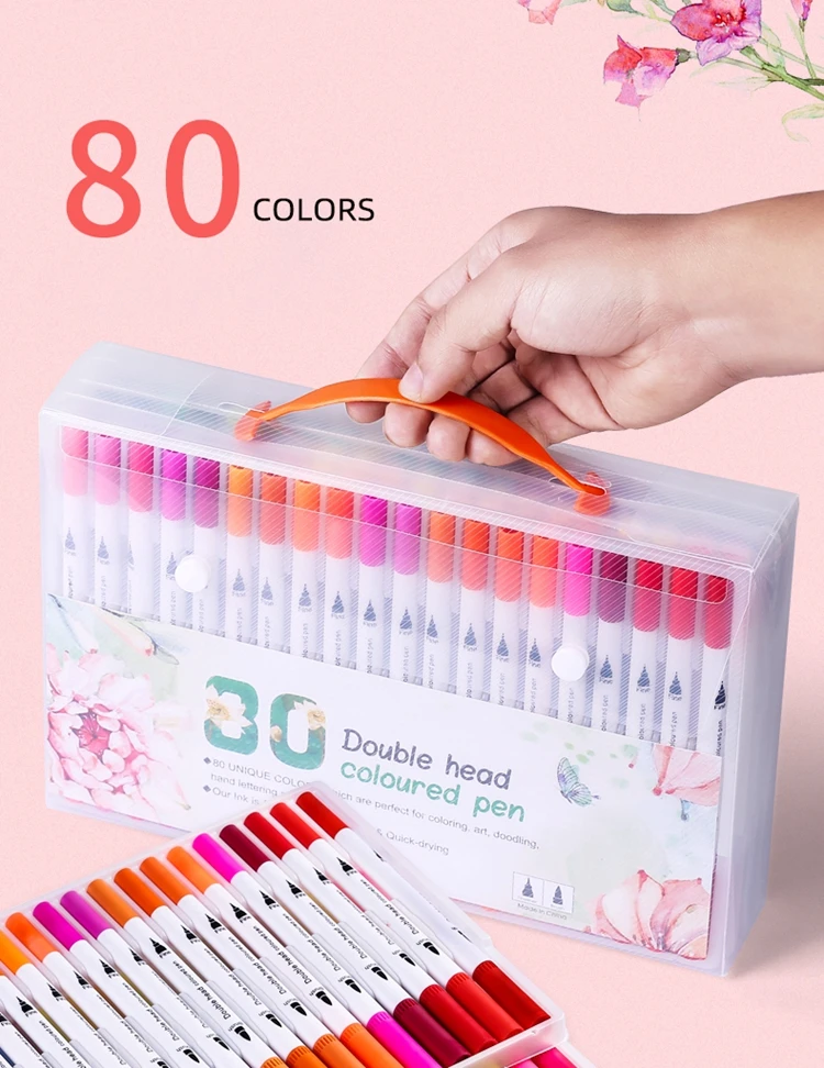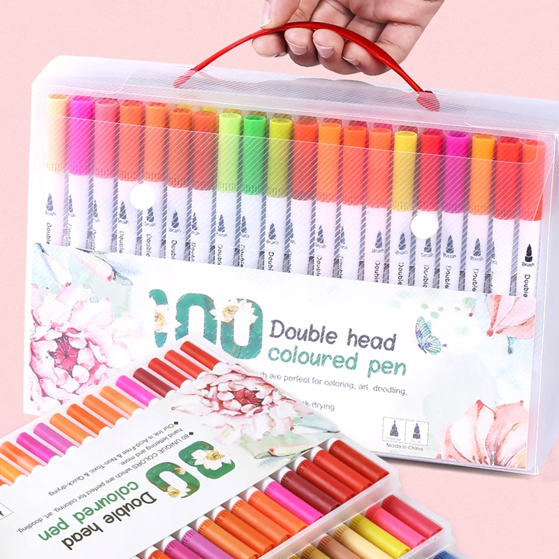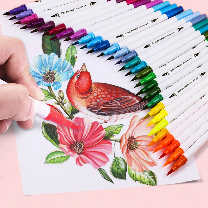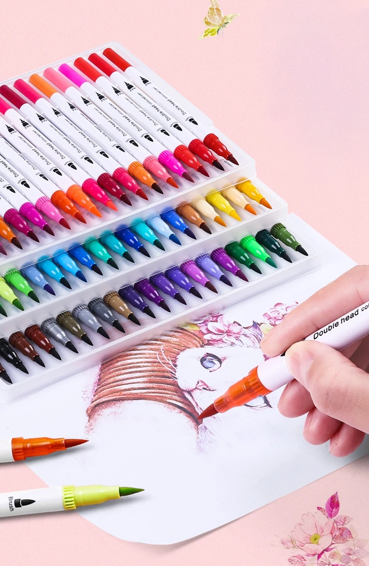 2436486080100 шт. Цвета тонколинейная ручка для рисования картина написанная акварелью художественный Маркер ручки двойной наконечник кисть школьные товары для рукоделия
