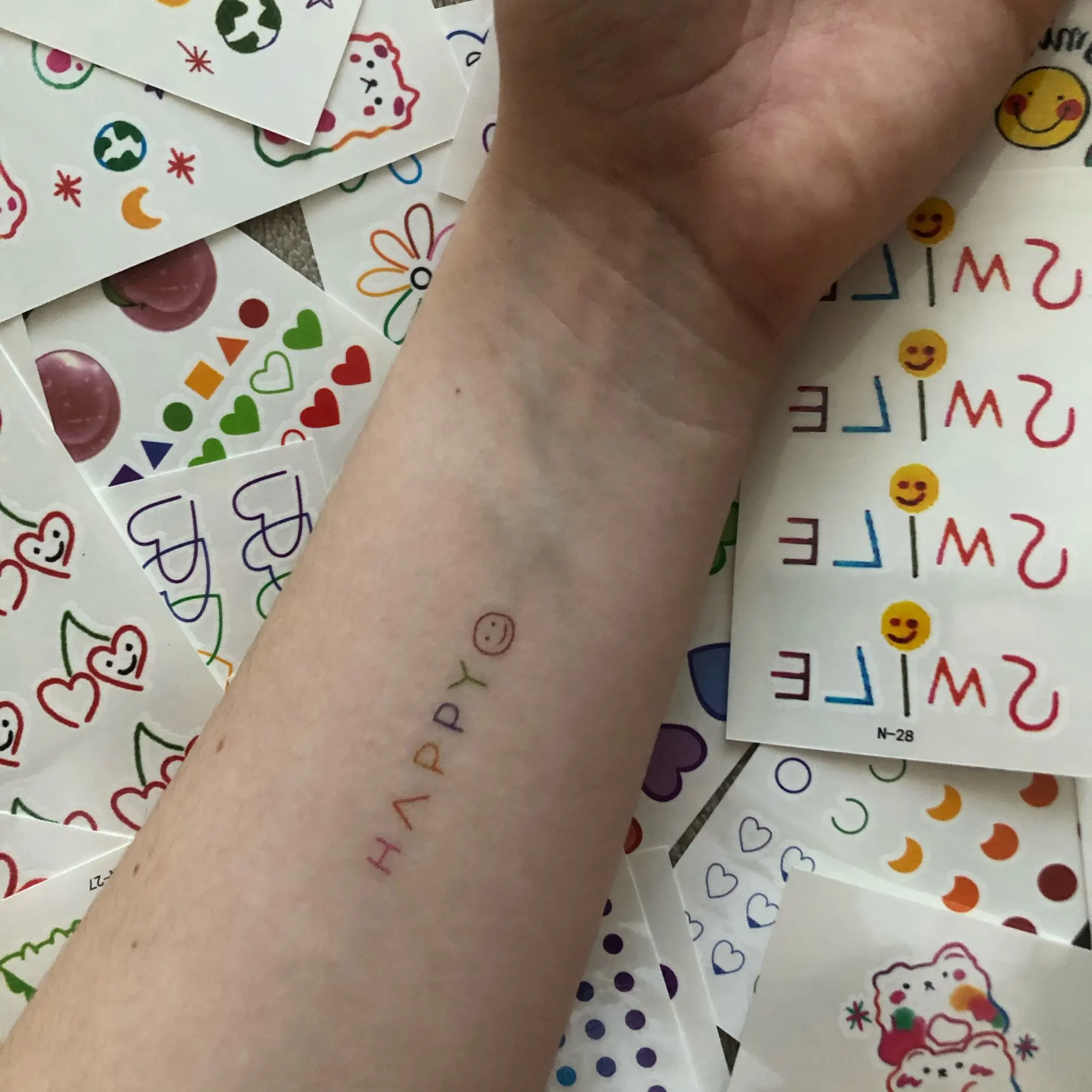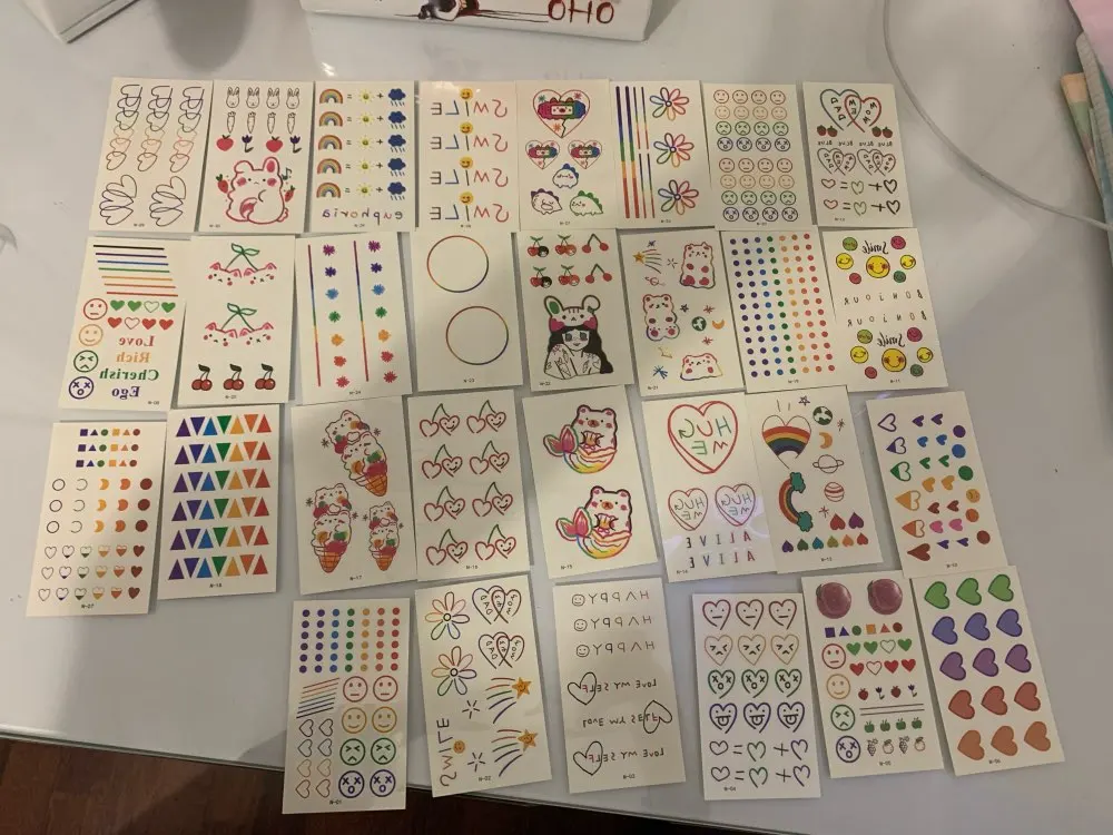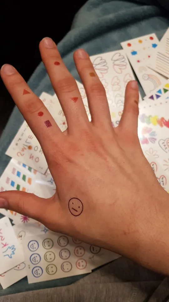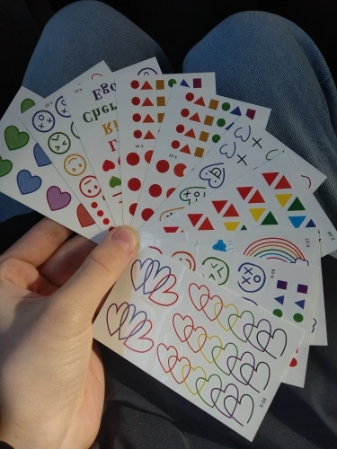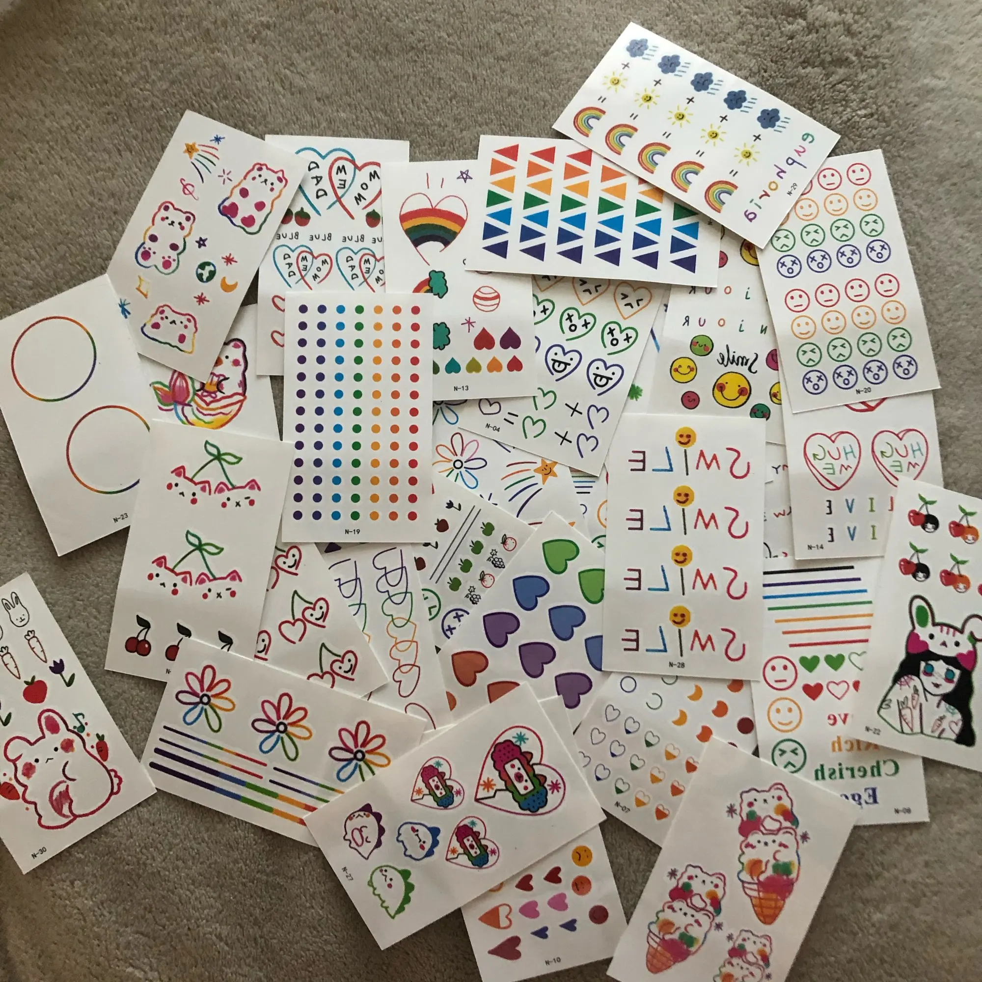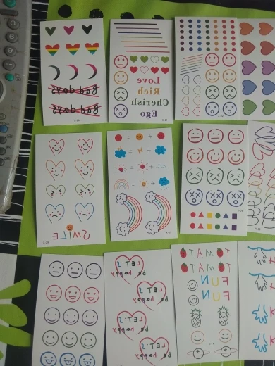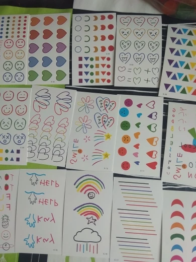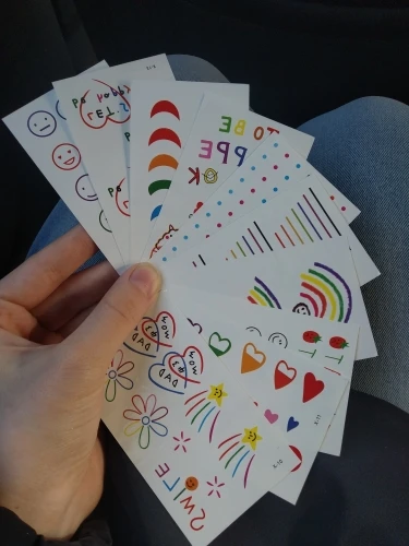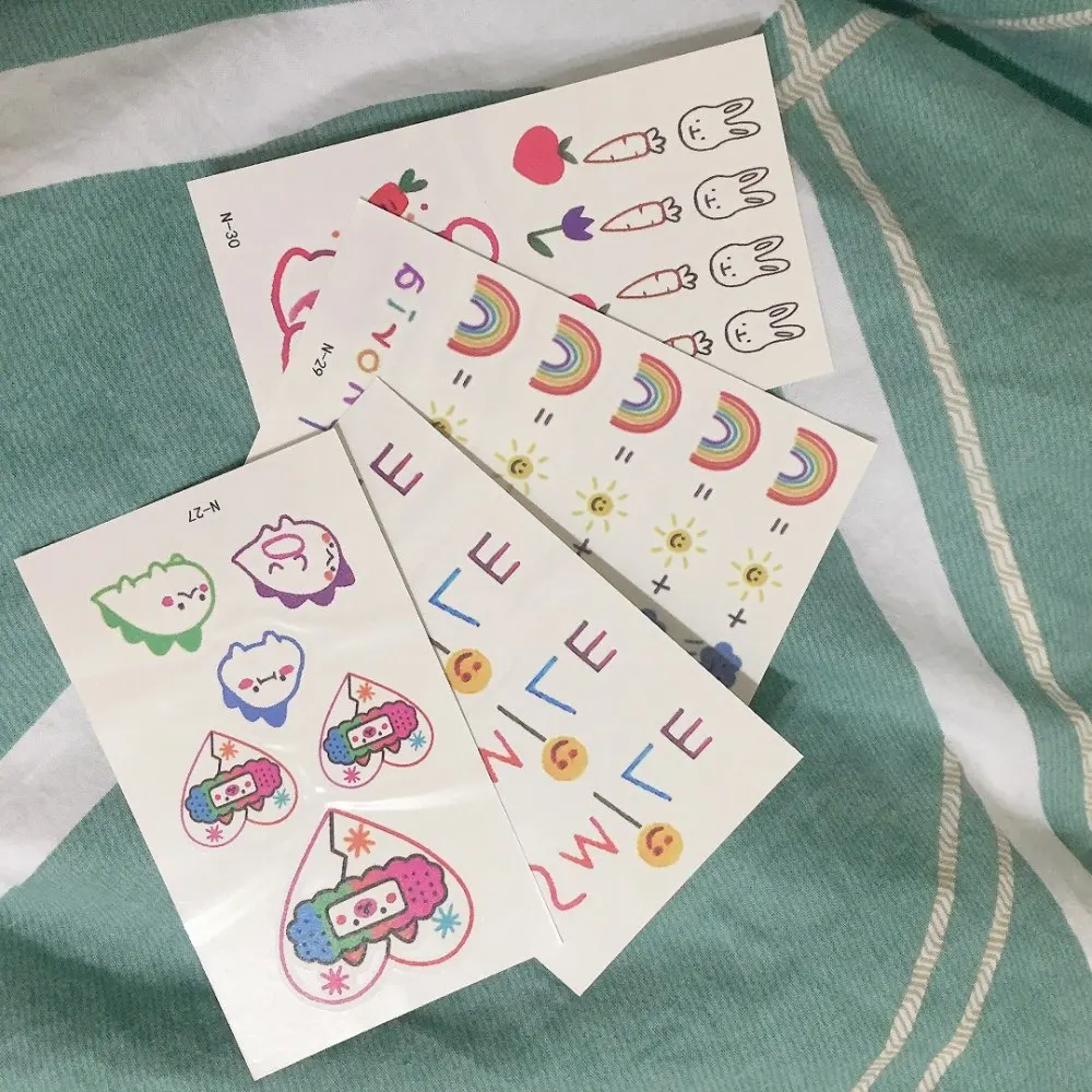 Всё отлично~ Очень милые наклейки, качественные наклейки. Их довольно много. Продолжительность носки зависит от места нанесения. На шее продержалось 3,5 дня, на руке +-2. Ради интереса почему бы и нет;