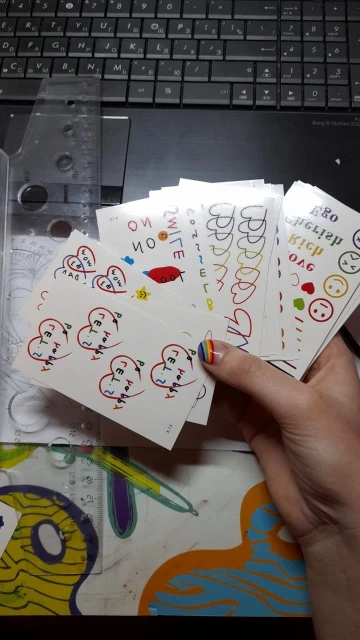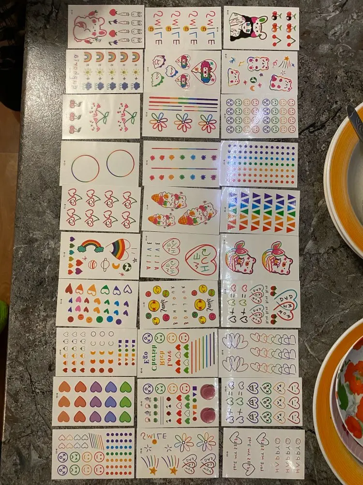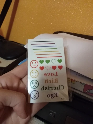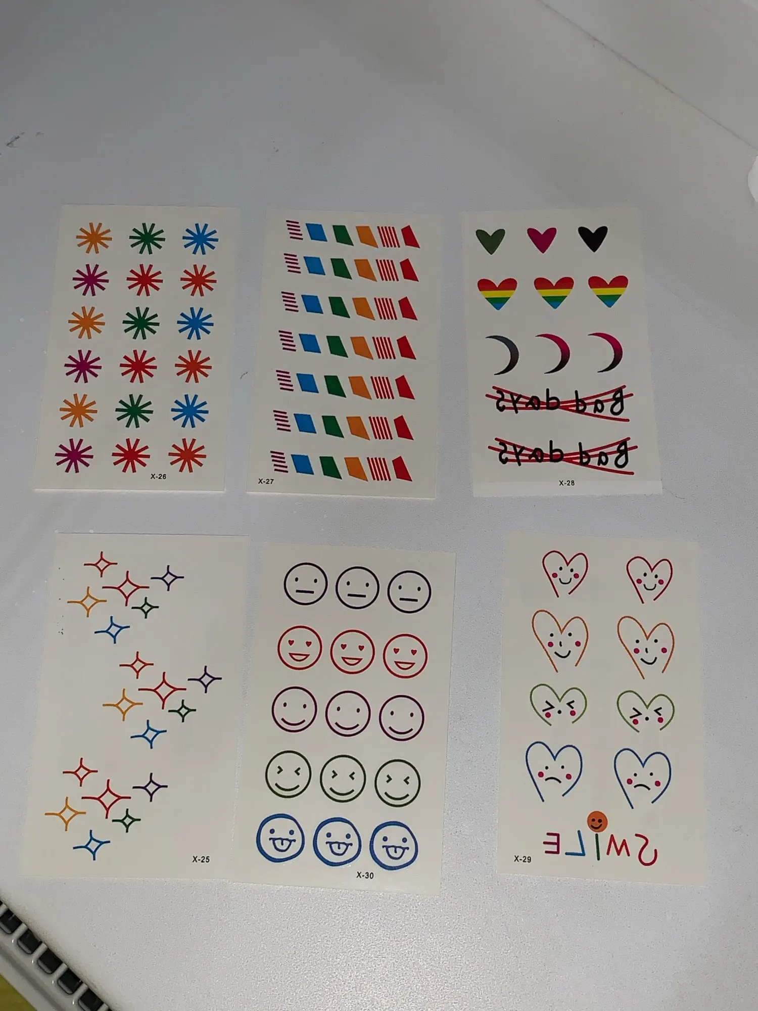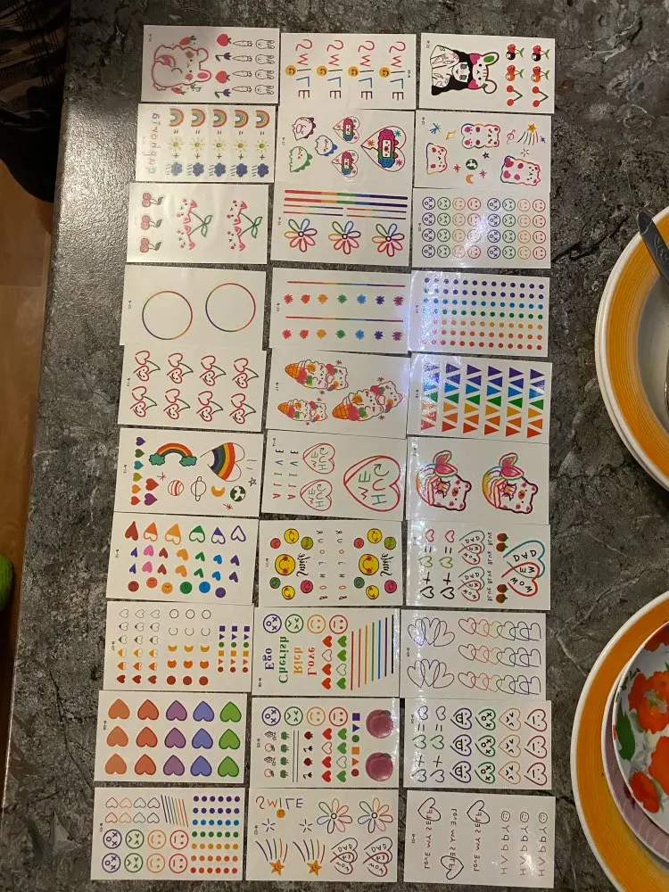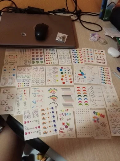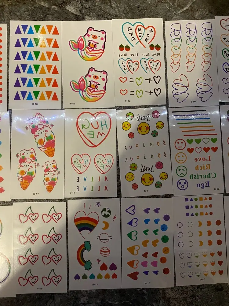 Всё отлично~ Очень милые наклейки, качественные наклейки. Их довольно много. Продолжительность носки зависит от места нанесения. На шее продержалось 3,5 дня, на руке +-2. Ради интереса почему бы и нет;