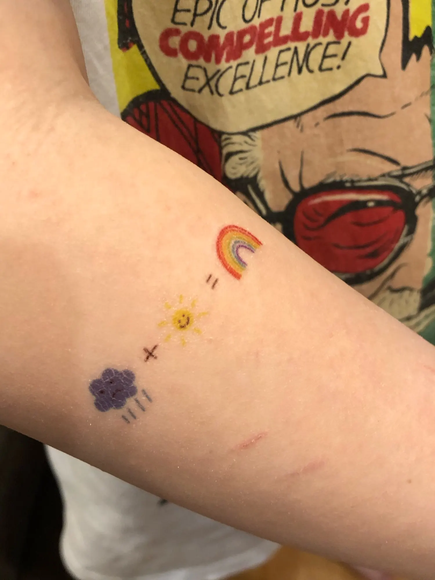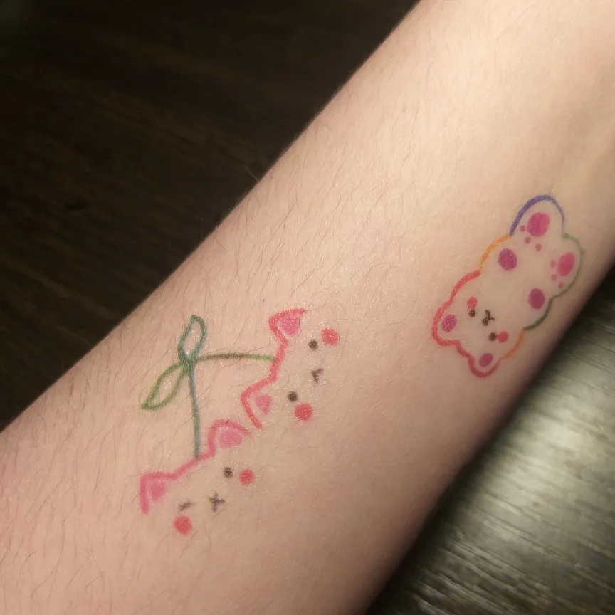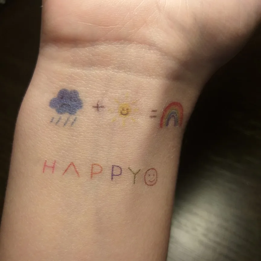 Милая вещь! Легко переводится на кожу и не долго держится. Можно не беспокоиться, что сотрется. Много маленьких цветных рисунков, каждый найдёт что-то на свой вкус. Вне всяких сомнений, это одни из лучших переводных тату, что у меня были!