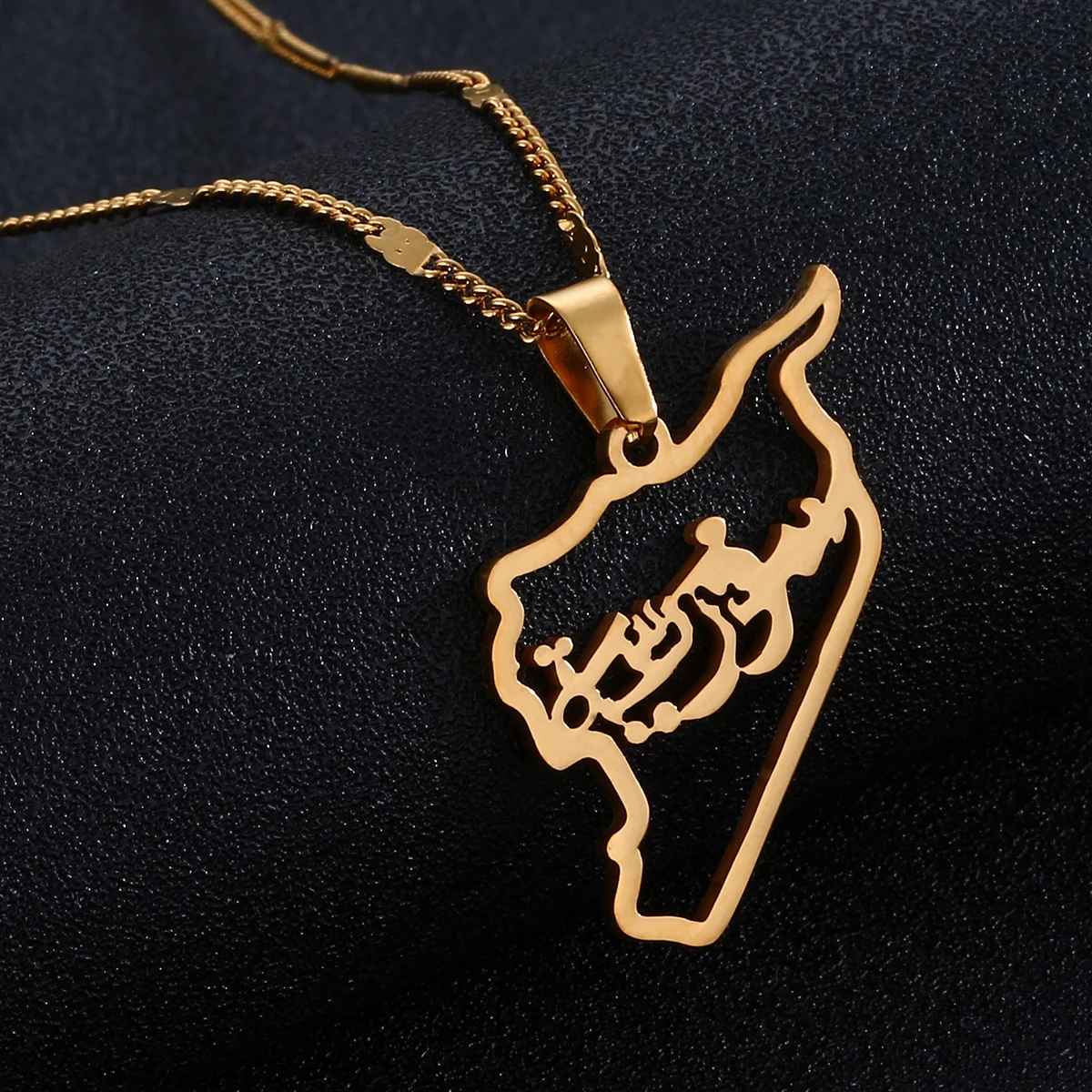Ожерелье с подвеской в виде карты Сирии из нержавеющей стали