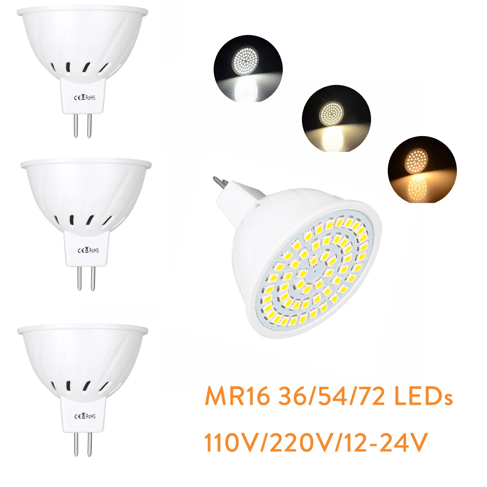 Светодиодные лампы MR16 12 в-24 в, 220 В, SMD 2835, светодиодные прожекторы s 4 Вт, 6 Вт, 8 Вт, 36, 54, 72, светодиодные, теплый, холодный, теплый белый, MR 16 Base, светодиодные лампы для дома