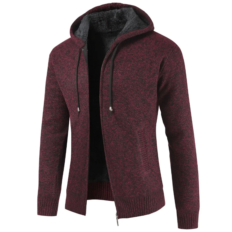 Мужской теплый кардиган с капюшоном, полосатый кашемировый шерстяной подкладкой и молнией