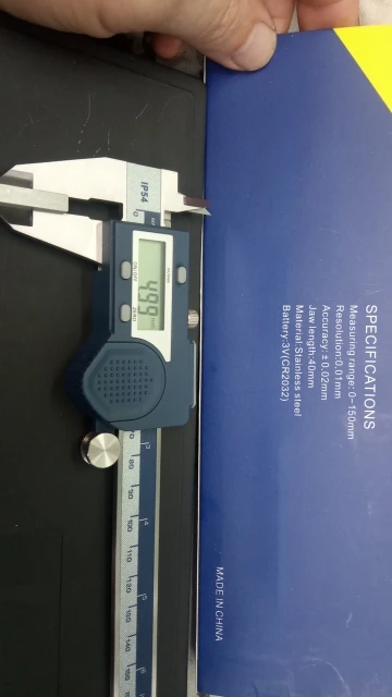 Цифровой штангенциркуль выглядит хорошо. Качество хорошее и работает так, как ожидалось. Я не могу сказать, насколько точно, так как у меня нет никаких объектов с очень точными и известными размерами, которые я мог бы проверить. Я просто сравнил его с некоторыми линейками, и это выглядит нормально. Я Показывает 0, когда находится в полностью закрытом положении.