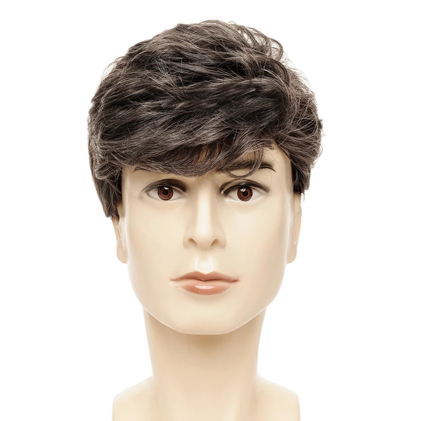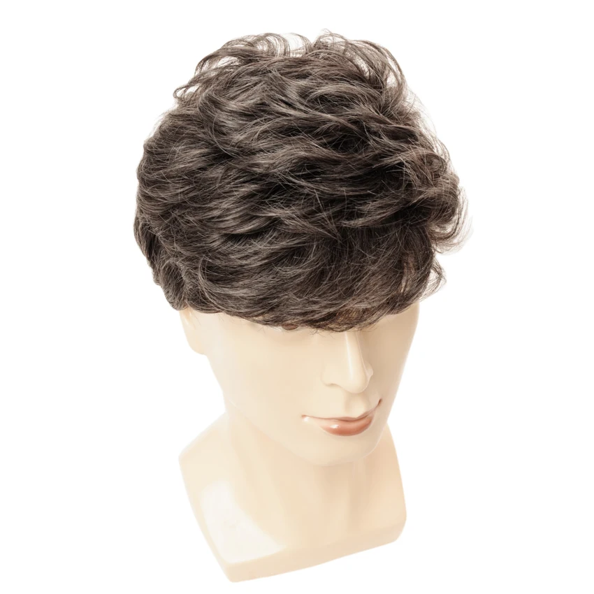 Короткие мужские парики для деловых мужчин, кудрявый парик смешанного цвета, боковая часть, мужские синтетические волосы, Термостойкое волокно