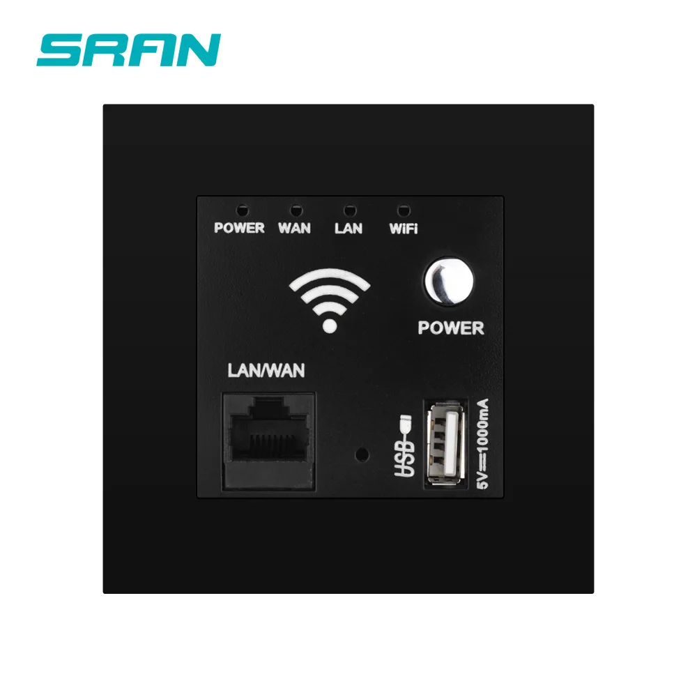 Настенная Wi-Fi-розетка SRAN с огнестойкой панелью ПК, 86 мм * 86 мм, 300 МБ, беспроводная релейная розетка