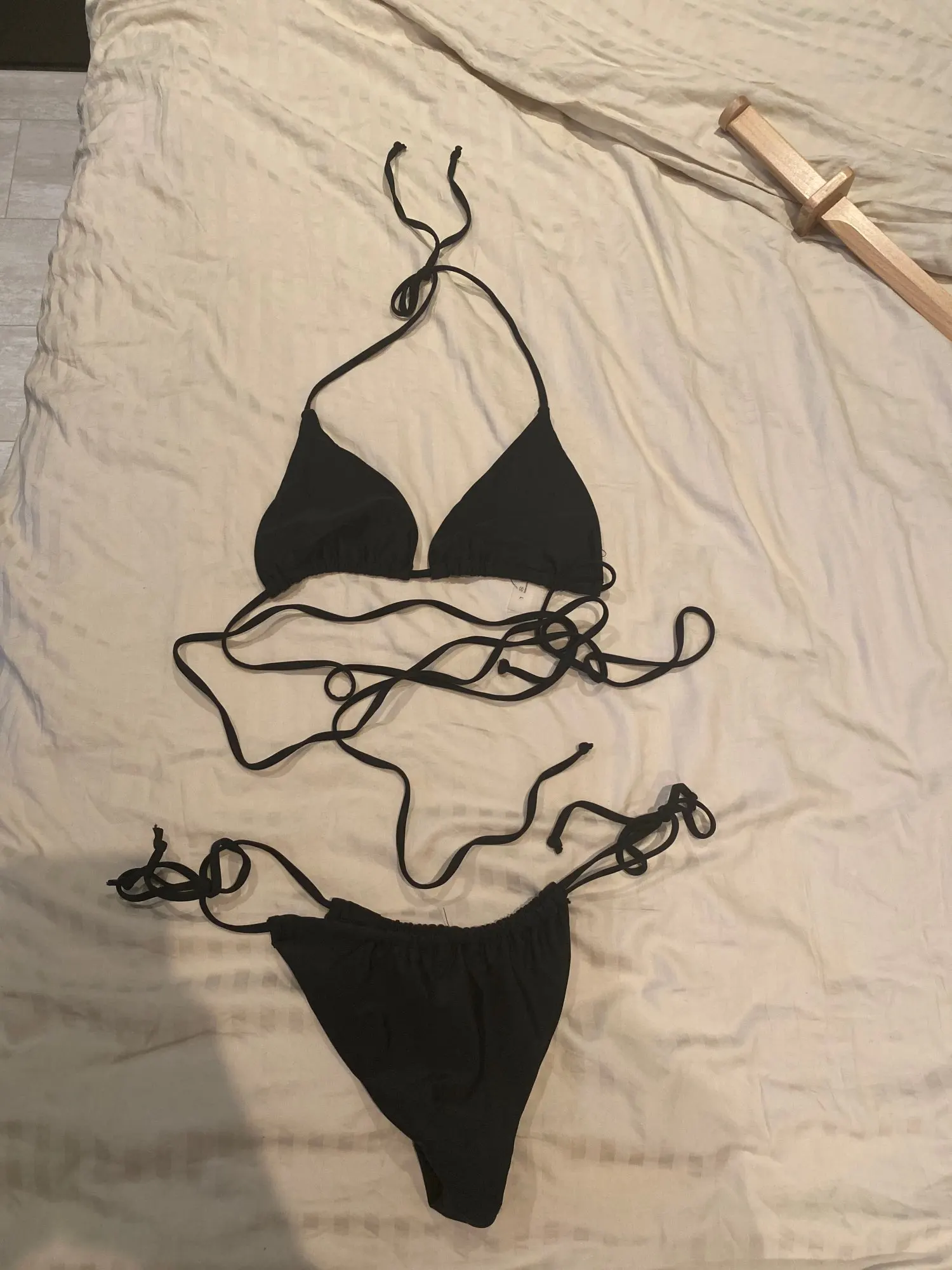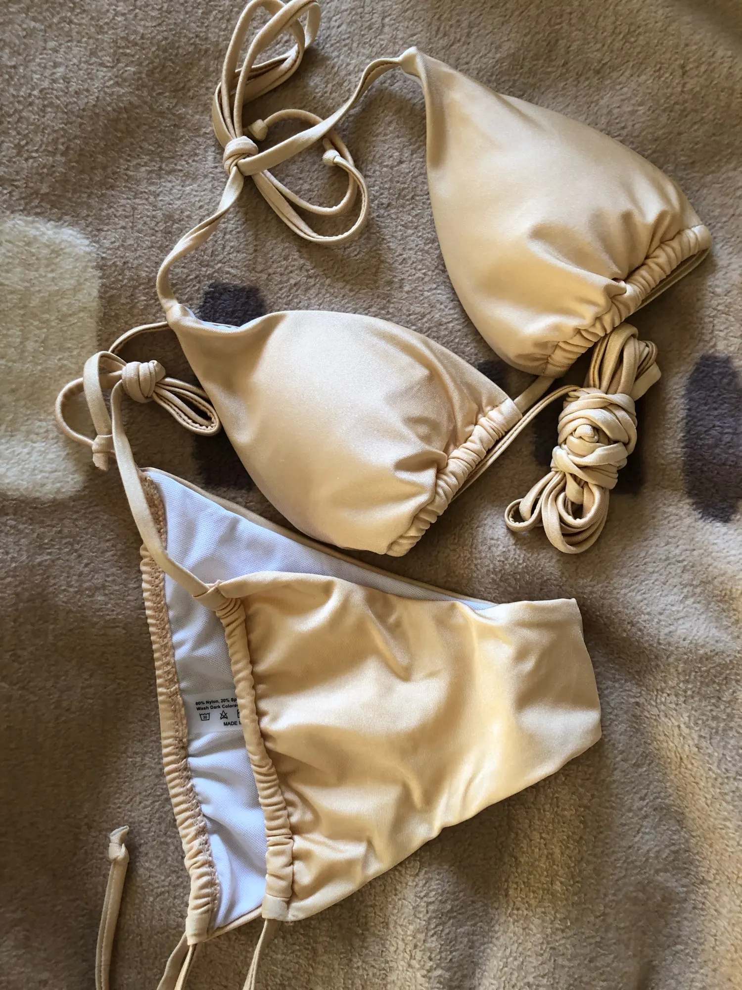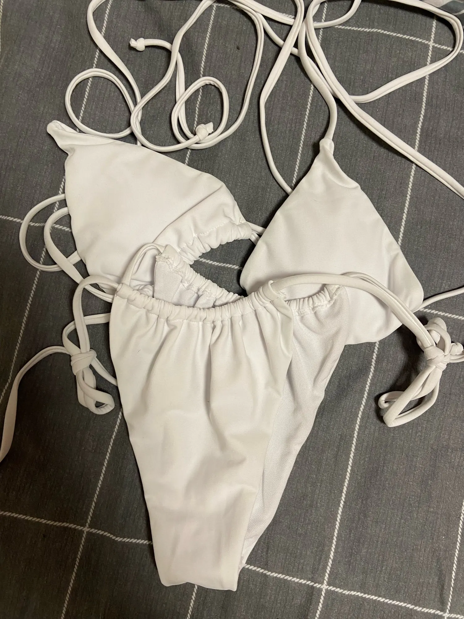 Верх маленький на грудь 105, низ на бёдра 105 ок, только выворачивается белая подкладка - не оч красиво. Итого, что-то да точно вывалится, доверия к к треугольничкам и веревочкам - ноль