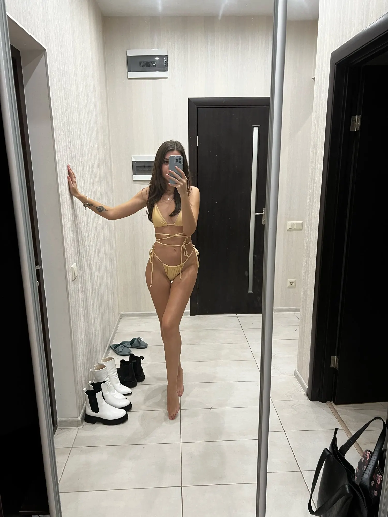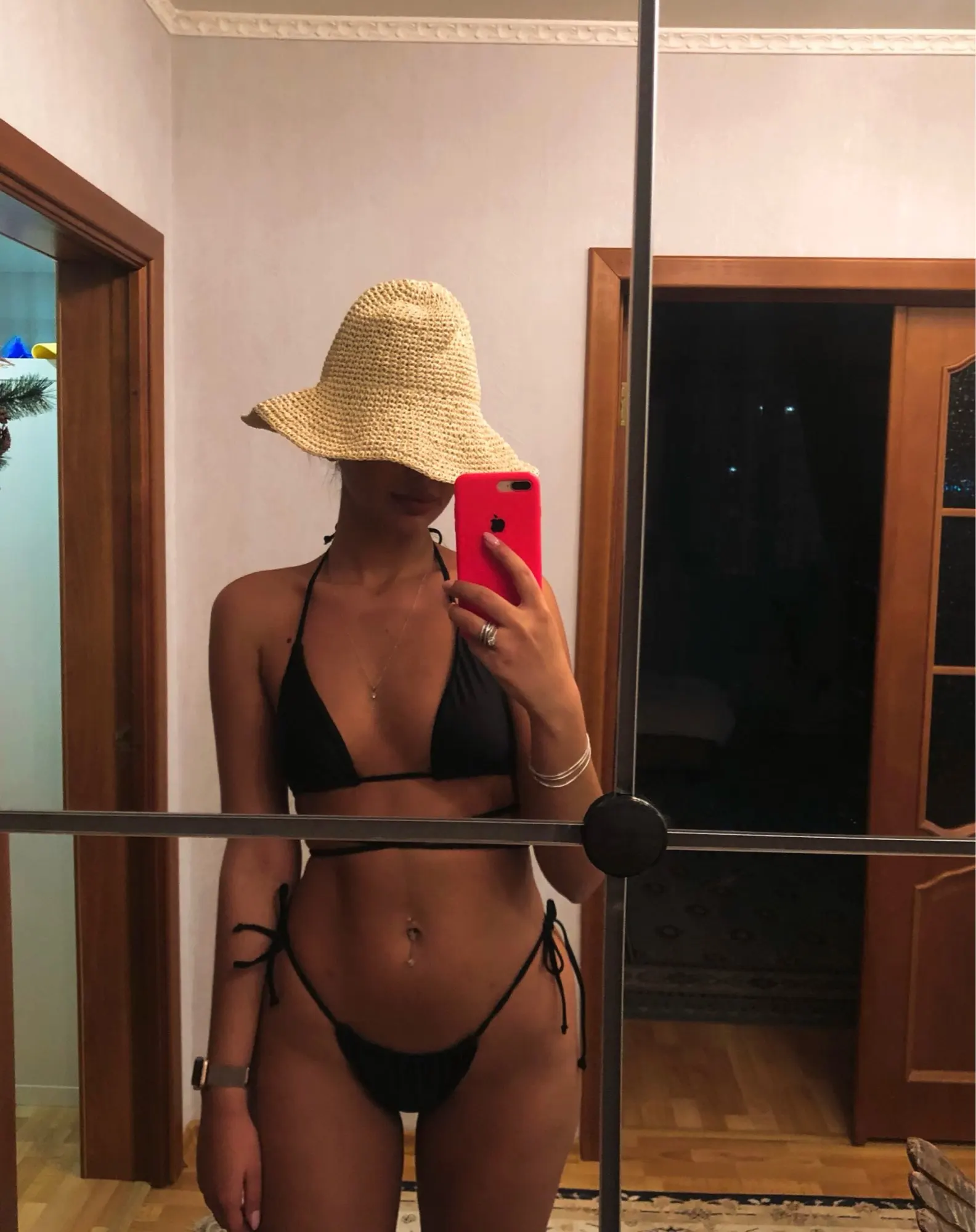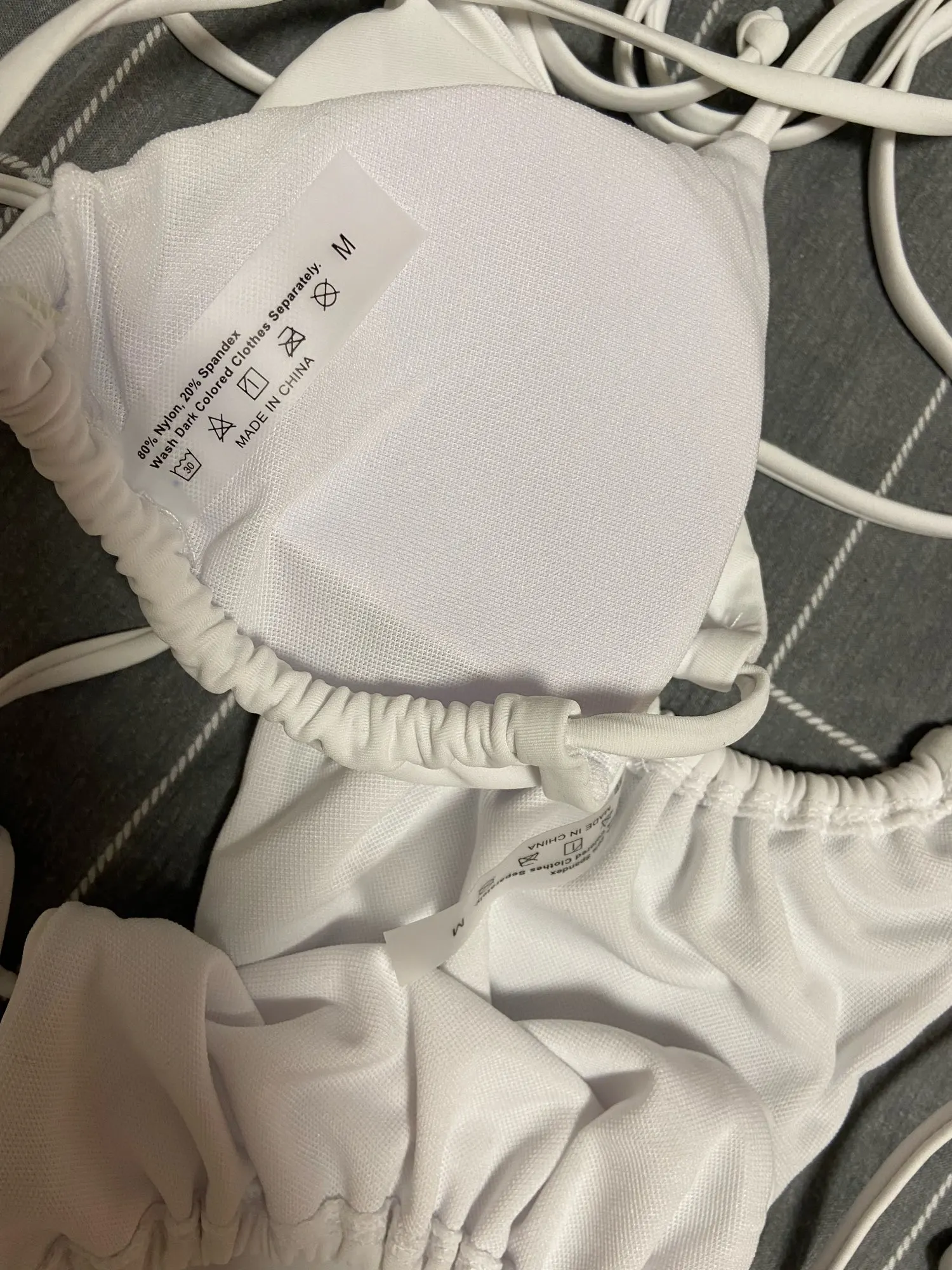 Верх маленький на грудь 105, низ на бёдра 105 ок, только выворачивается белая подкладка - не оч красиво. Итого, что-то да точно вывалится, доверия к к треугольничкам и веревочкам - ноль