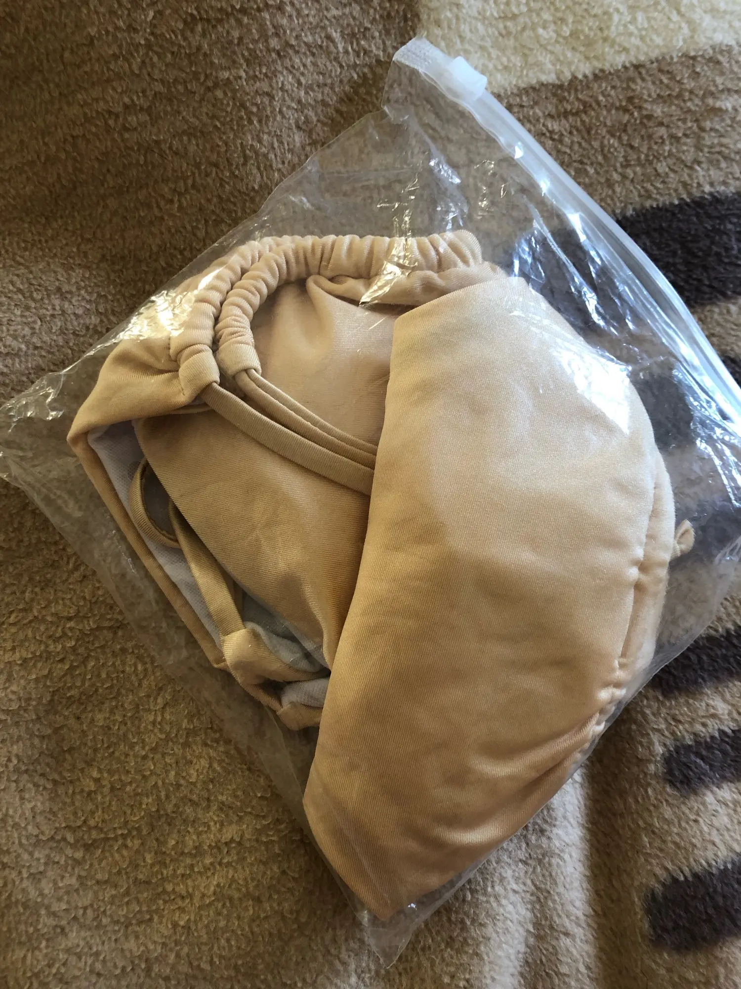 Качество ткани хорошее, золотистый красивый цвет. Но все портит вылезающий белый подклад. Его никак не спрятать. Чашки никакие, ёрзают туда-сюда. Неоднозначное впечатление… на море возьму как один из нескольких купальников.