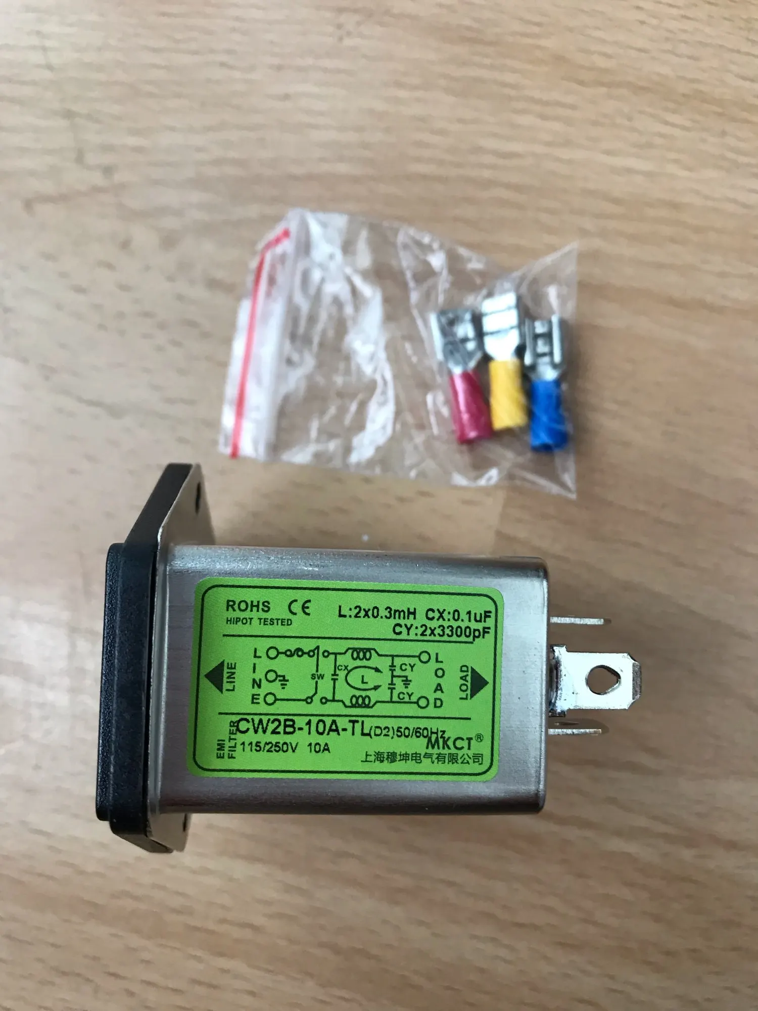 Фильтр питания переменного тока с подсветкой, 115 В, 230 В, фильтр электромагнитных помех CW2B-1A-TL(D2), 3 А, 6 А, 10 А