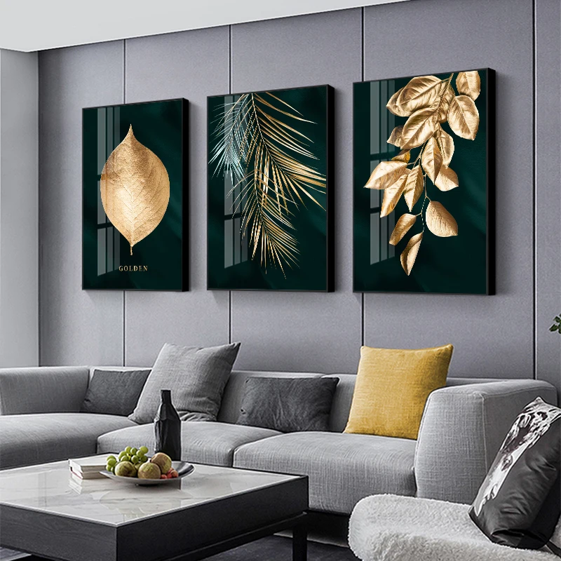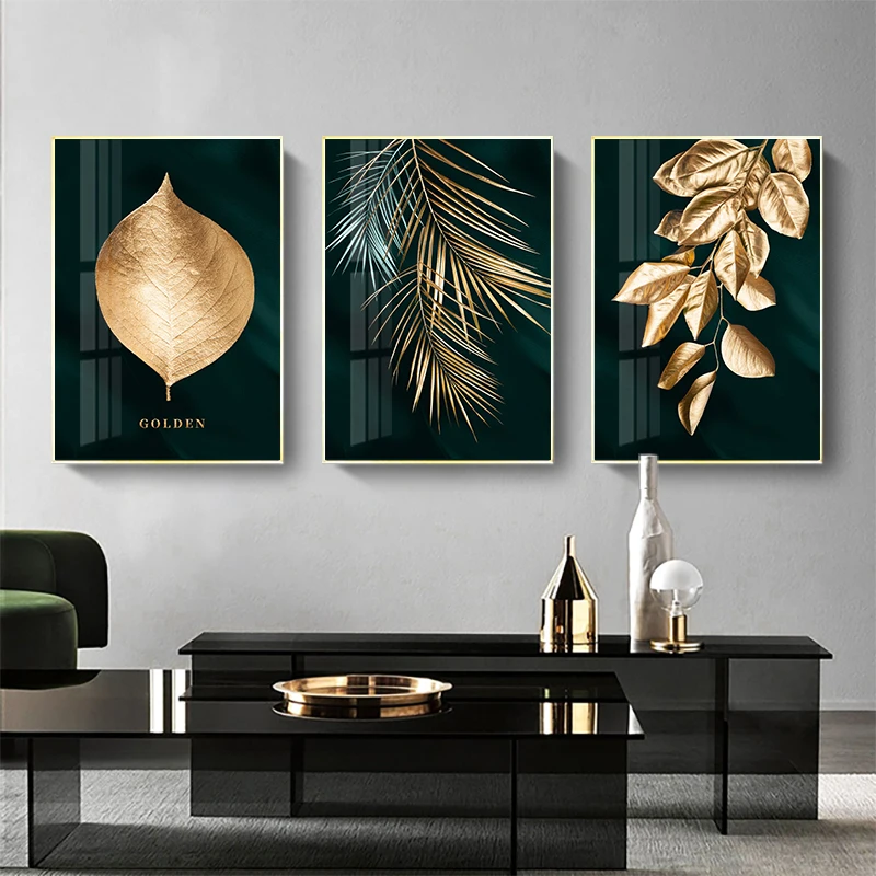 Скандинавский декор, холст с золотыми листьями, абстрактная живопись, настенный художественный плакат и печать, декоративные картины для гостиной, домашний декор