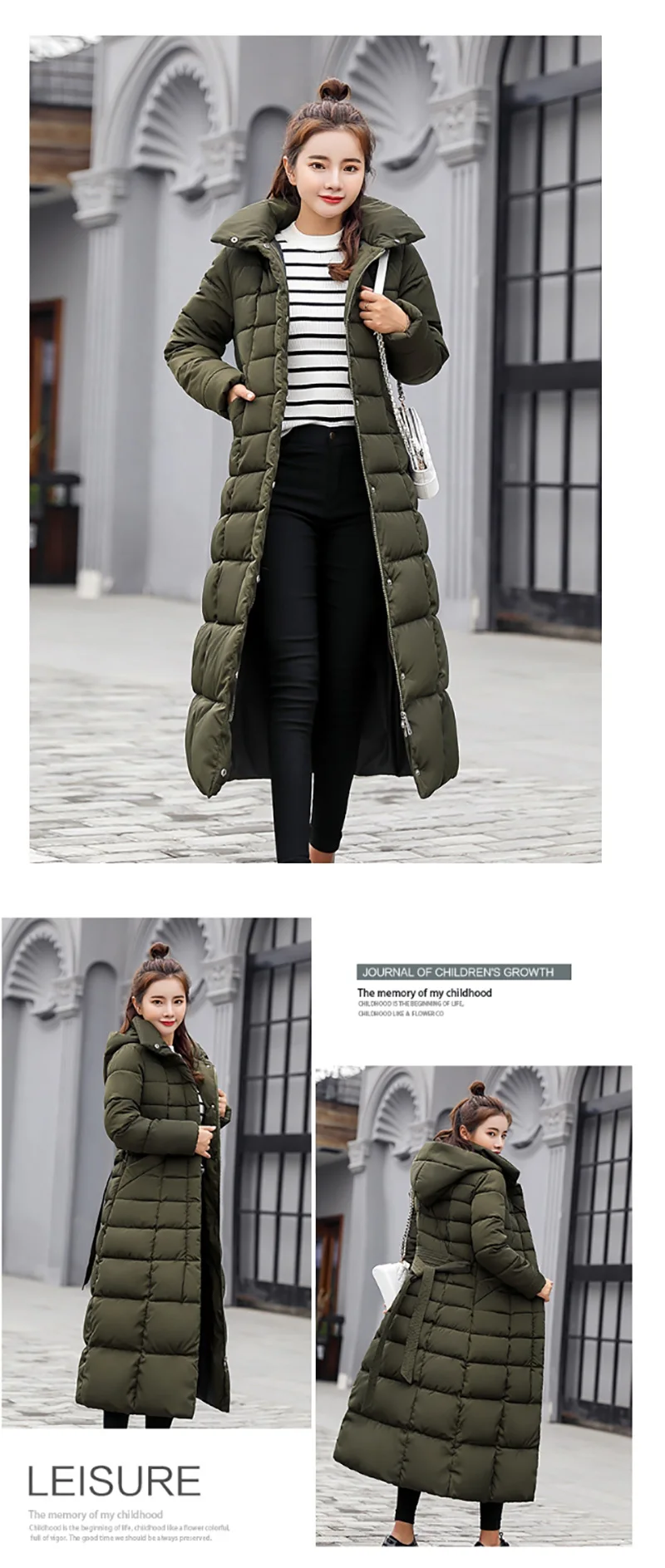 Женское пальто с хлопковой подкладкой, длинное, зимнее, утепленное