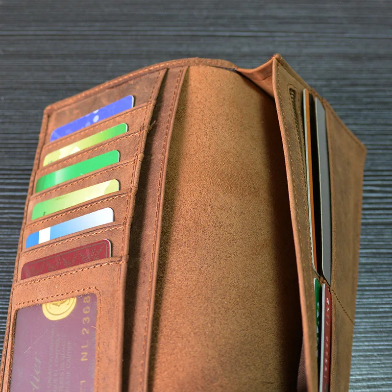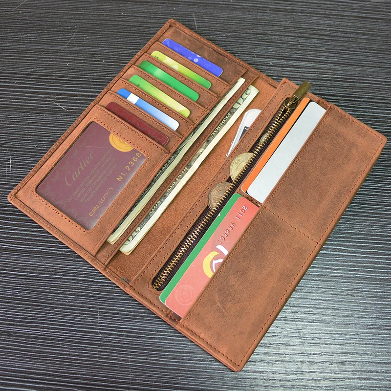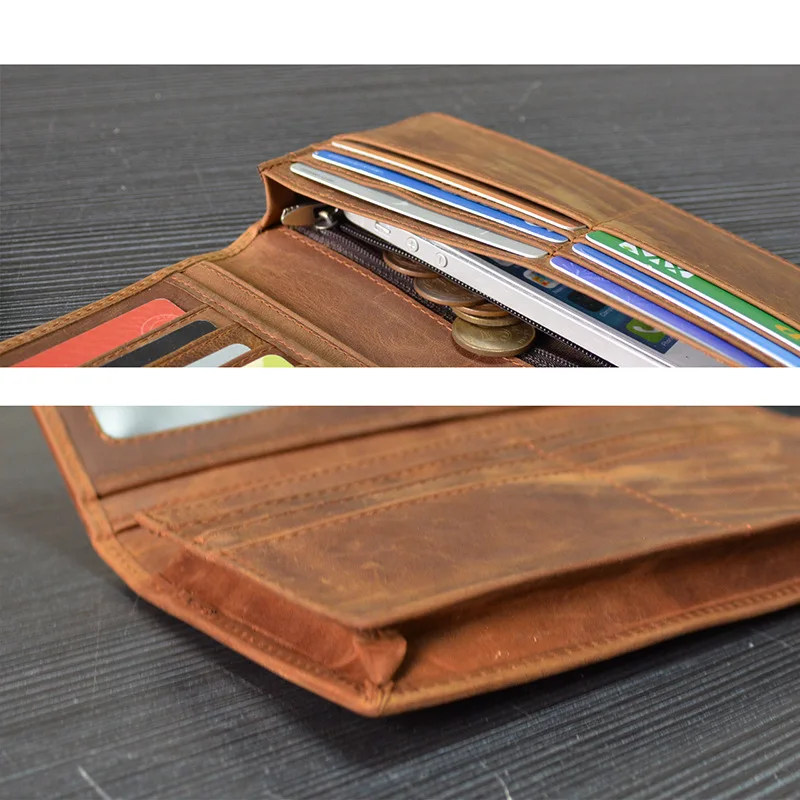 Удлиненный кошелек на молнии для мужчин и женщин, бумажник с отделением для Iphone 6 дюймов, винтажный дизайнерский кожаный держатель для мужчин и женщин