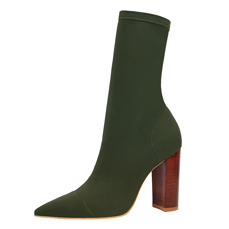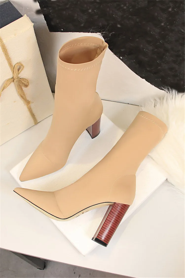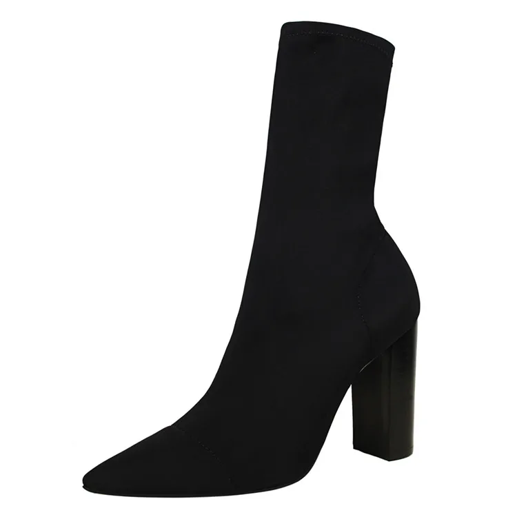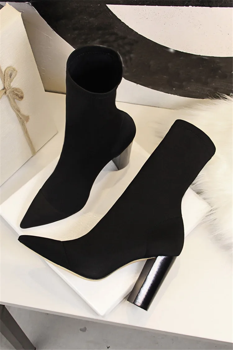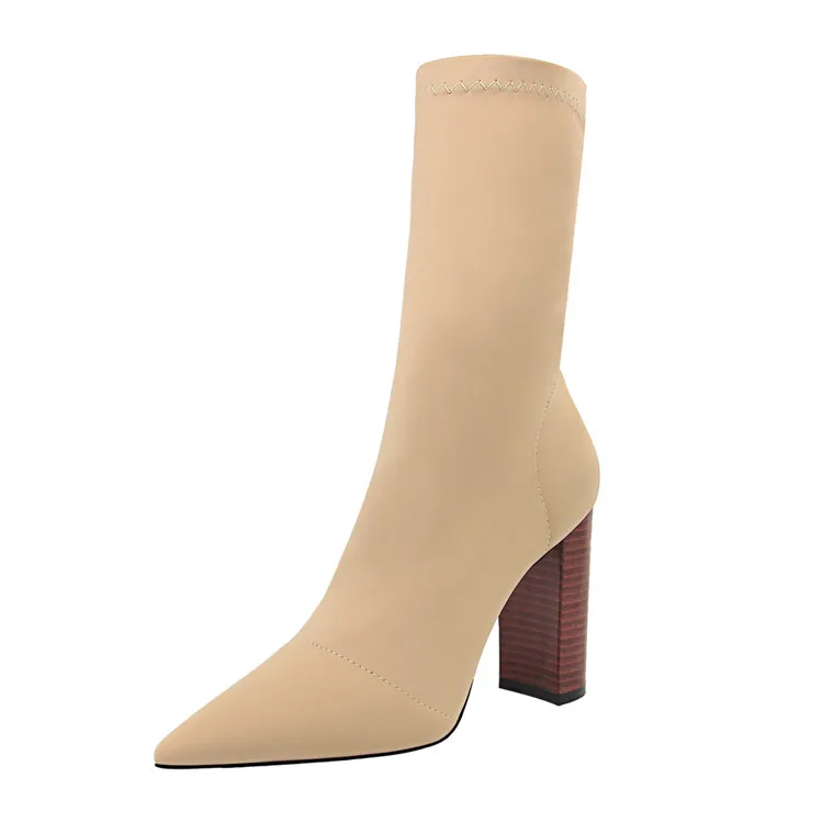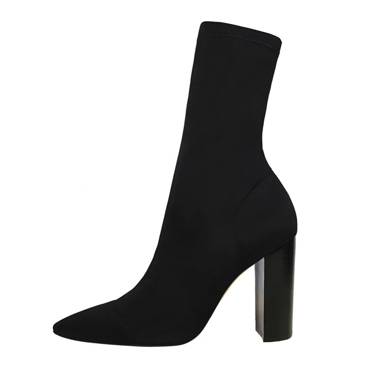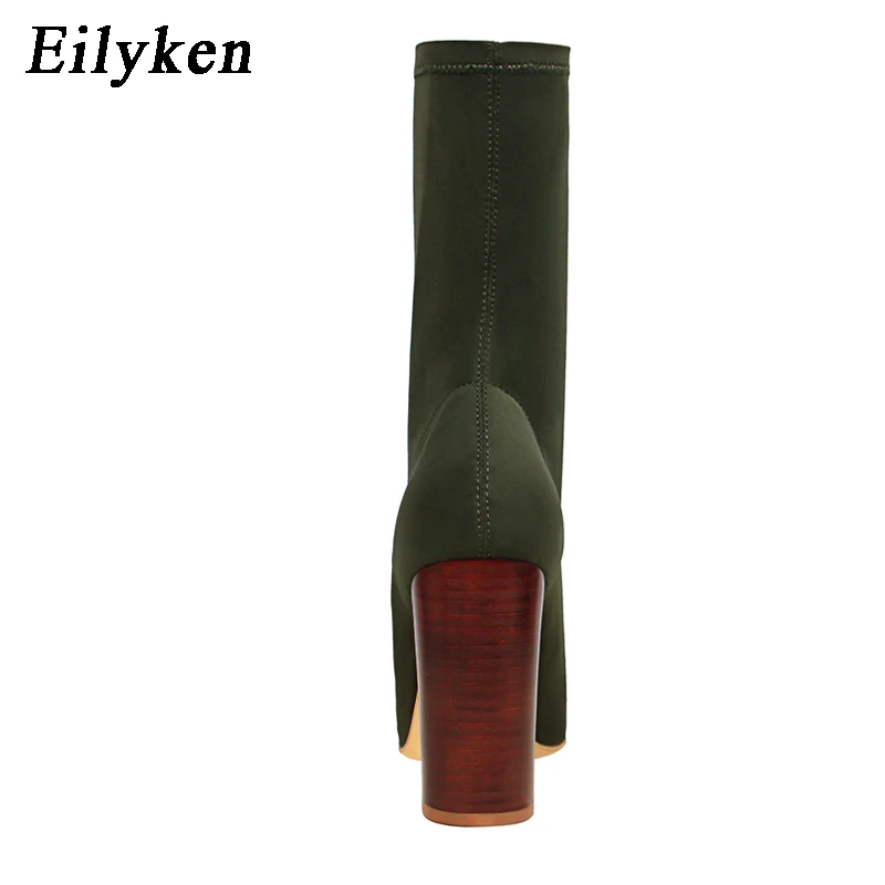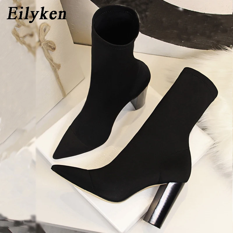 EilykenПовседневные Удобные Стрейчевые ботинки; Женские ботильоны на толстом высоком каблуке; Модные зимние женские ботинки с острым носком; Ботинки Челси