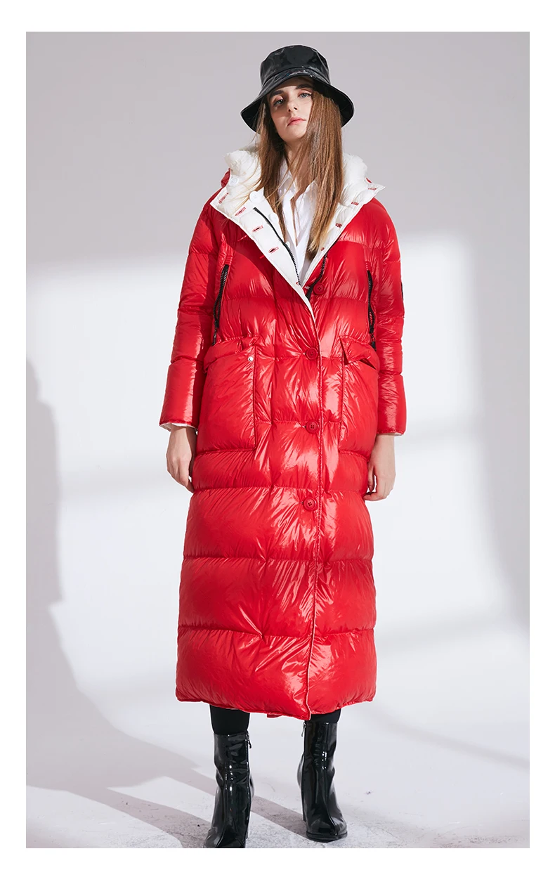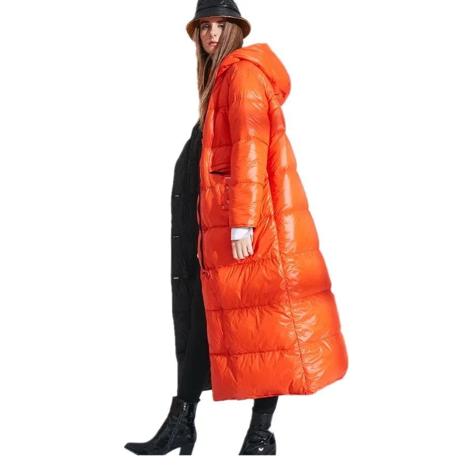 XS-7XL, зимнее двухстороннее пальто, плотное теплое пуховое пальто X-длинное, размера плюс на белом утином пуху, женская верхняя одежда, парки с капюшоном F123