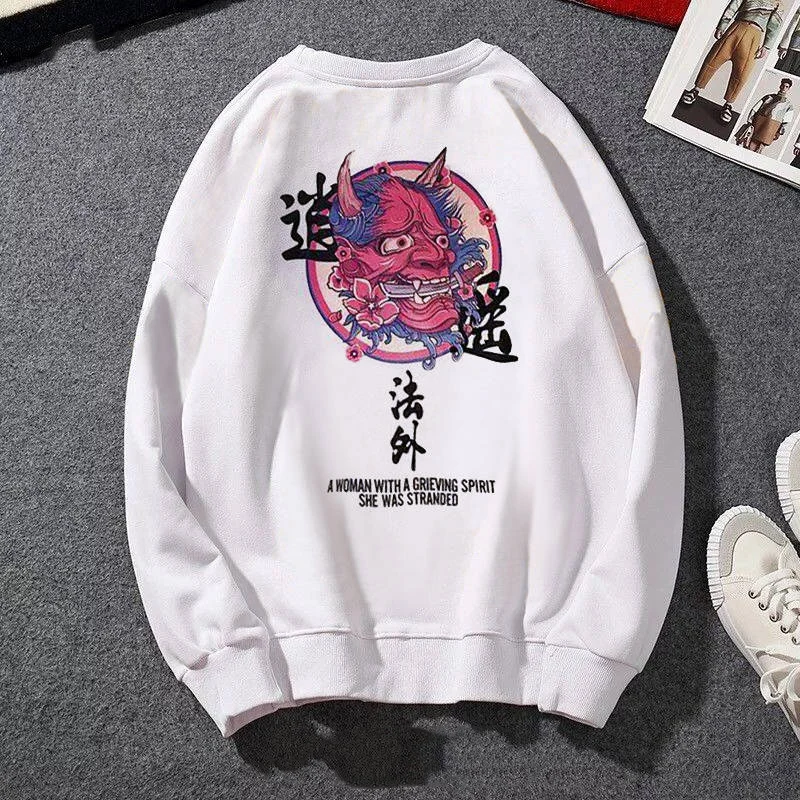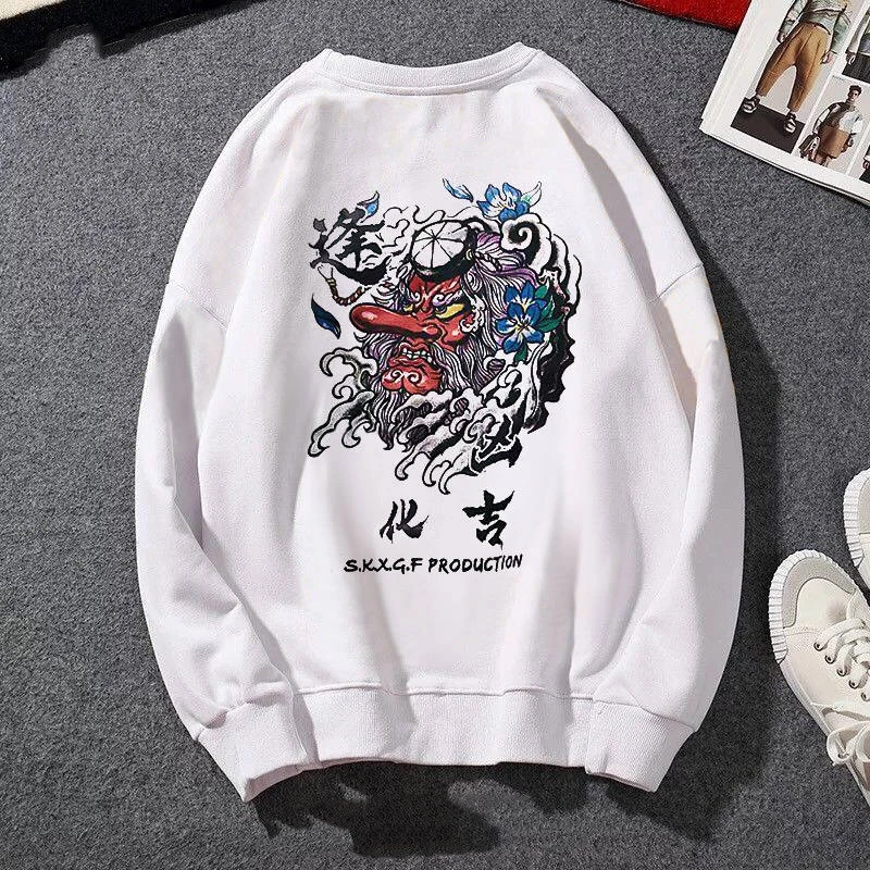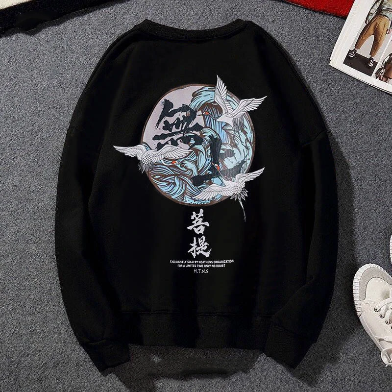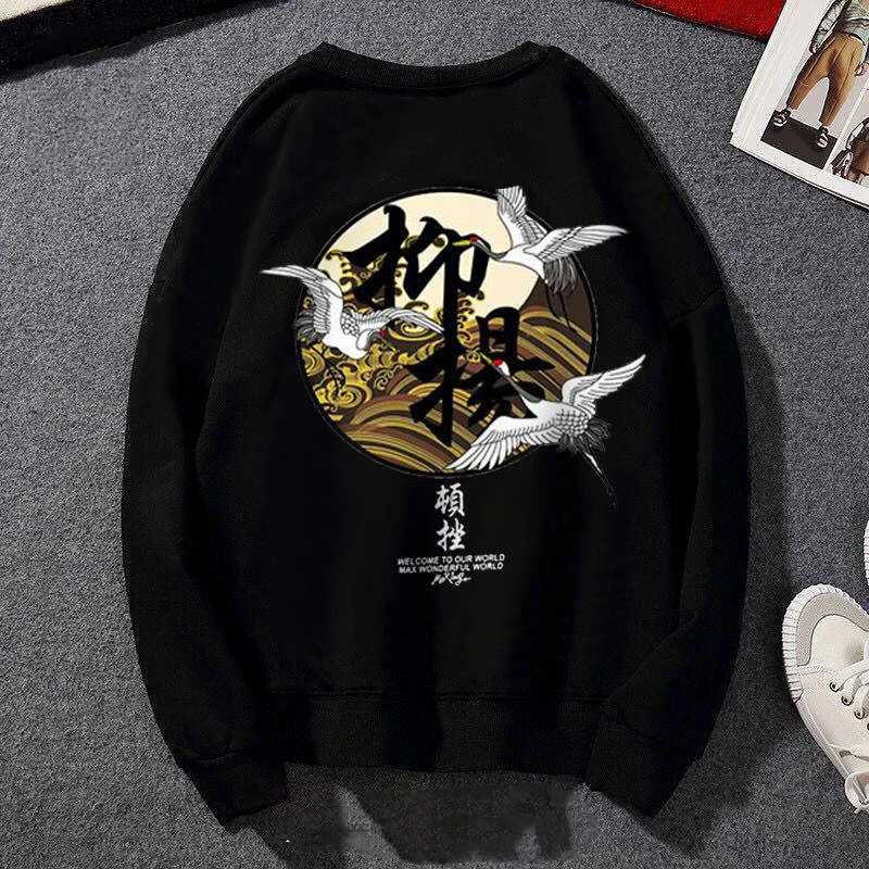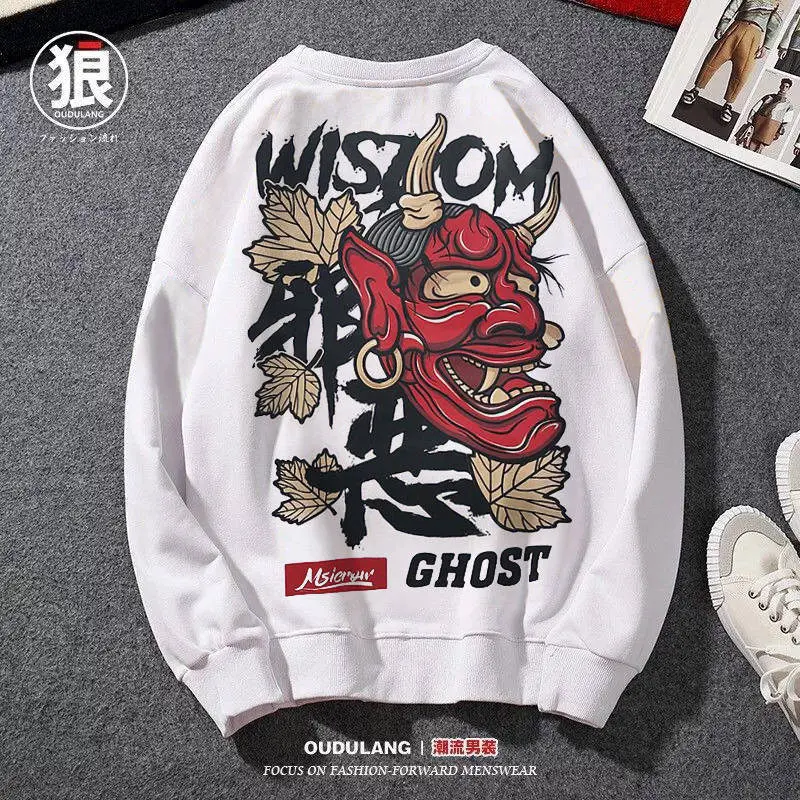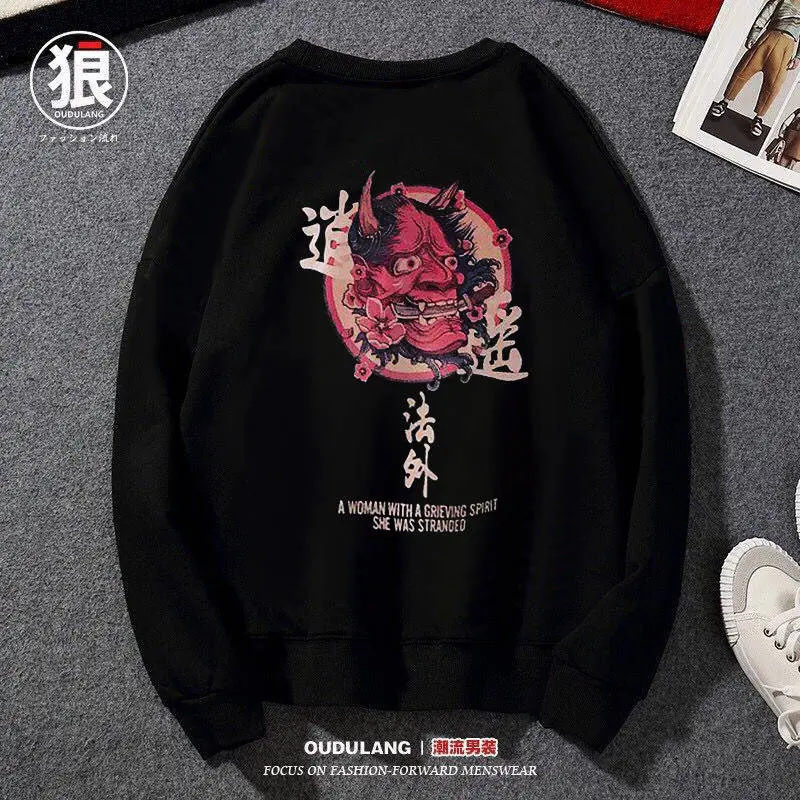 Японские флисовые толстовки с забавным рисунком кота и волн, Зимние Повседневные свитшоты в японском стиле, в стиле хип-хоп, уличная одежда с призраком, китайским, очаровательным рисунком