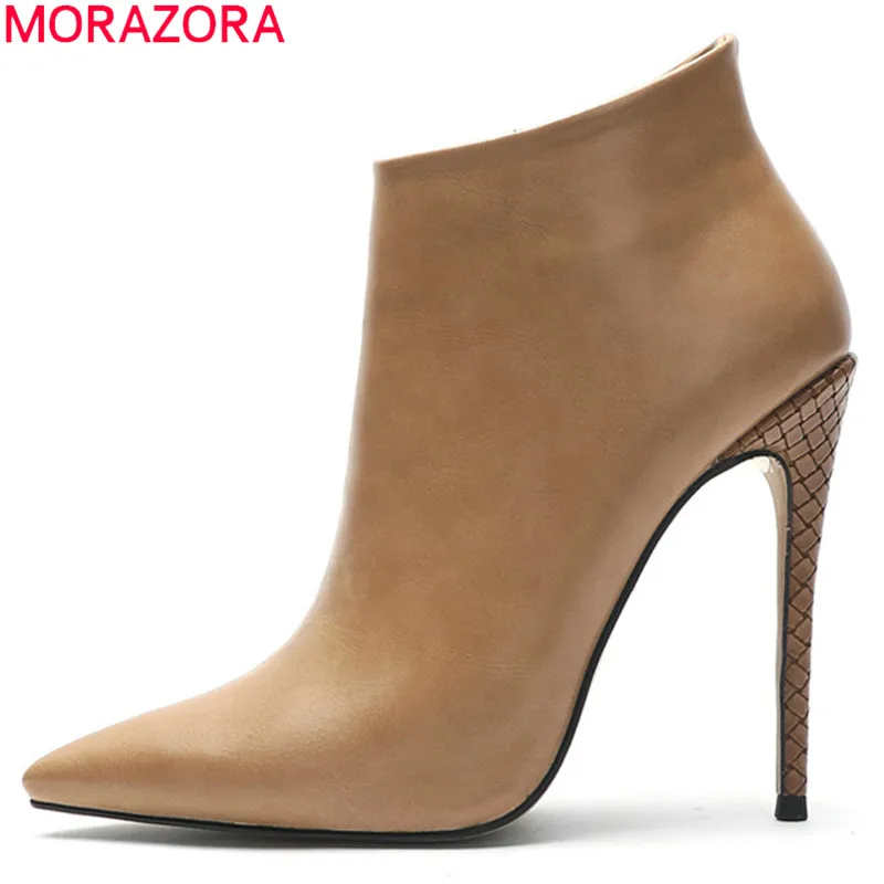 MORAZORA2020 женские ботильоны; однотонные элегантные туфли на высоком тонком каблуке для вечеринки и свадьбы; сезон осень-зима; большие размеры 45