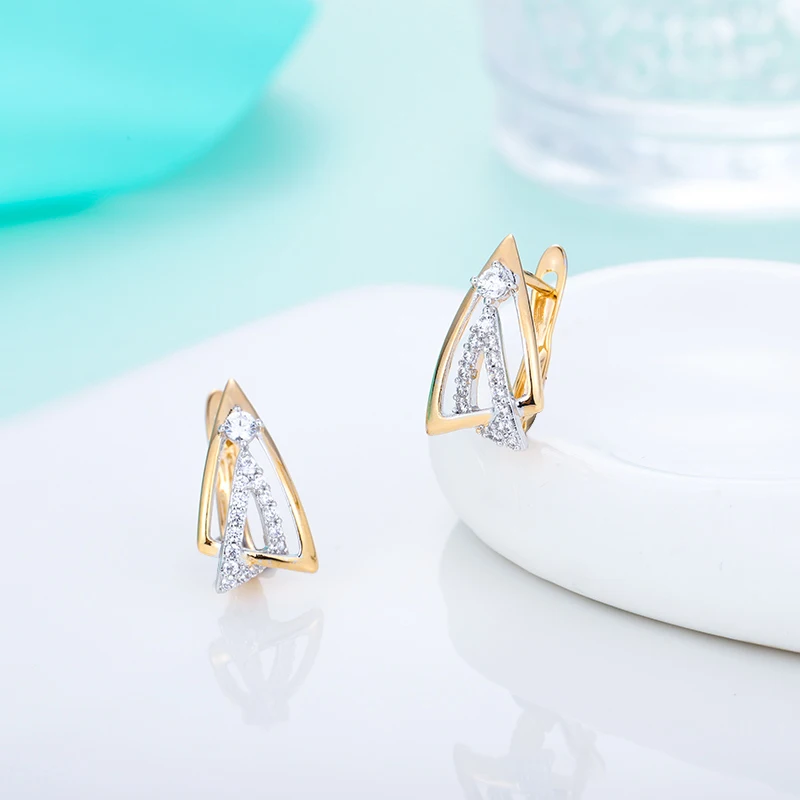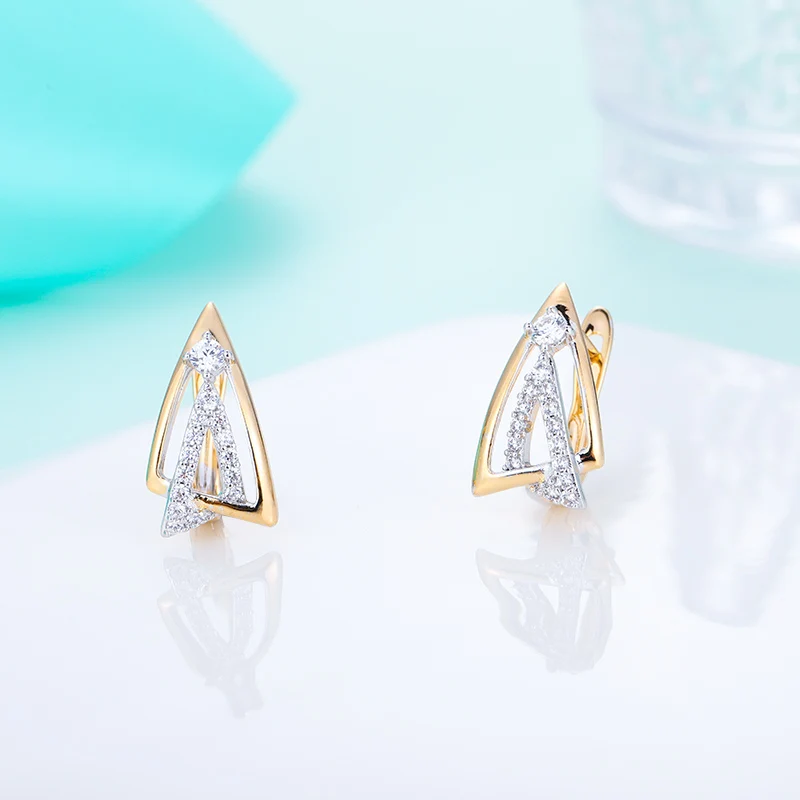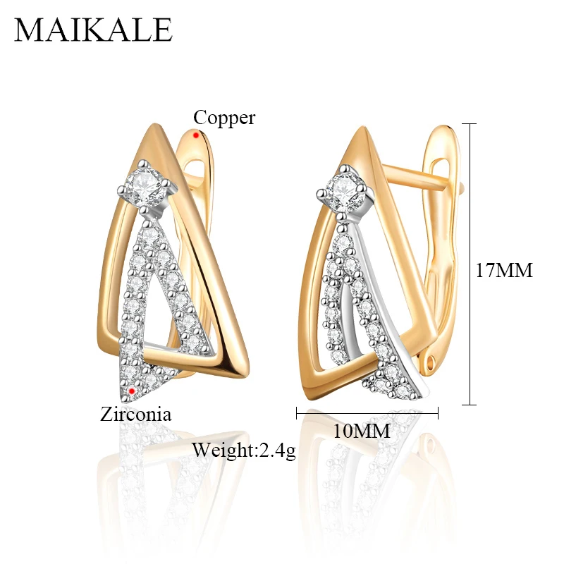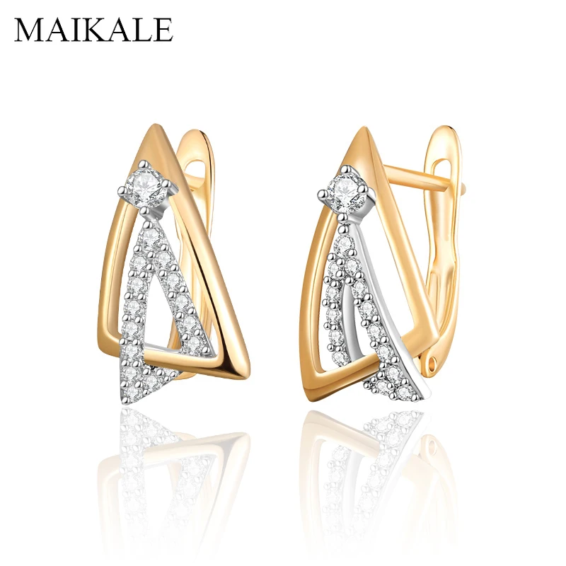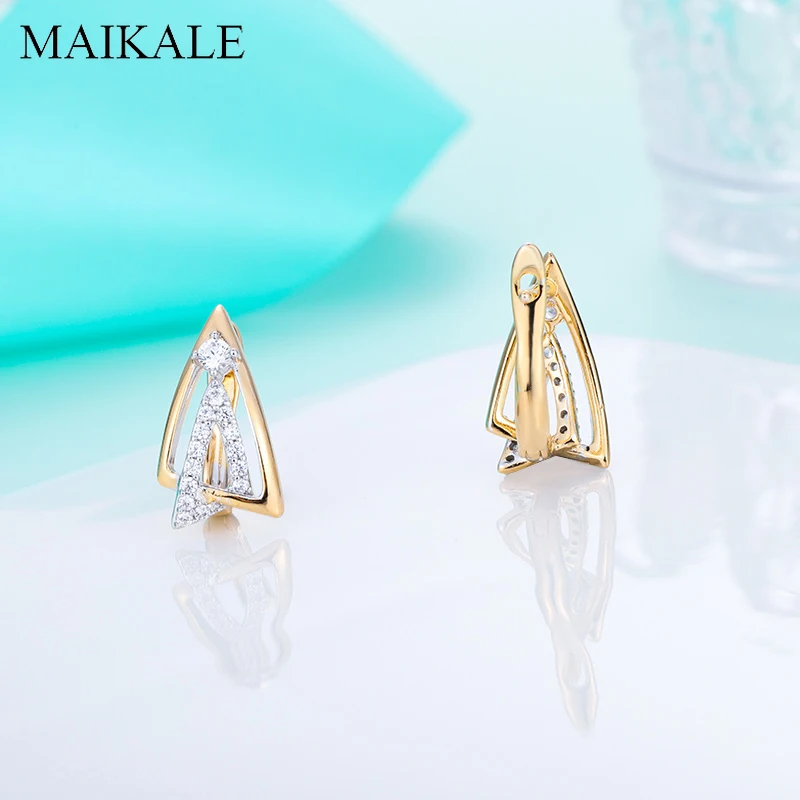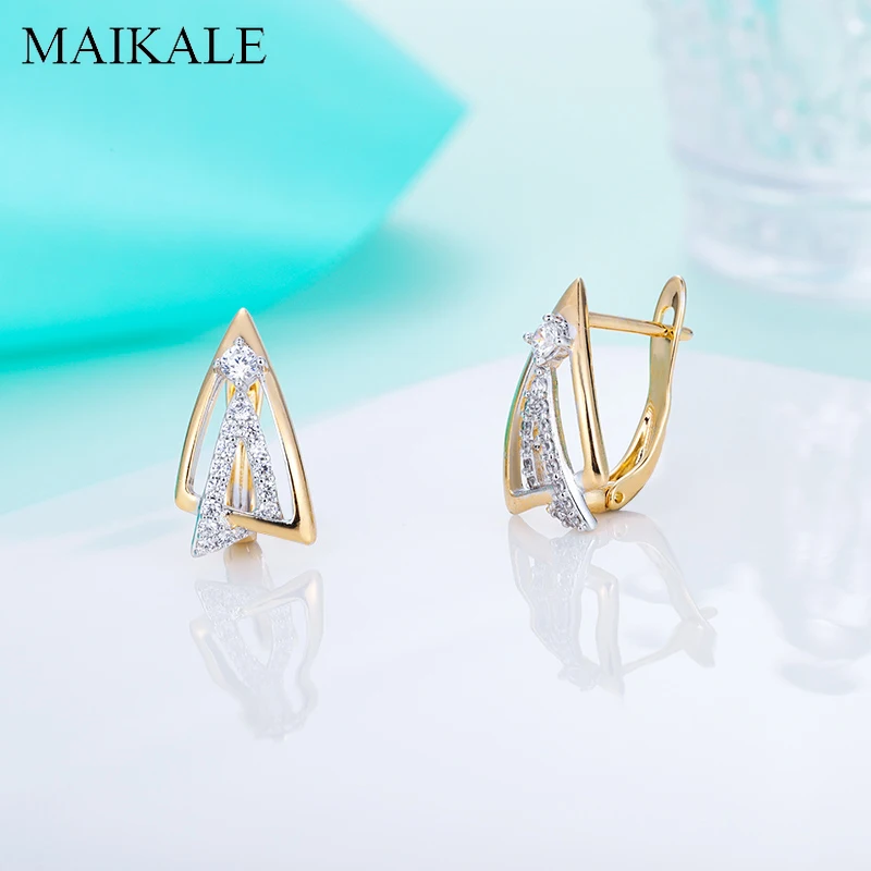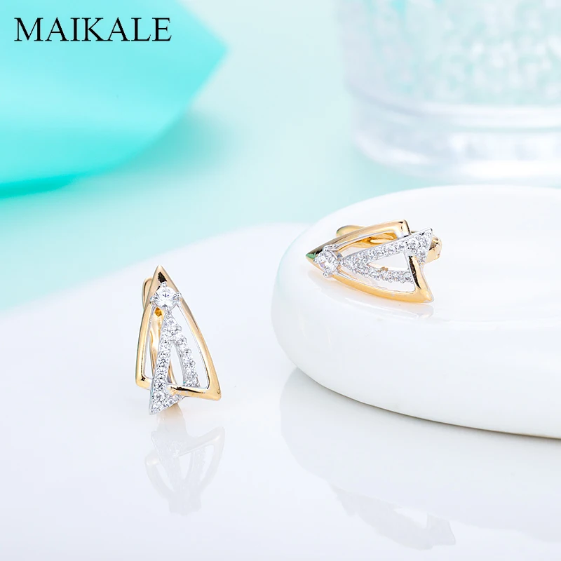Женские треугольные серьги-гвоздики MAIKALE, популярные серьги золотистого цвета с фианитом геометрической формы, ювелирные изделия для подарка девушке и вечеринки