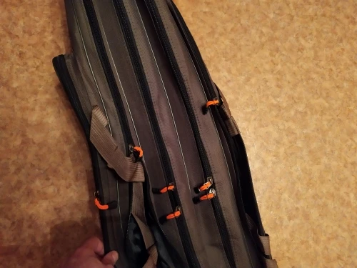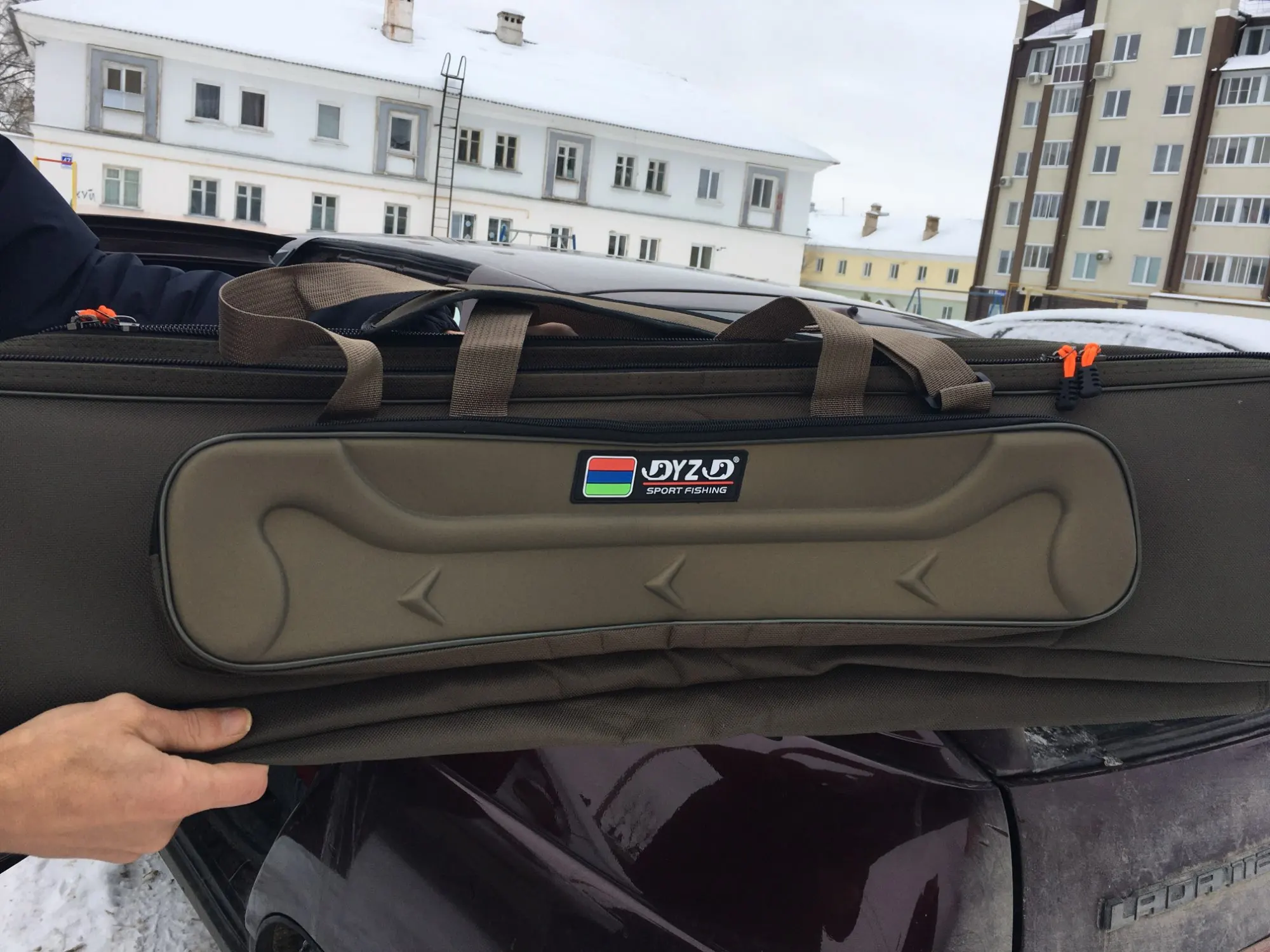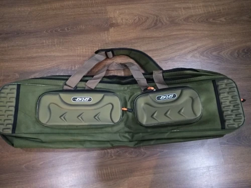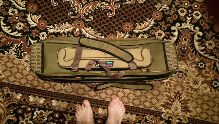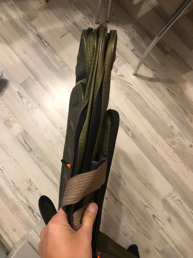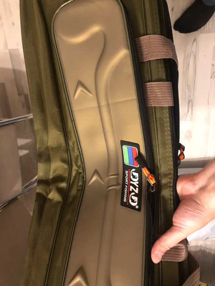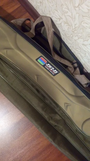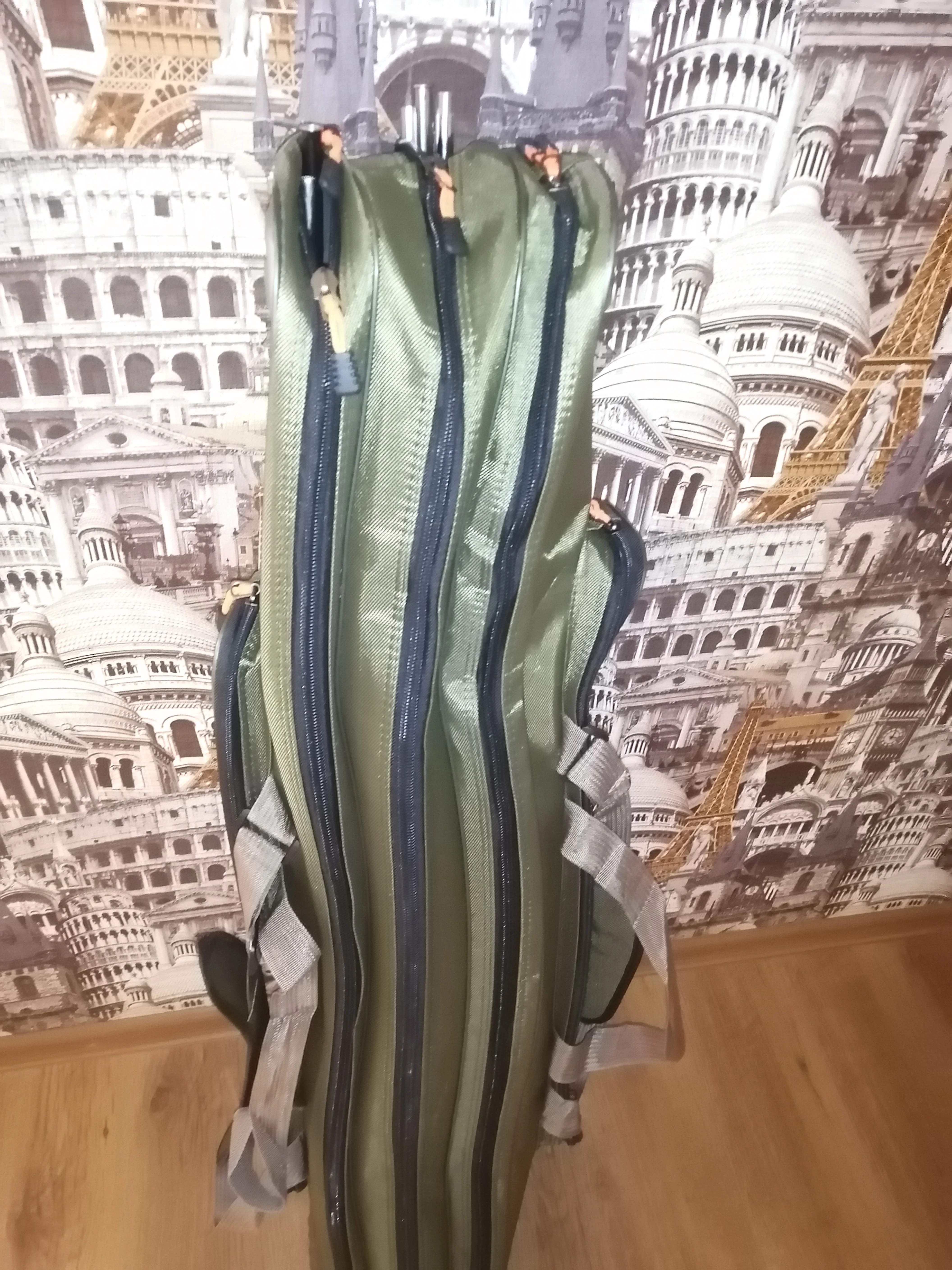 Нормальный чехол, сшит качественно. Учтите, что при транспортировке от продавца чехол сгибают для упаковки. Но проволока, которая создаёт каркас жёсткости, потом легко выпрямляется руками и встает на свое прежнее место. Взял двухсекционный длиной метр. Он очень вместительный, в него можно убрать сразу несколько телескопических удочек прямо с катушками. Плюс есть боковой карман на молнии под всякую мелочь.