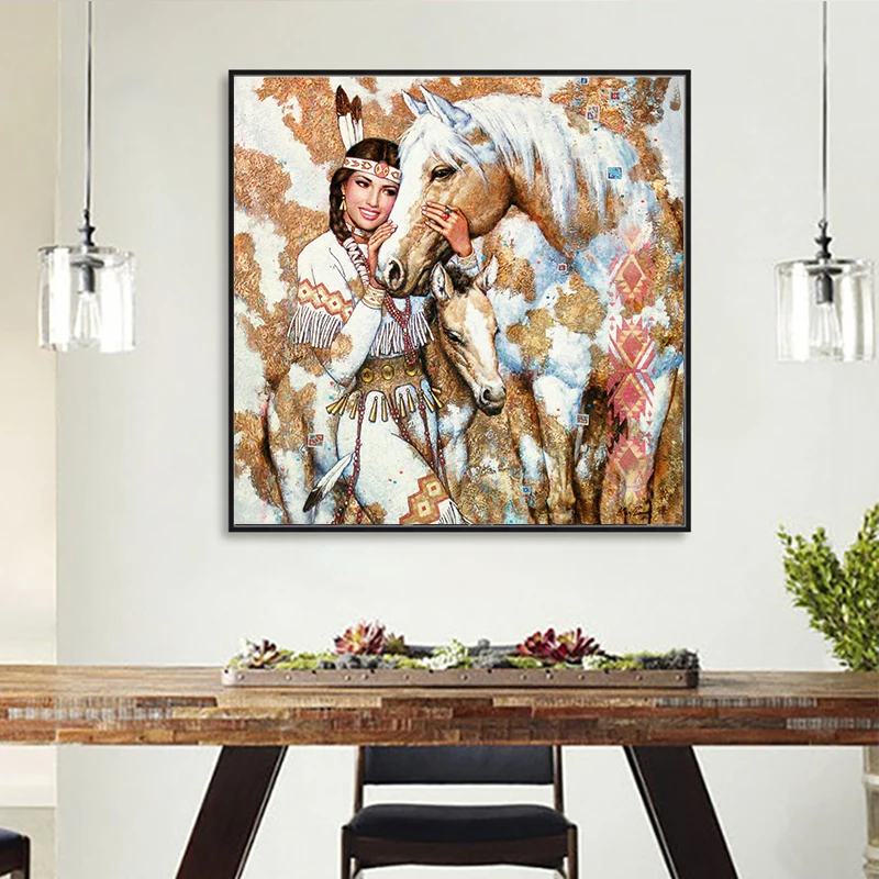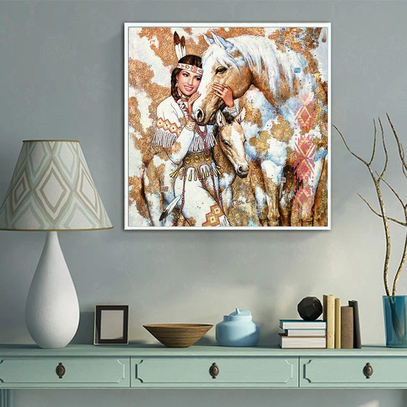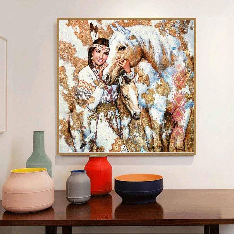 Американский женский и конский холст, художественная живопись, настенная живопись, принт, постер, настенное искусство, спальня, гостиная, Современное украшение для дома