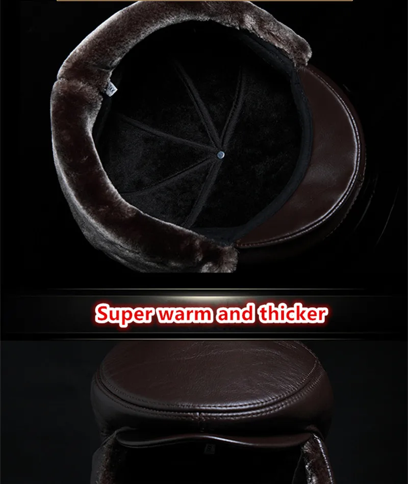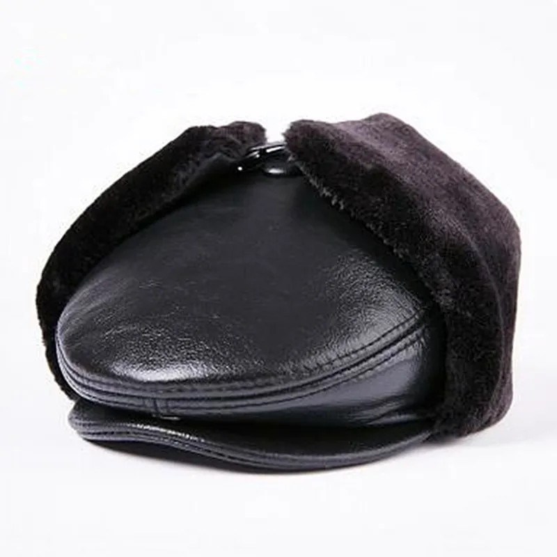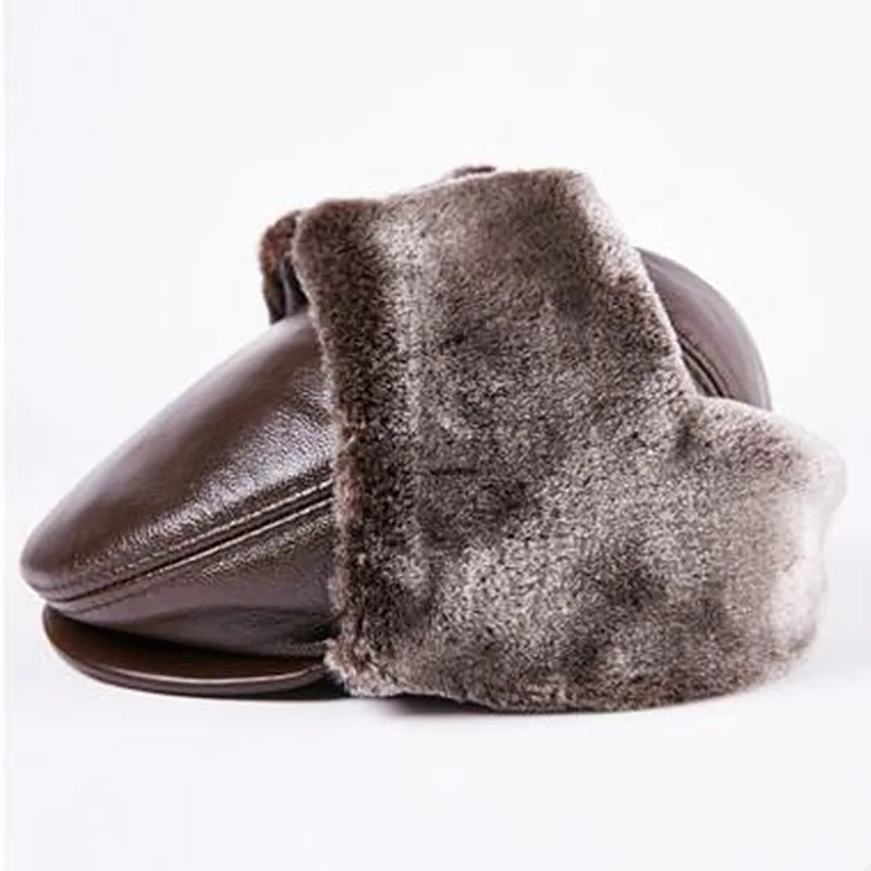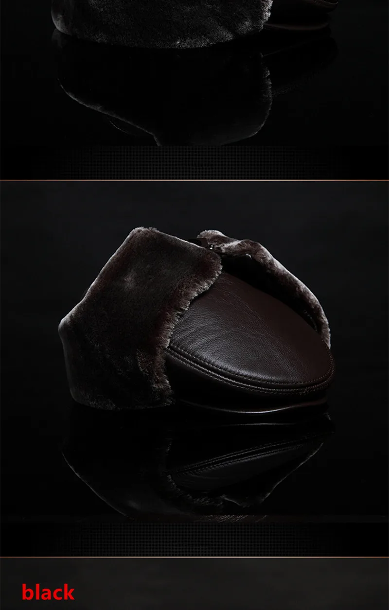 SILOQIN шапка из натуральной кожи зимние теплые наушники береты муж...