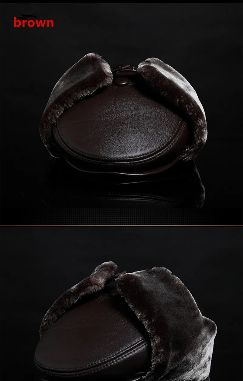 Зимняя шапка с наушниками, мужские береты из воловьей кожи, шапка и...