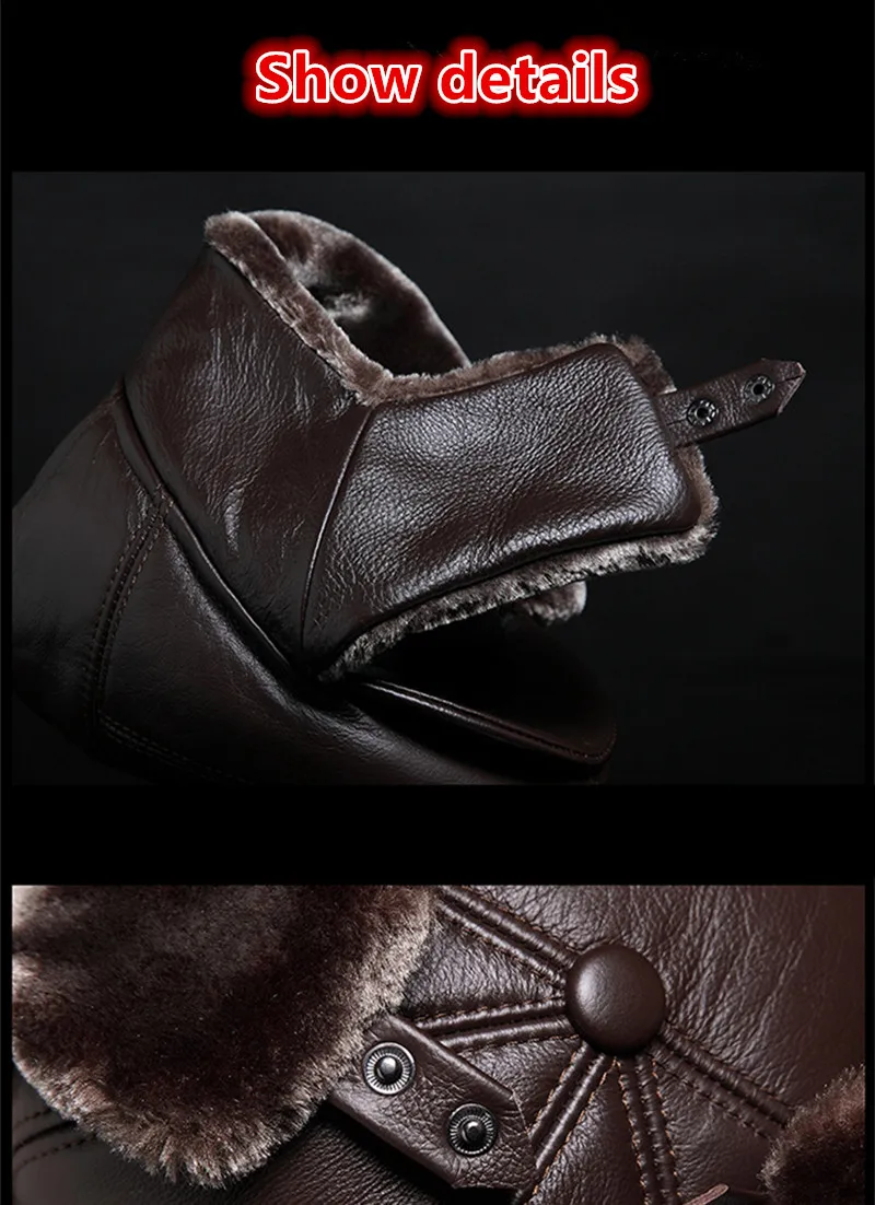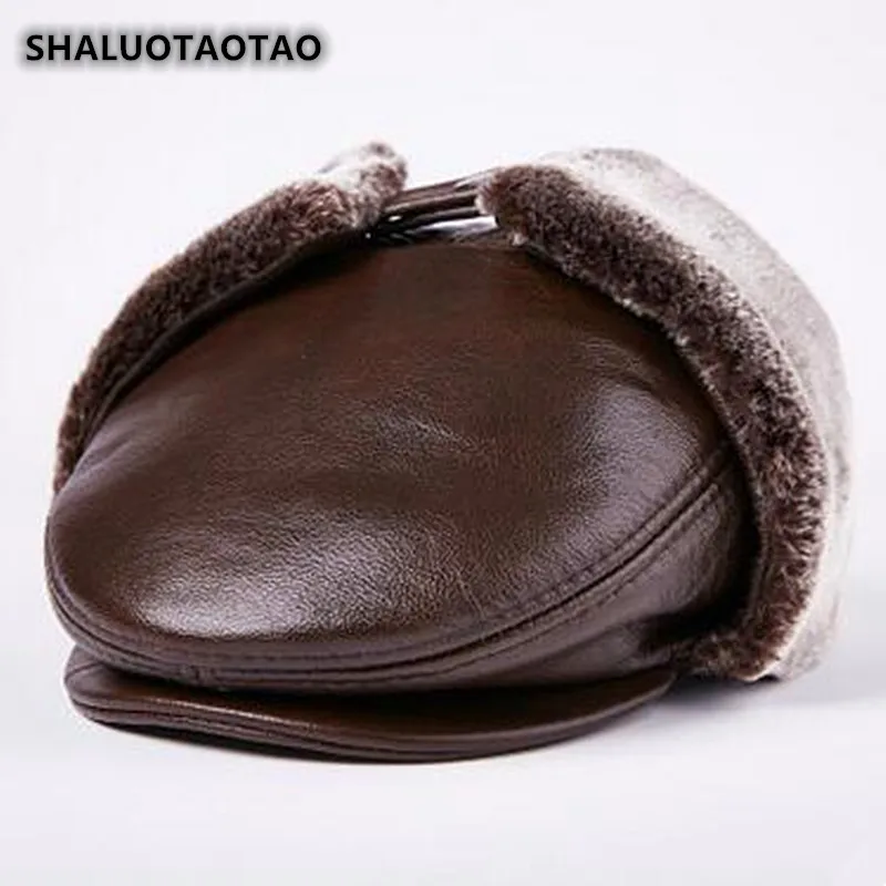 Шапка SHALUOTAOTAO для папы, зимние Утепленные шапки-бомберы для мужчин, модные бархатные наушники, шапка из натуральной воловьей кожи, Новинка