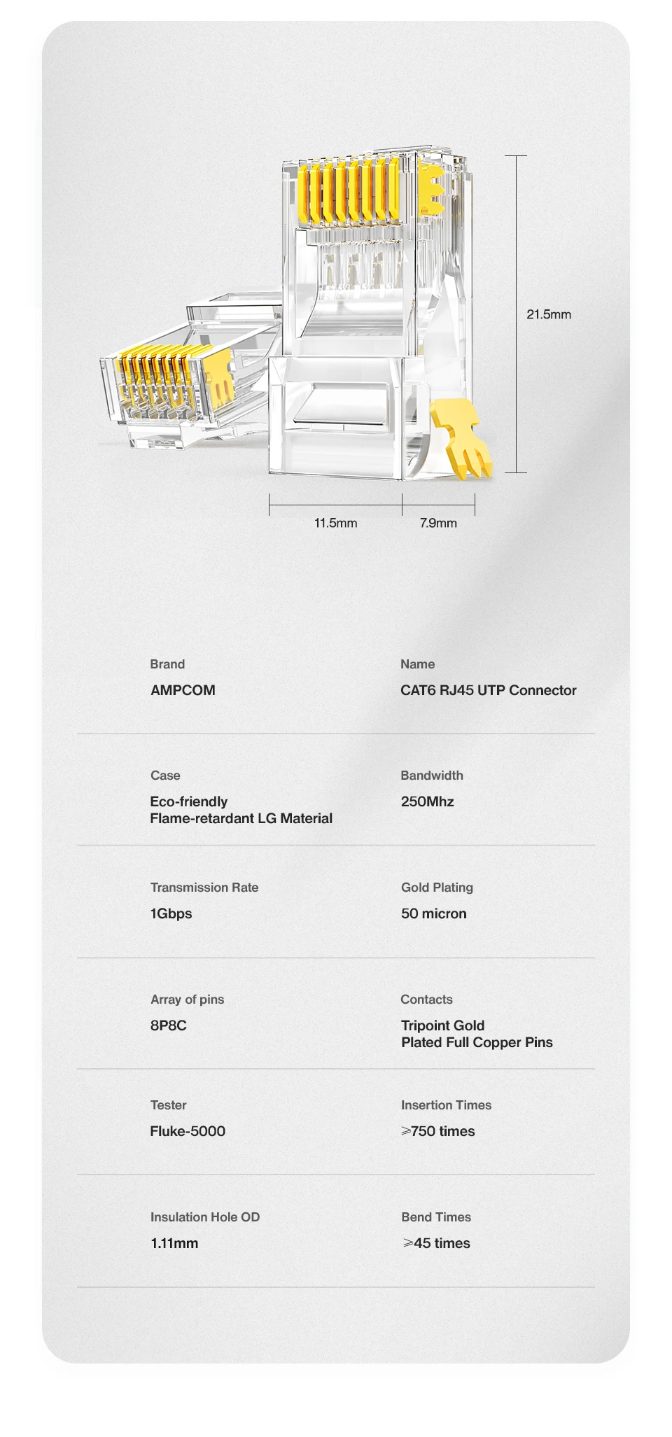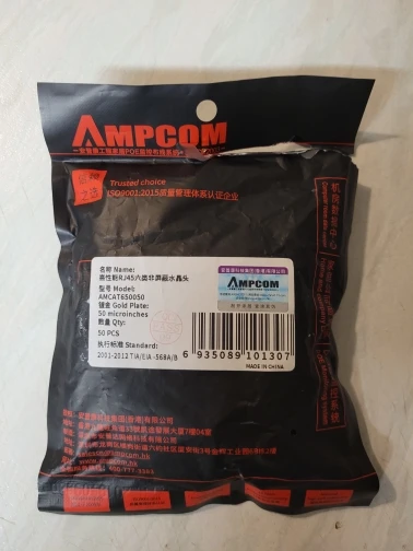 Модульный Штекерный разъем AMPCOM CAT6 RJ45, UTP 50 МК, позолоченный двухкомпонентный 8P8C, обжимной Конец для кабеля Ethernet, оптовый кабель Ethernet