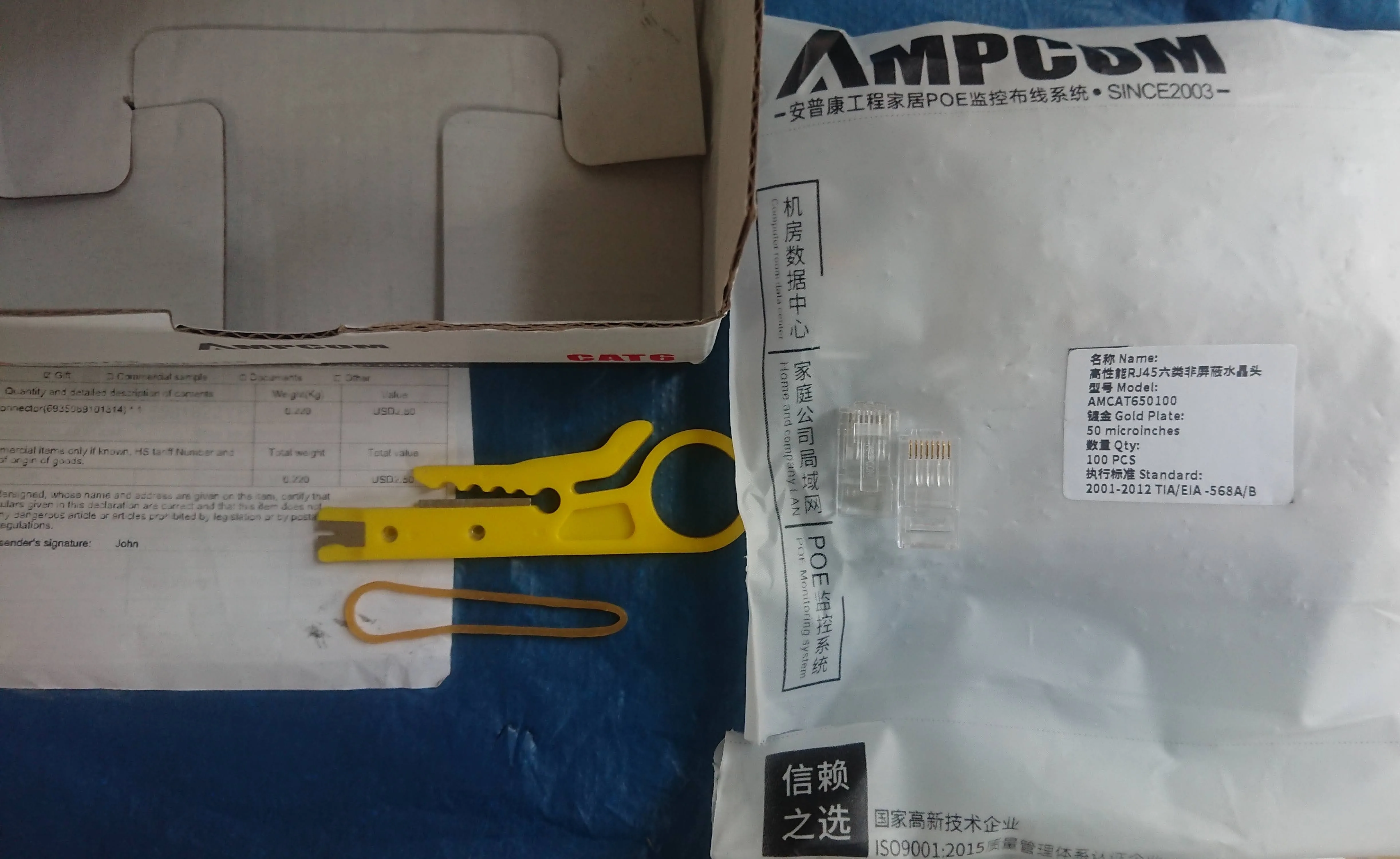 Пришло IML курьером за неделю до Нск. Упаковано в один слой пупырки. Покупал по акции 50 штук на пробу, но прислали упаковку со 100 шт. Было очень приятно, продавец сказал, что доплачивать не надо. В комплекте шел нож для снятия изоляции, вещь нужная и удобная. Попробовал поломать фиксатор как это делают в рекламе - держится хорошо, пластик не хрупкий. Кабель кат.5е 24АВГ входит плотненько, я бы сказал даже тяжеловато, но входит. Толщина поволки в изоляции 1.1 мм, как раз как диаметр отверстия. Качеством доволен, но и цена не маленькая. Товар и продавца рекомендую, доставили быстро и товар качественный.