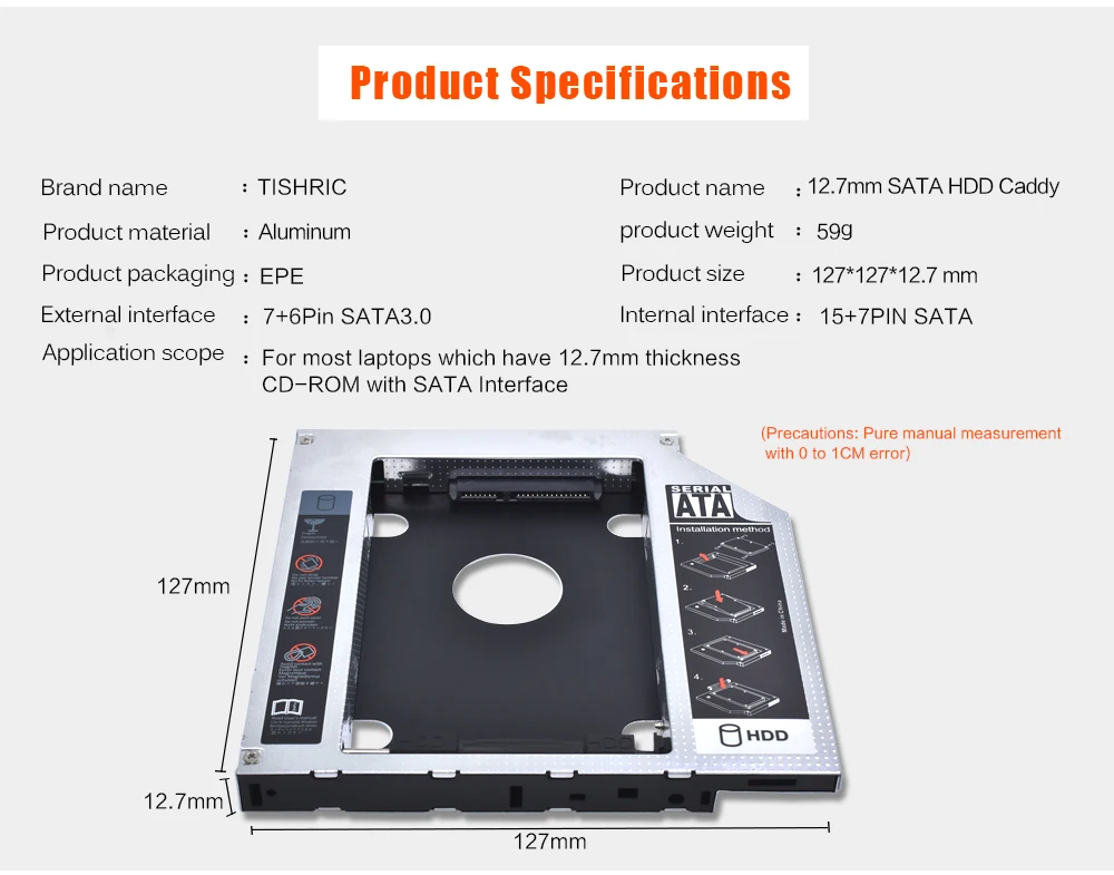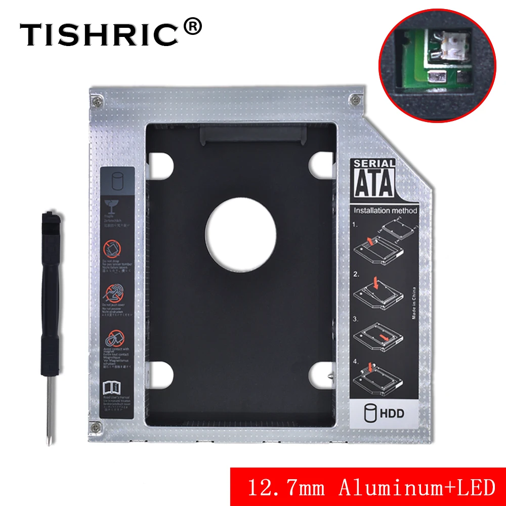 Tishric алюминиевый Универсальный 12,7 мм SATA 3,0 HDD Caddy светодиодный светодиодным адаптером, корпус для жесткого диска, DVD HDD для ноутбука
