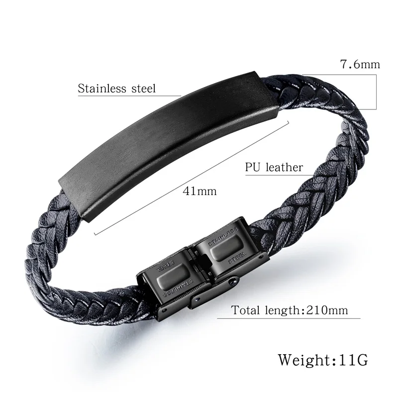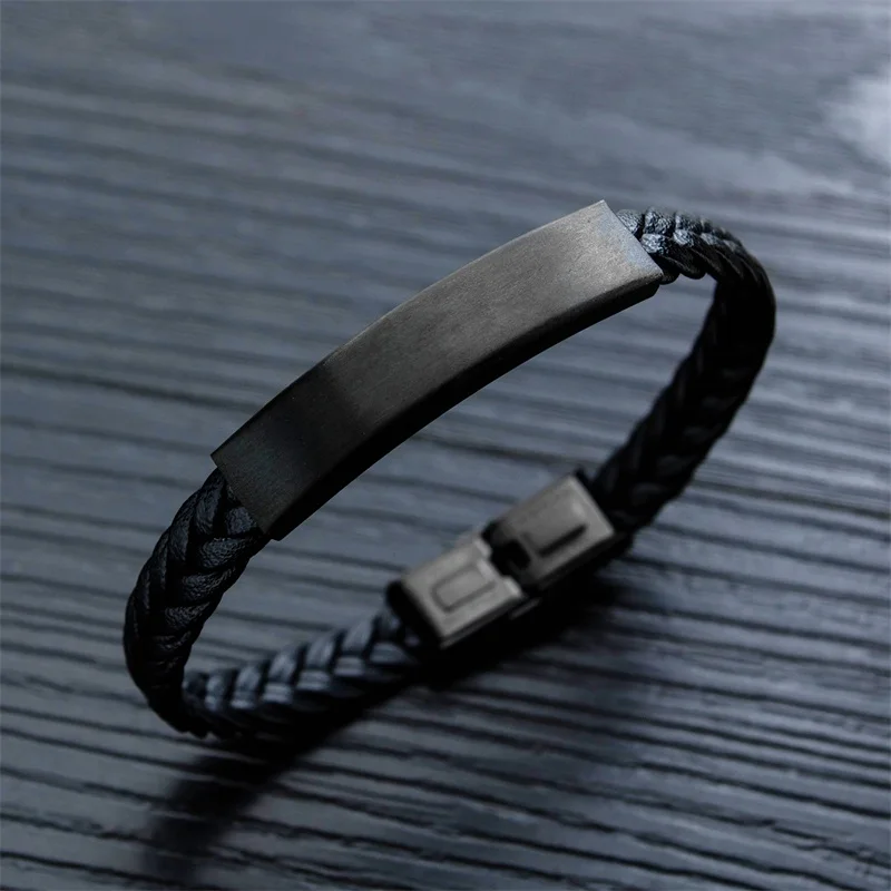 Винтажный Выгравированный именной черный плетеный кожаный браслет AZIZ BEKKAOUI, браслет сделай сам из нержавеющей стали с надписью, мужской браслет, ювелирные изделия