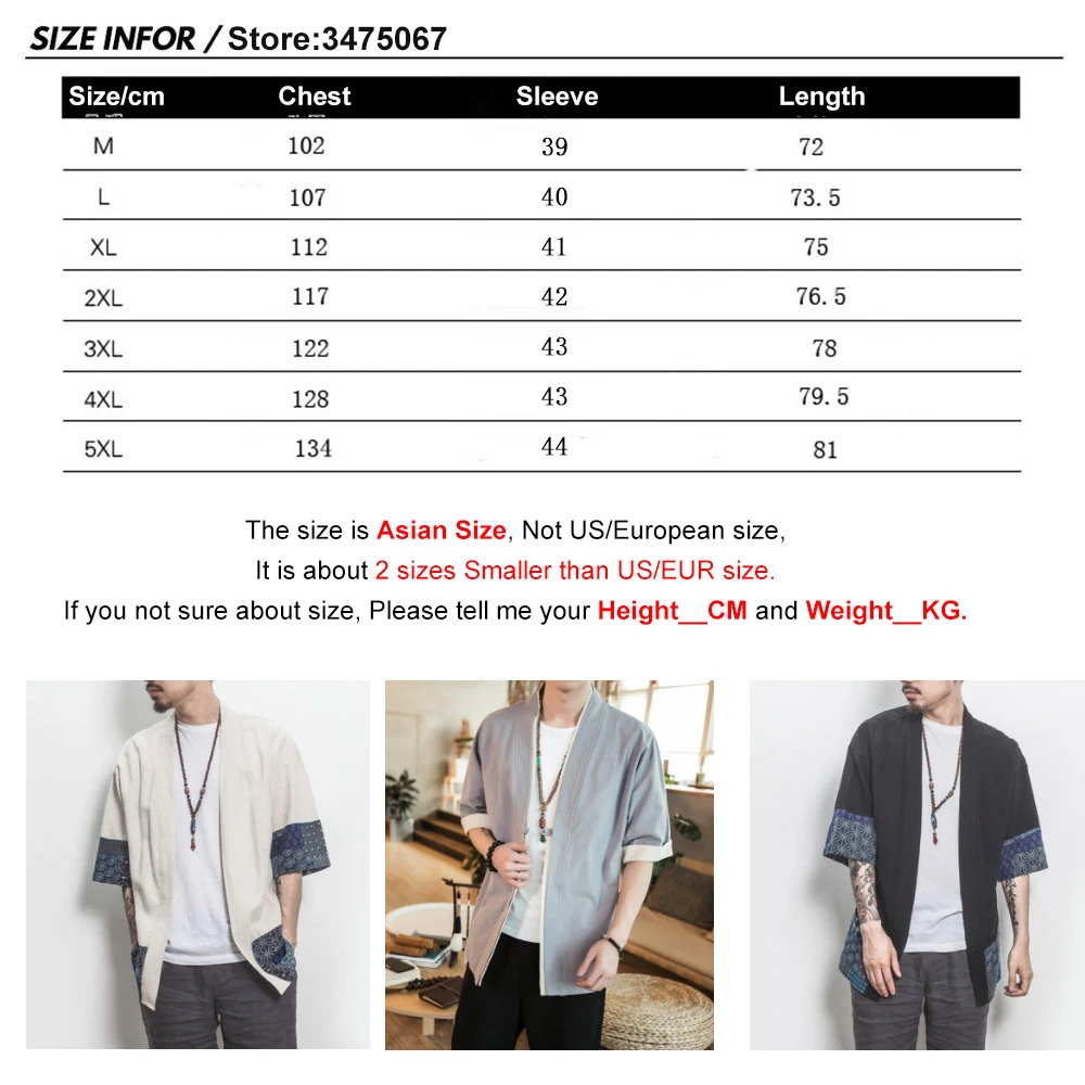 Хлопковая льняная рубашка, куртки, Мужская китайская уличная кимоно, рубашка, пальто, мужские льняные кардиганы, куртки, пальто размера плюс 5XL, Прямая поставка