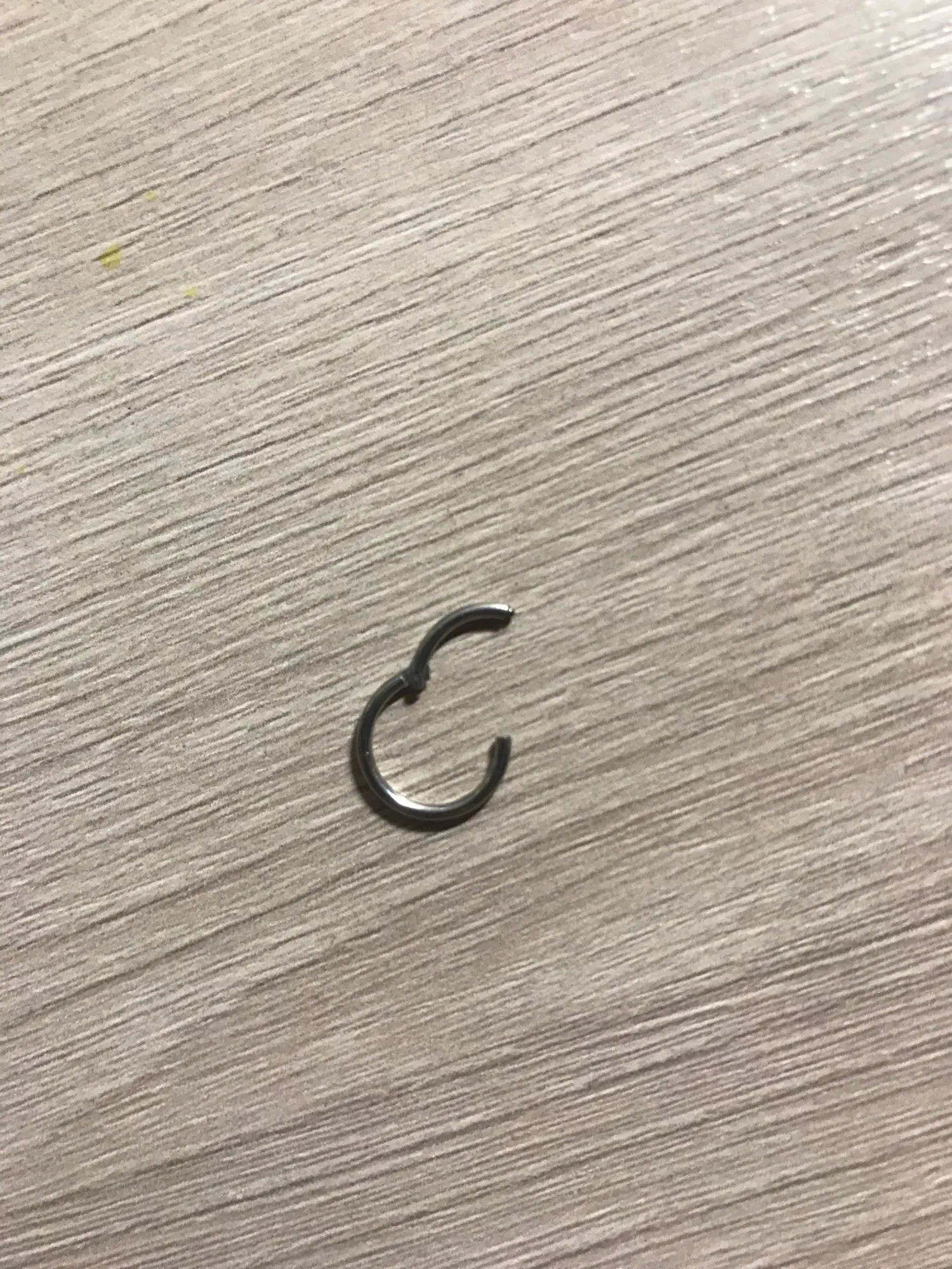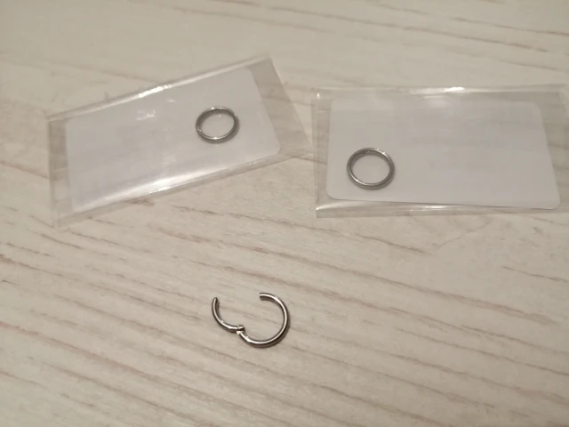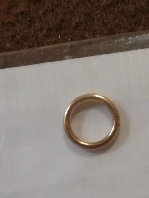 Прекрасное кольцо! Заказываю не первый раз. Использую как пирсинг в нос. За год-полтора постоянного ношения темнеет, но не критично(на фото видно). Ранее брала большего размера, в этот раз решила попробовать 6мм- подошло идеально. В использовании простая. Замок крепкий, но всегда получается справиться при помощи одного пинцета и рук) Заказ пришёл в СПб за 2,5 недели.Товар полностью соответствует описанию! Продавца рекомендую!