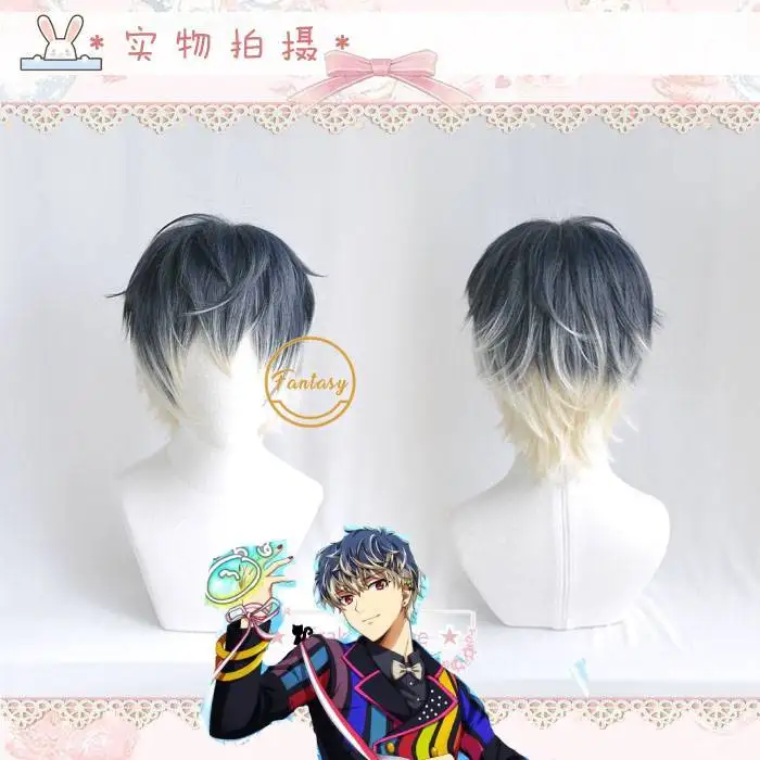 Костюм для косплея полный парик Idolish7 Re:vale Momo черные градиентные короткие волосы + бесплатная шапочка для парика