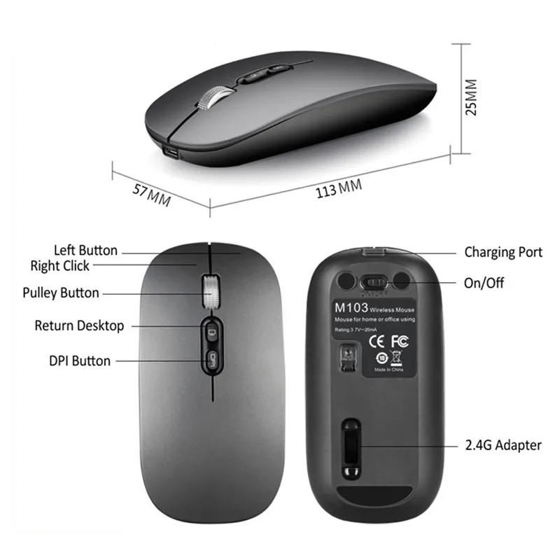 Мышь компьютерная беспроводная оптическая, 1600 DPI, 2,4 ГГц, 5 кнопок