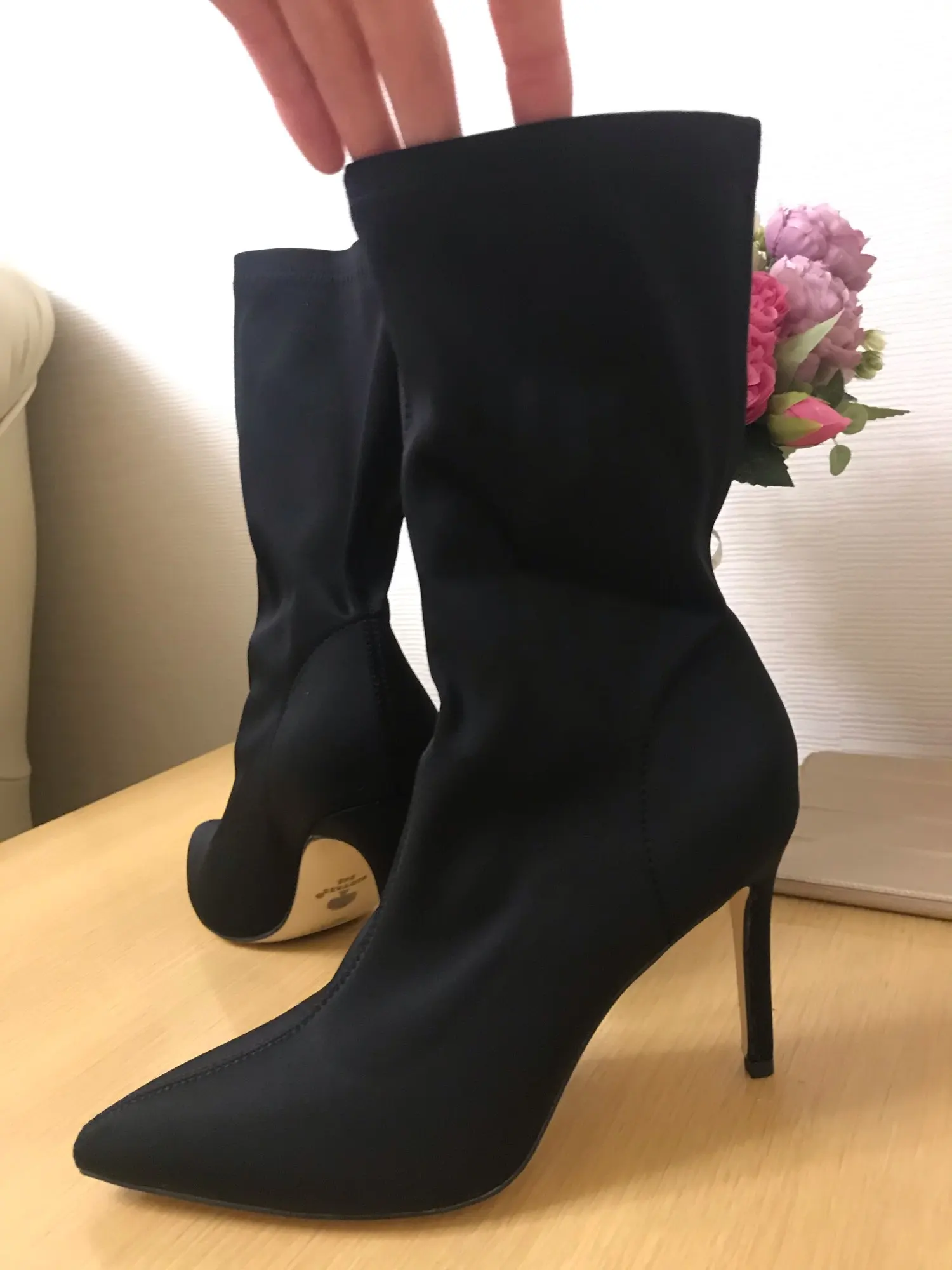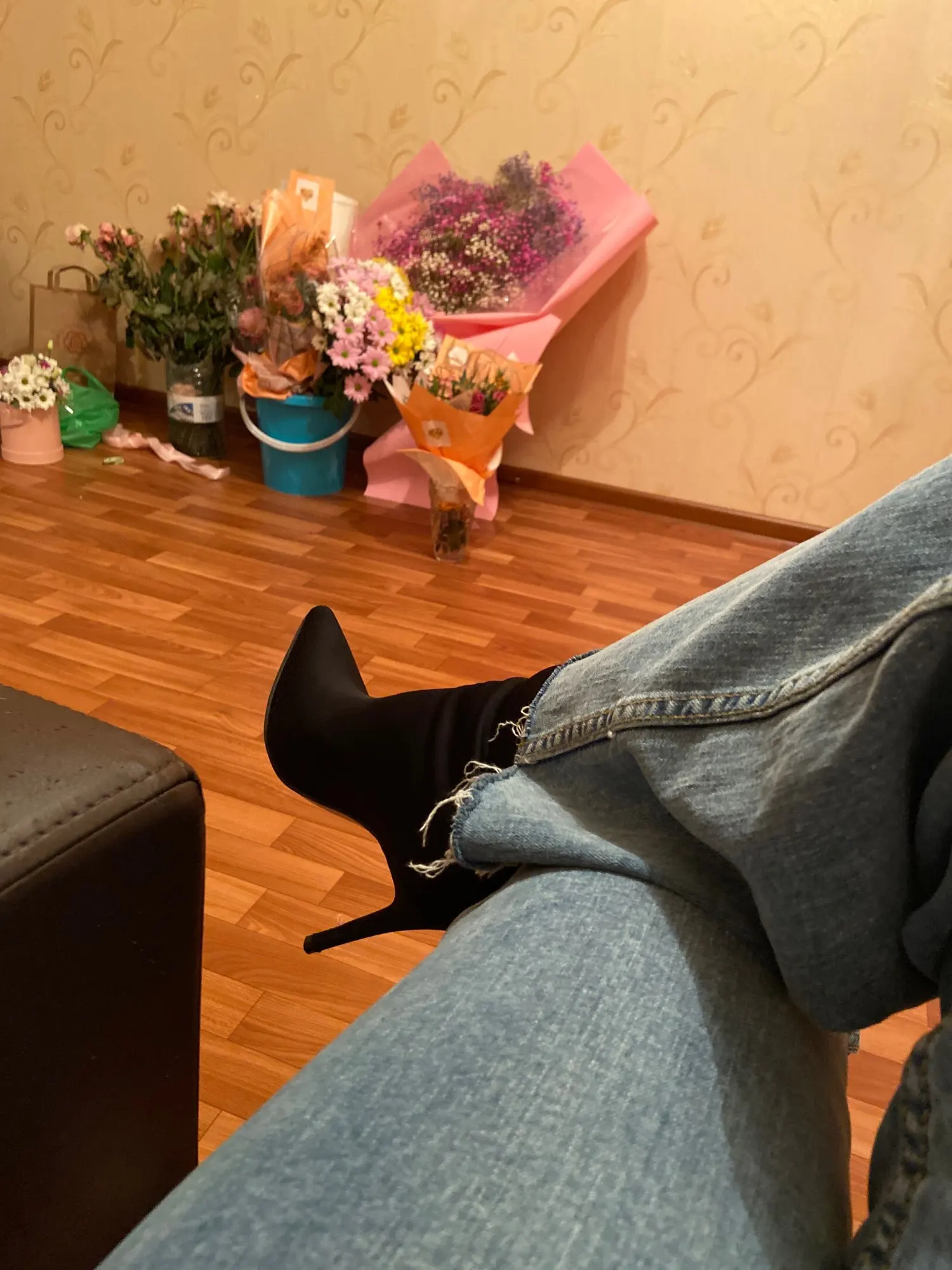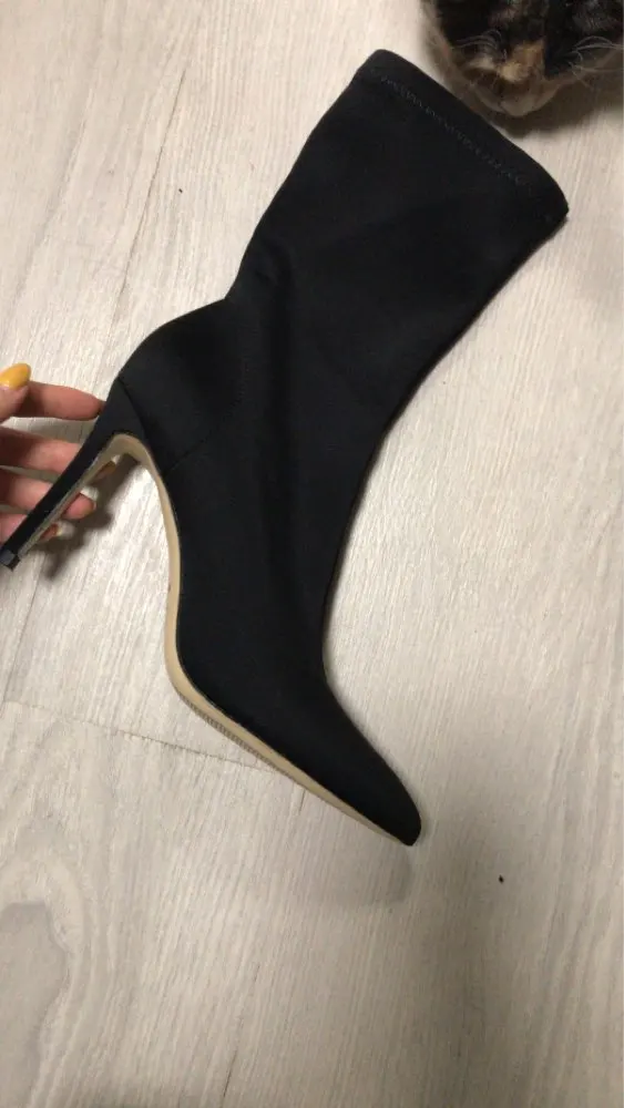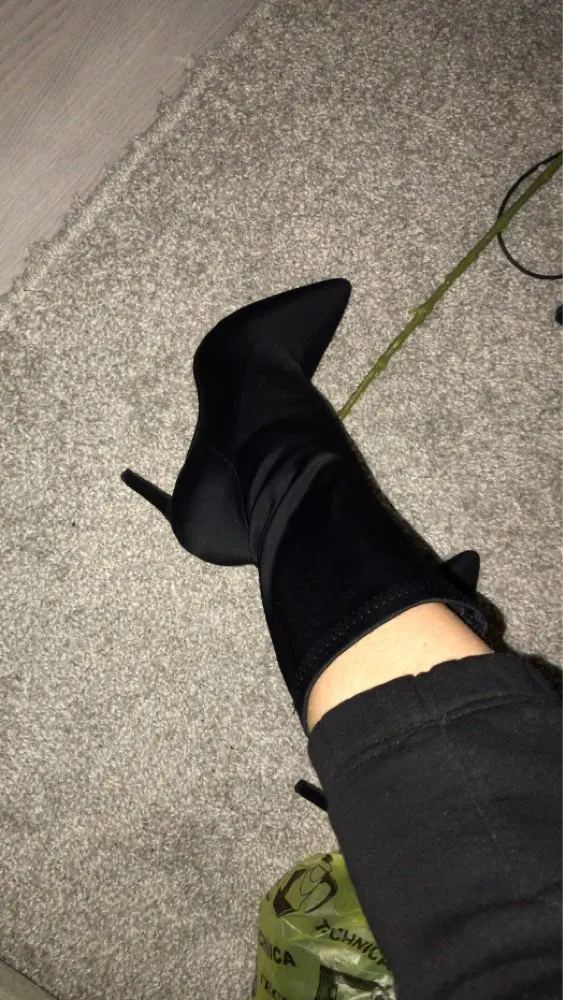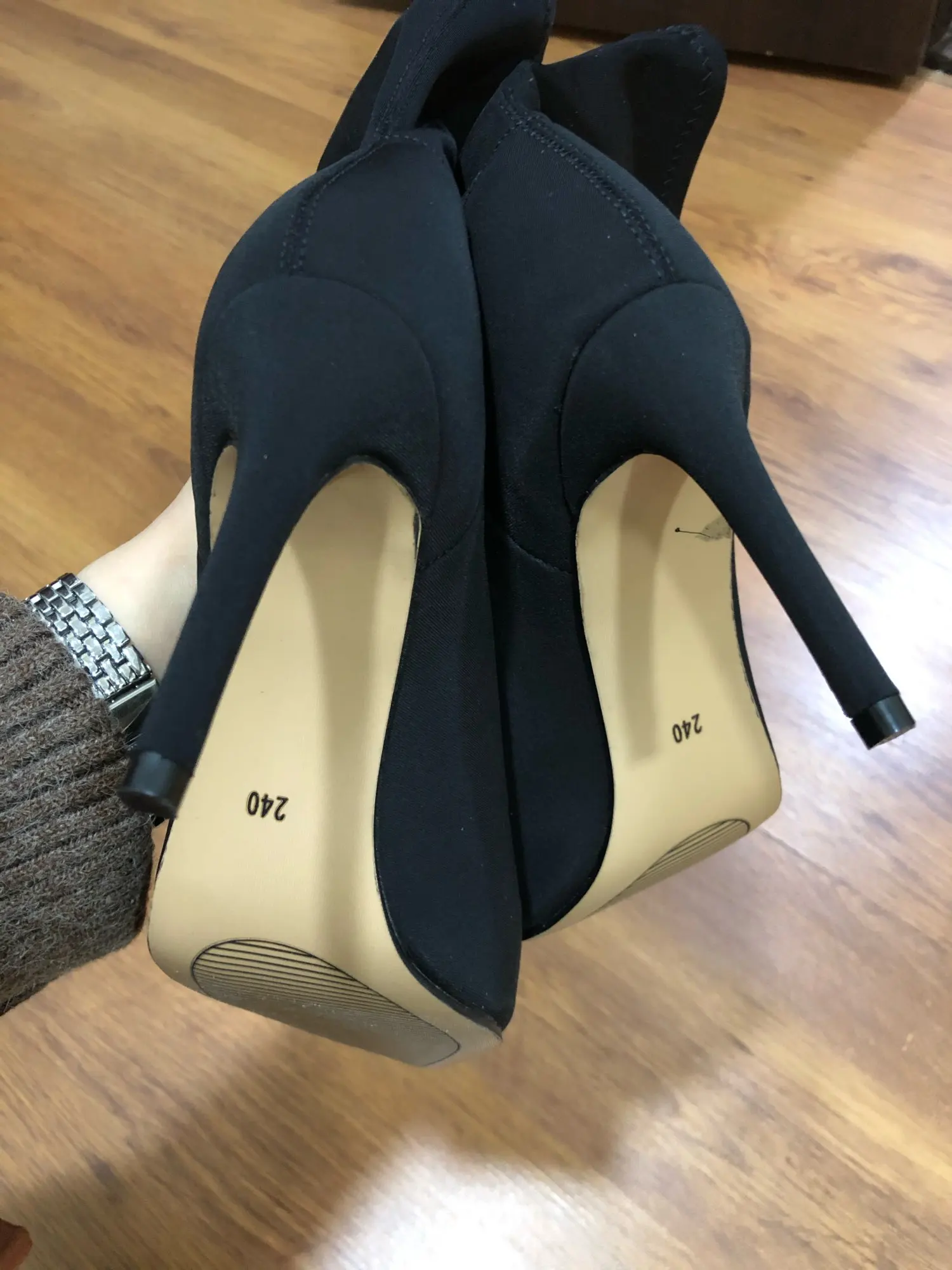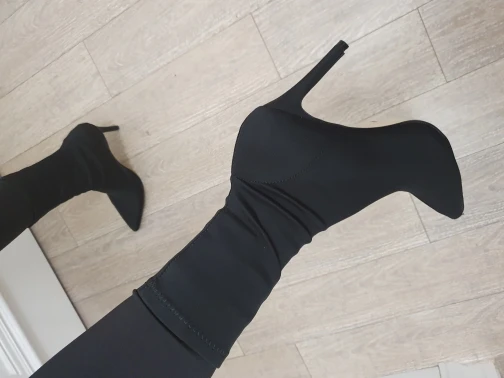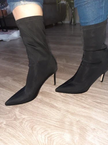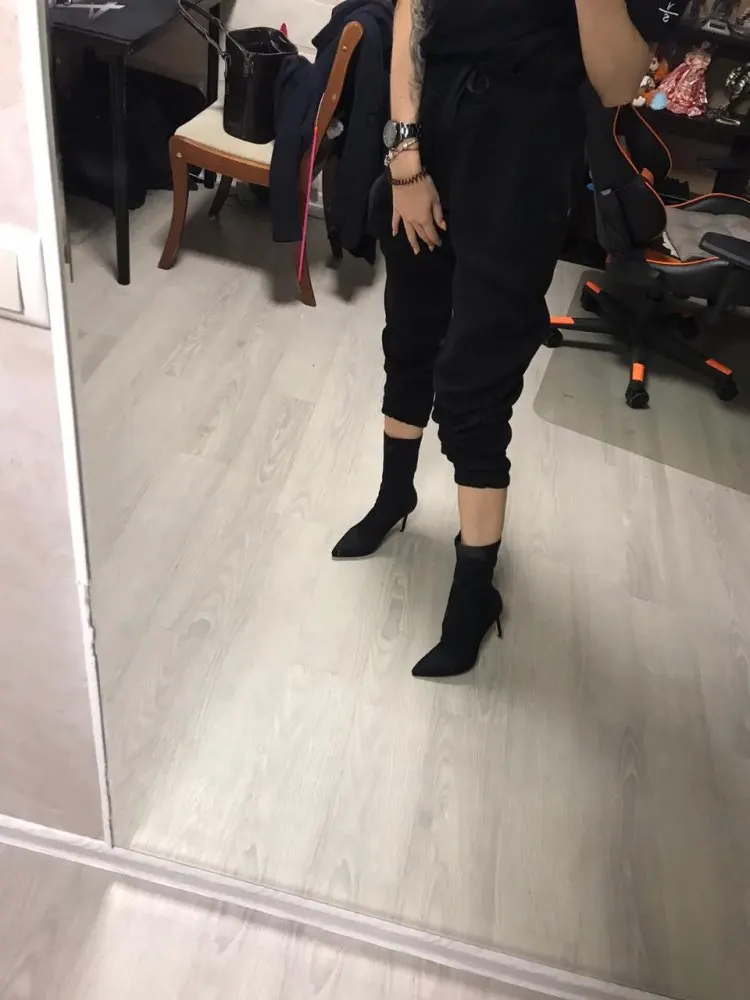 Очень красивые и стильные сапоги- носки. Колодка удобная, надевать легко , ткань хорошо тянется. Похоже на туфли, обтянутые эластичной тканью. Спасибо продавцу, пришли за 10 дней .