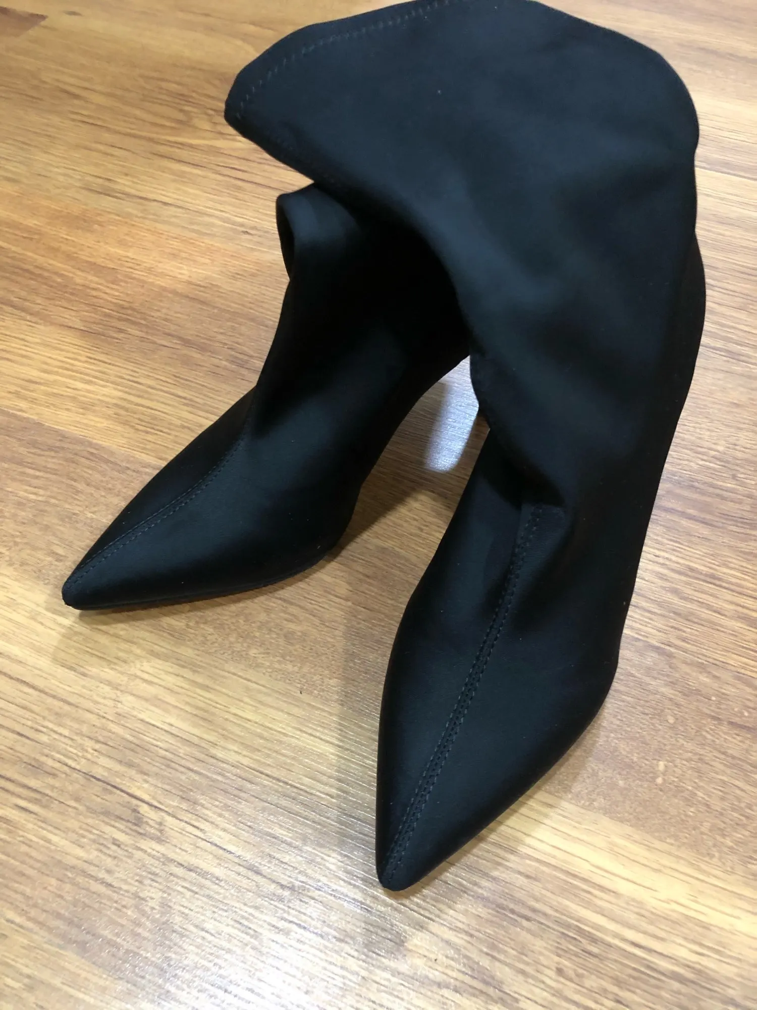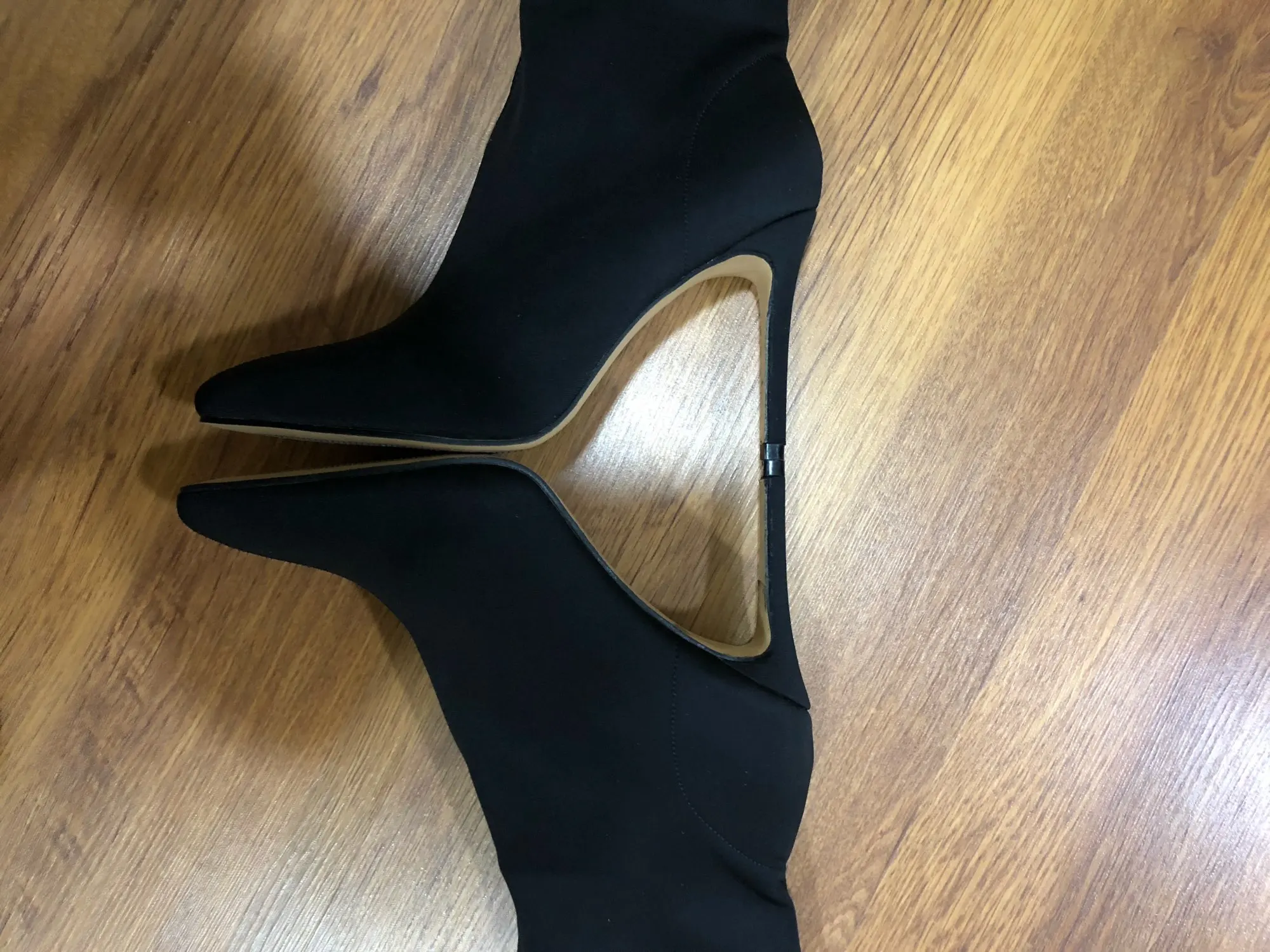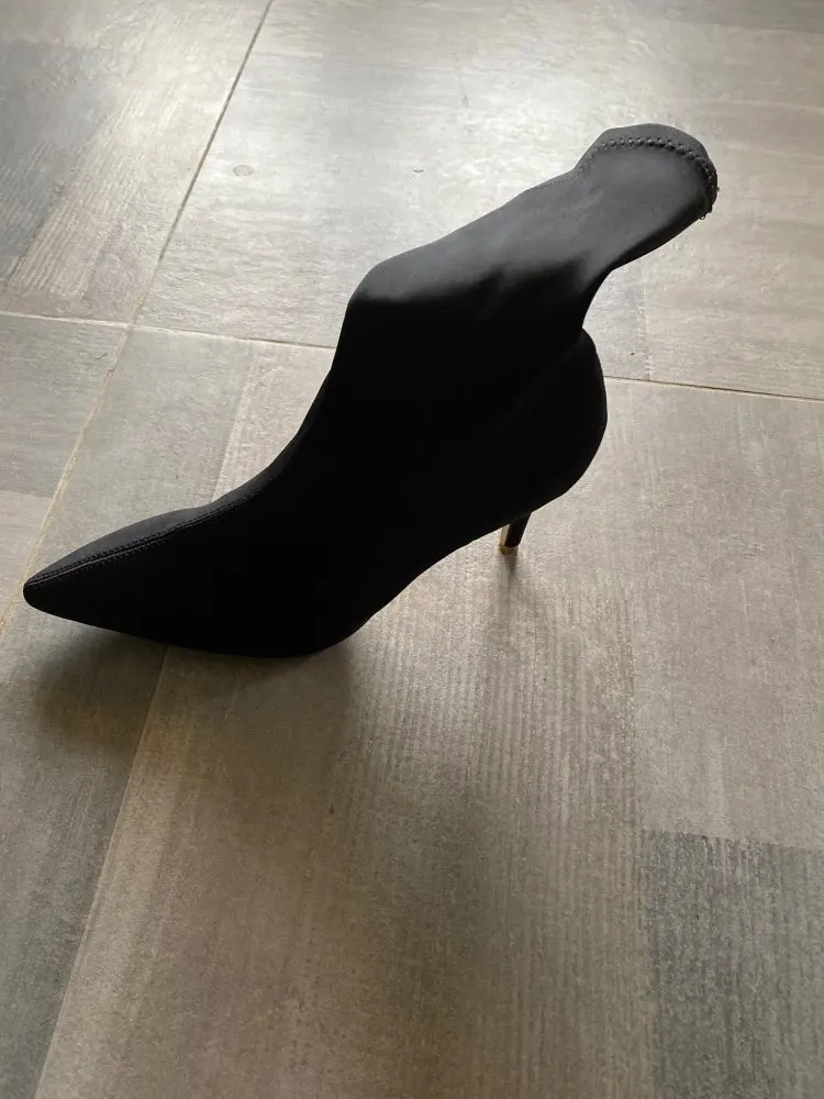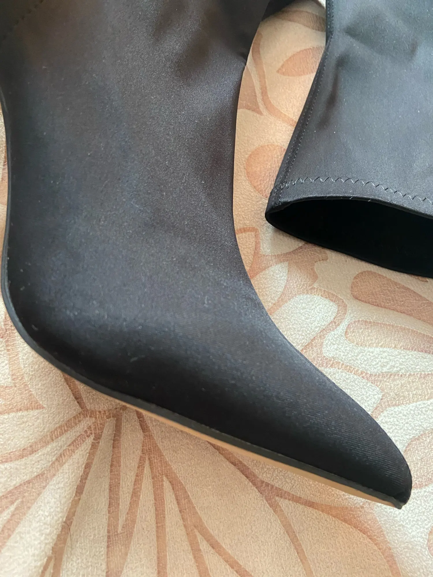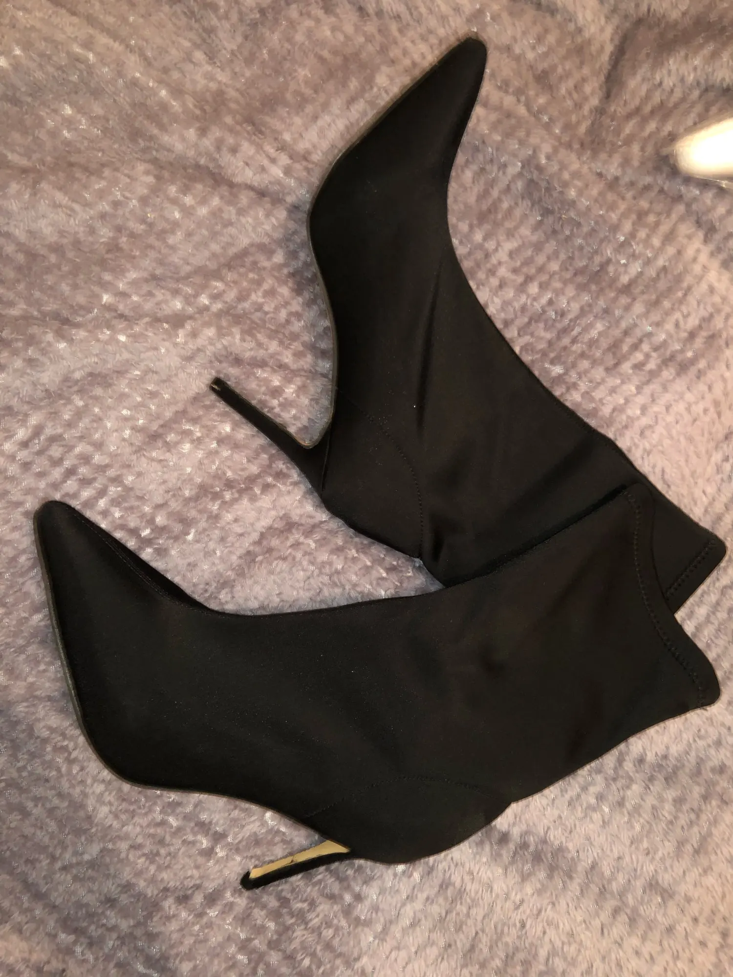Очень красивые и стильные сапоги- носки. Колодка удобная, надевать легко , ткань хорошо тянется. Похоже на туфли, обтянутые эластичной тканью. Спасибо продавцу, пришли за 10 дней .