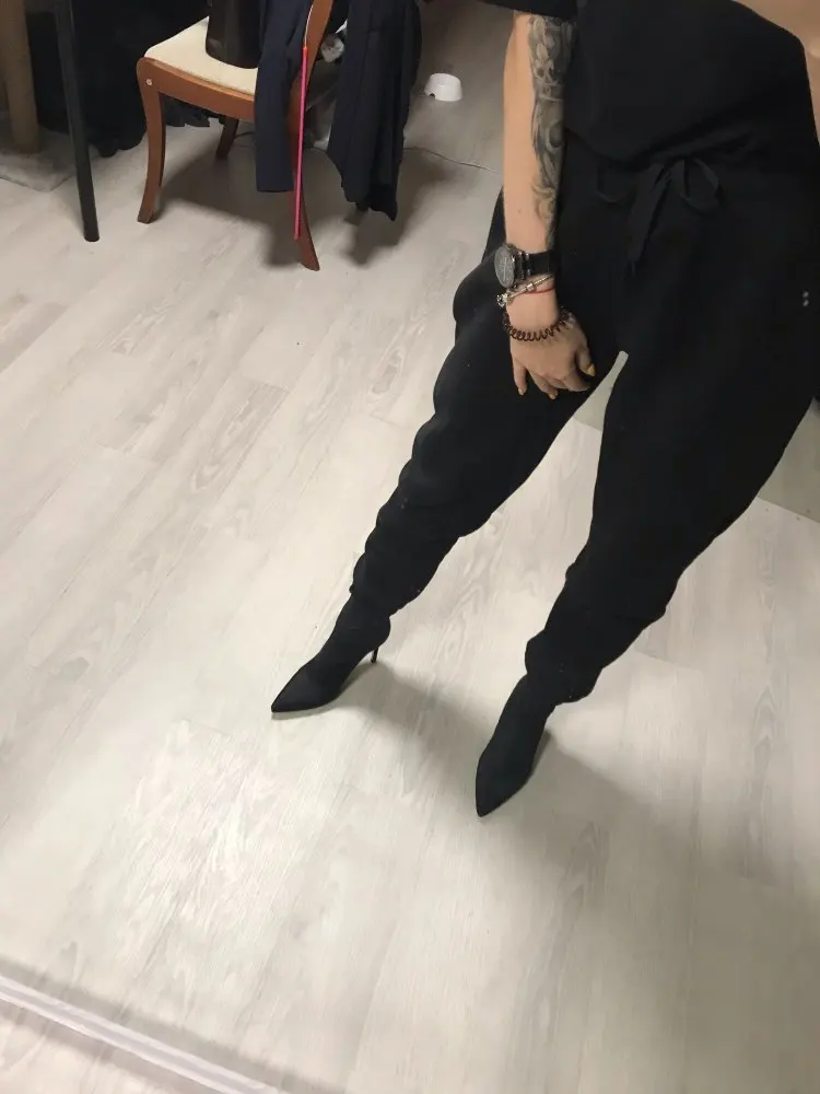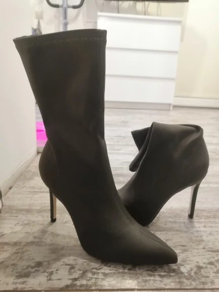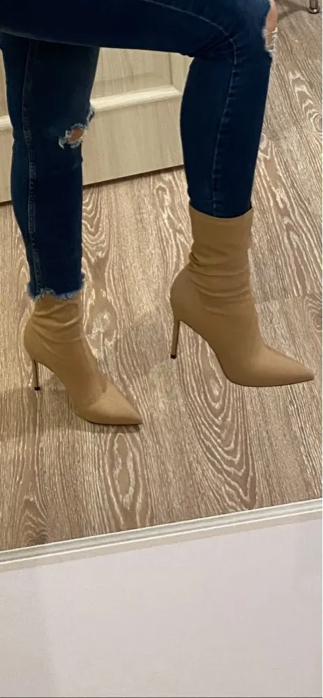 Элегантные полусапожки, на стопу 24 см, взяла 7, российский ношу 36,5-37, сели хорошо. Колотка удобная, каблук 10 см. По ширине у меня нога широкая, удобно, но икра у меня широкая, если больше 34 см, то будет обтягивать и не красиво, хотя ткань тянется. Трек отслеживался, с продавцом не общалась. Доставка быстрая.