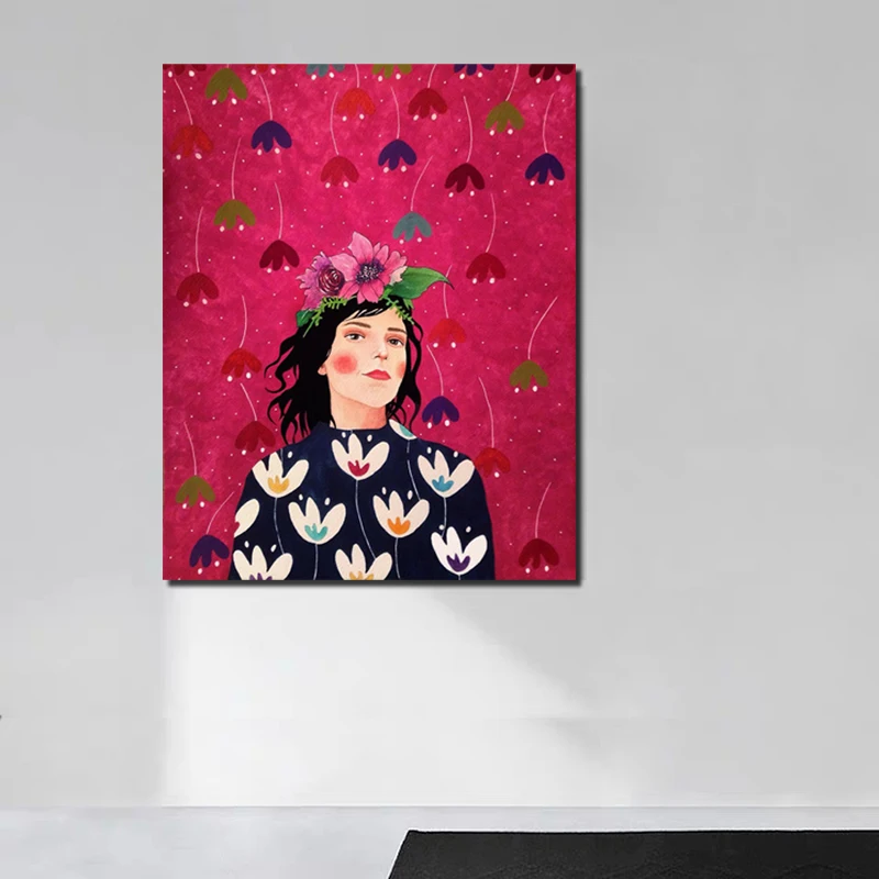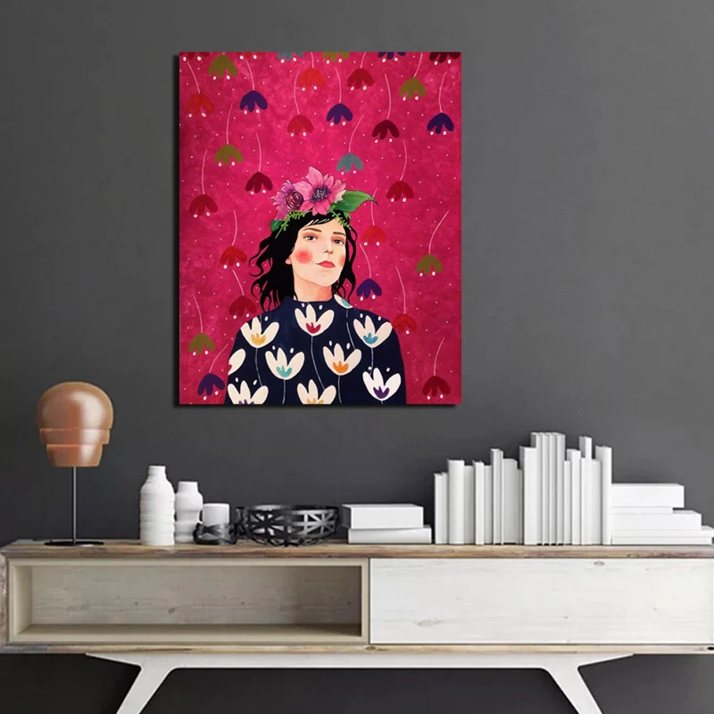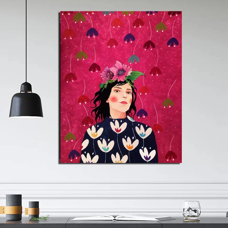 Постер в скандинавском стиле с венком девушка Картина на холсте постеры печатные мраморные настенные картины Декоративная картина Современный домашний декор