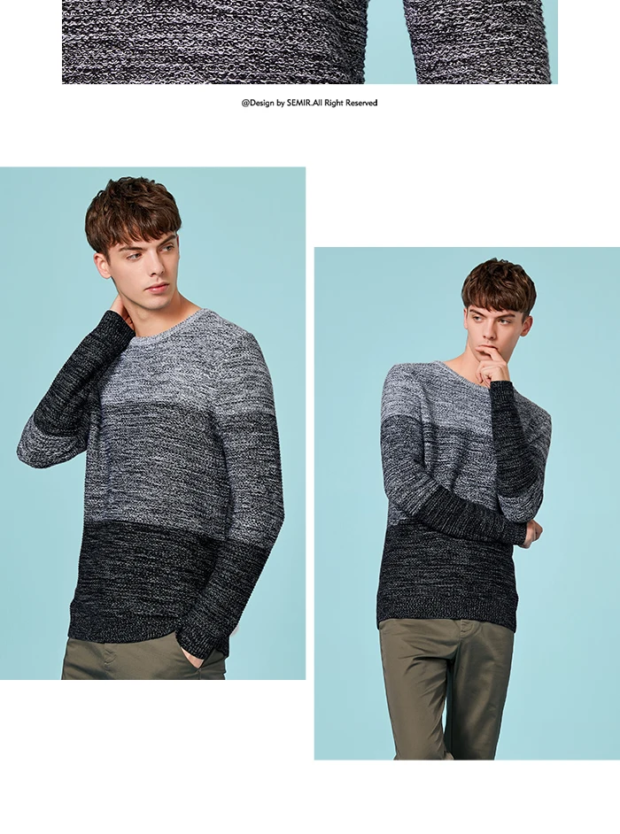 Свитер Semir мужской, осенне-зимний, контрастный, с круглым вырезом
