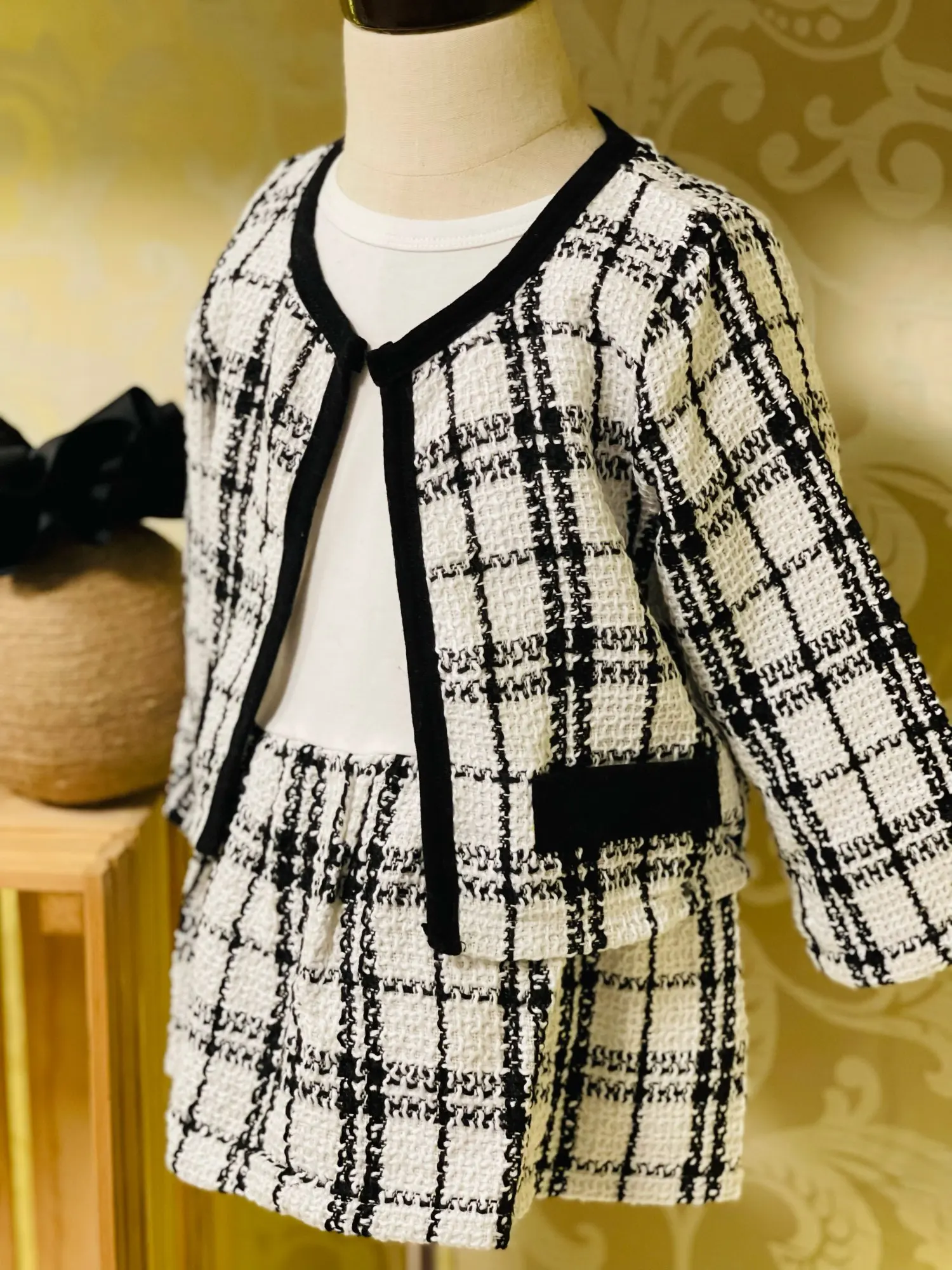 От 1 до 6 лет комплект клетчатой одежды для маленьких девочек, вяза...