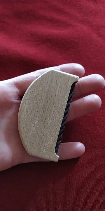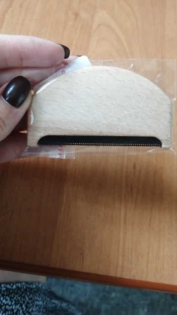 Катышки на свитере удаляет. Длина 7,5 см, в руке не скользит, т.к деревянный